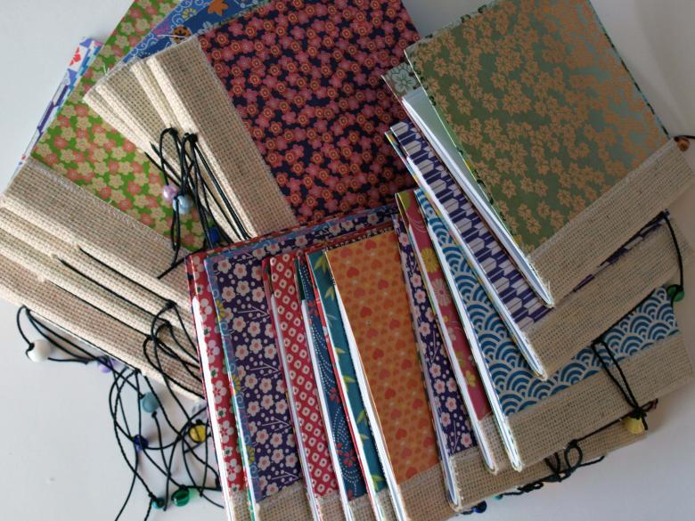 Variété de produits artisanaux et de blocs-notes disponibles