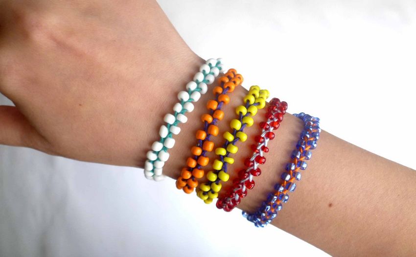 Les bracelets peuvent être fabriqués dans de nombreuses couleurs différentes. Vous pouvez créer un produit monochrome ou un arc-en-ciel aux couleurs vives - tout dépend du goût de chacun.