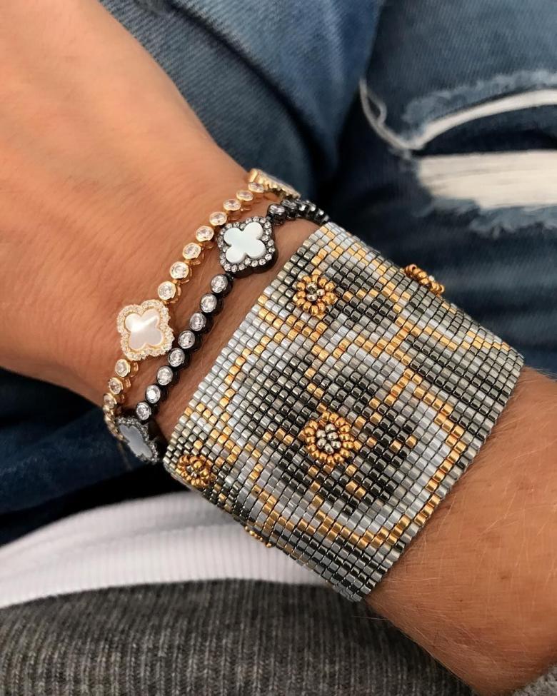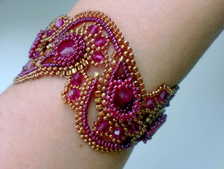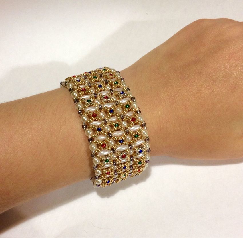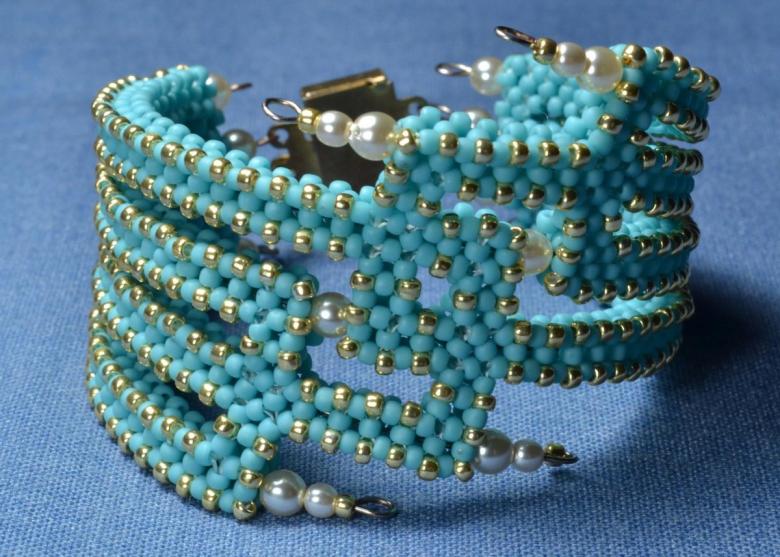 - Ajouré avec des perles et autres décorations. Le joyau de ces pièces est un motif répétitif qui met en valeur la peau de votre poignet. Cette technique donne également un effet de dentelle.