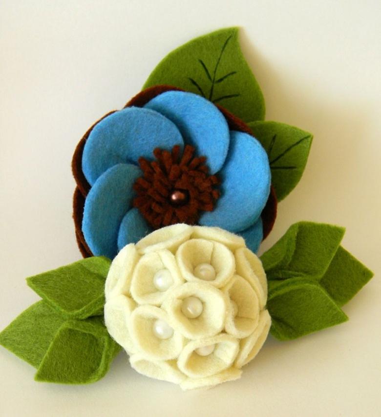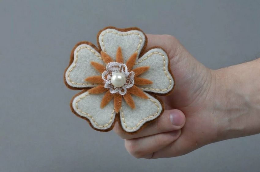 La broche en forme de fleur est l'un des articles les plus faciles à réaliser. De nombreuses autres variations peuvent être réalisées à partir de la feutrine : cœurs, animaux, formes géométriques et autres.