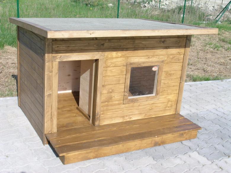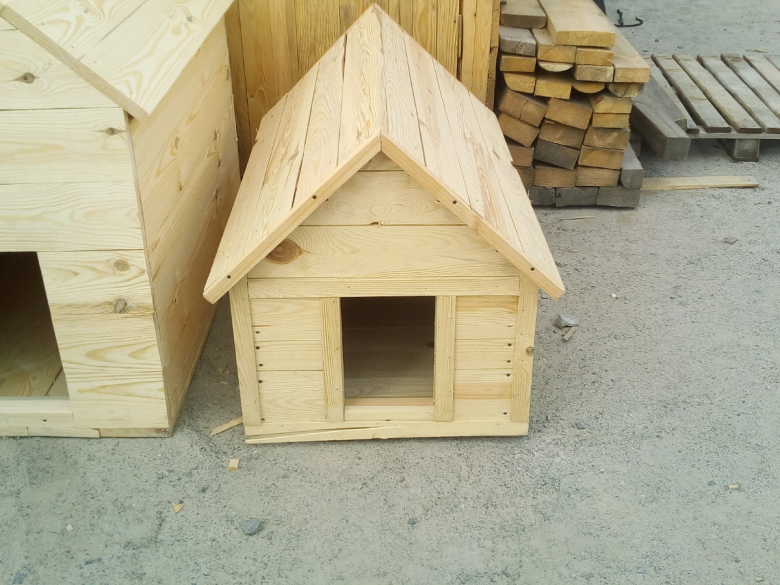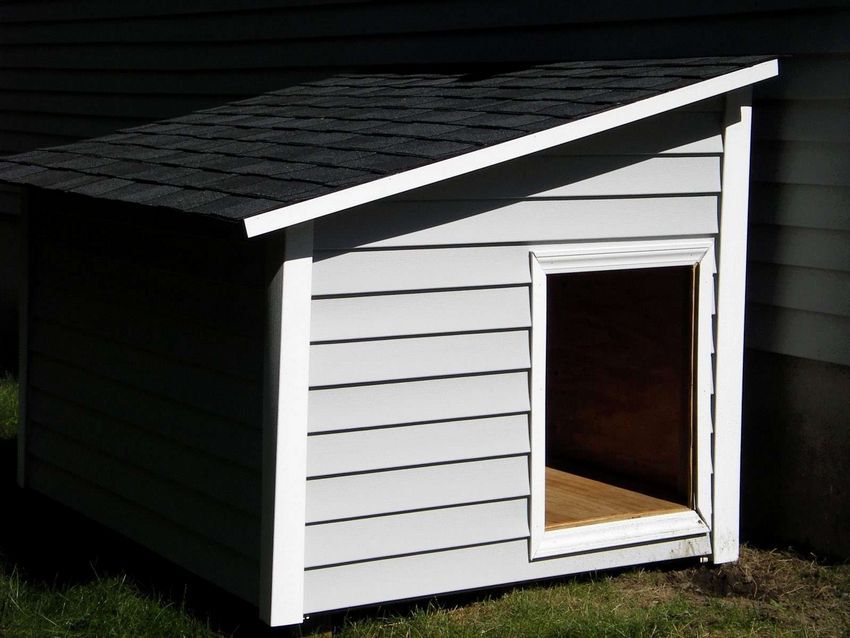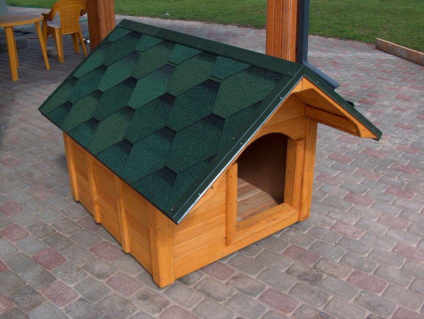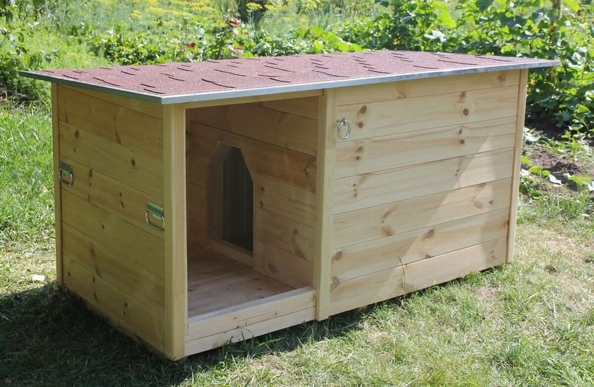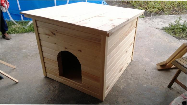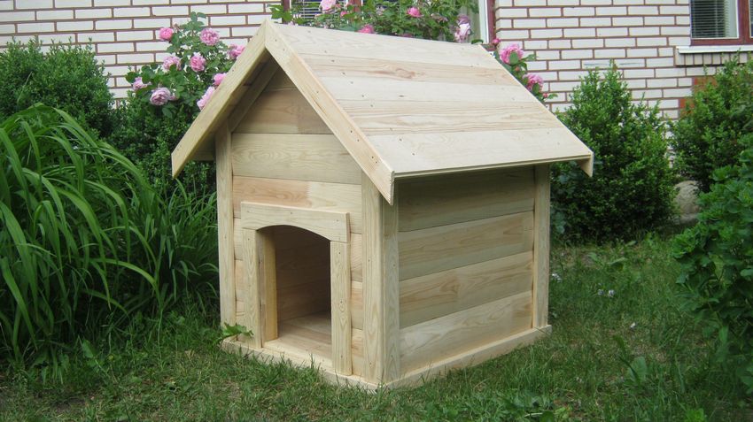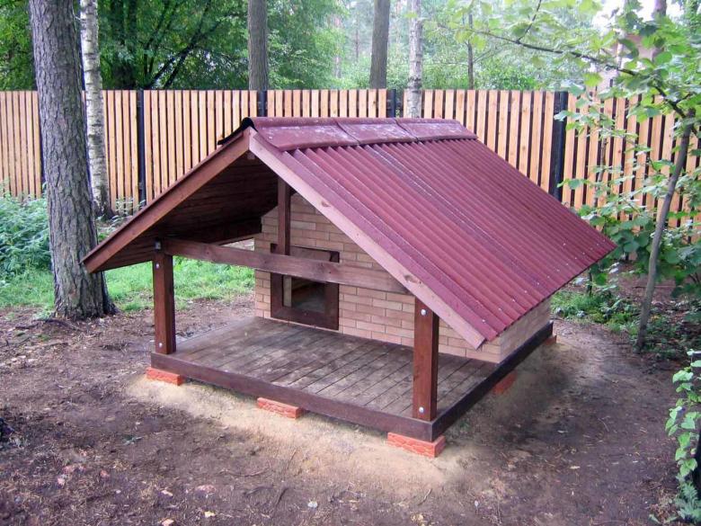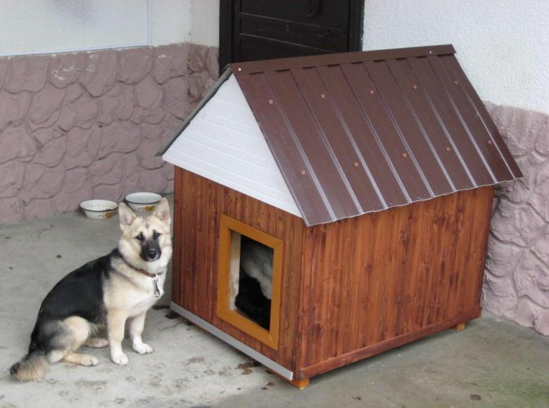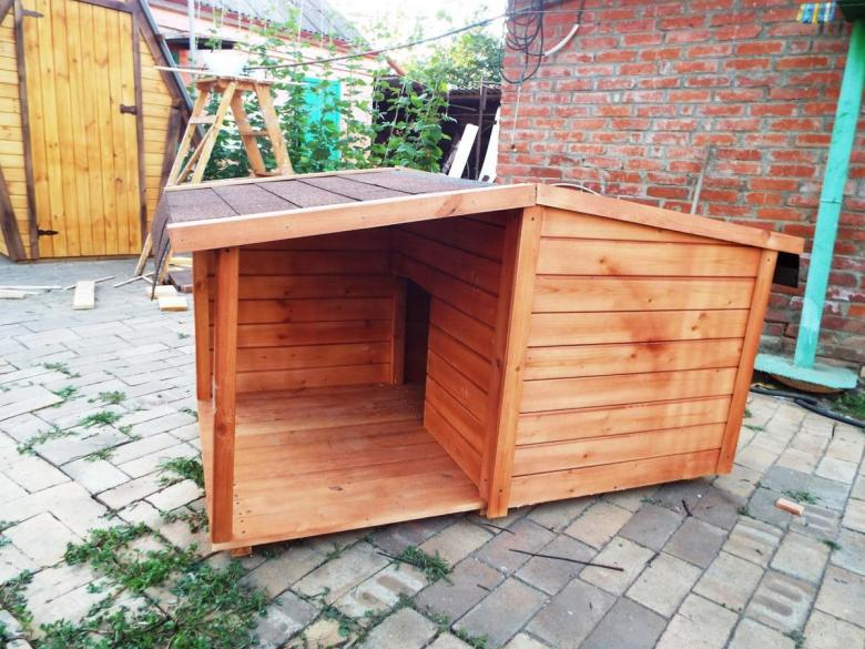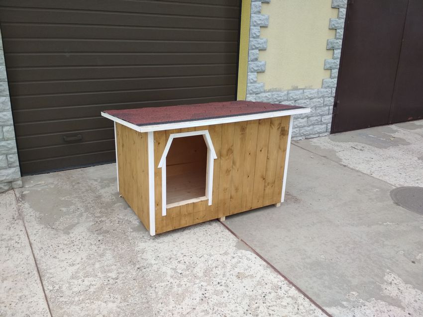 L'option la plus simple est une boîte faite de planches et couverte d'un toit d'une seule pièce. Une telle construction est généralement équipée d'un auvent court pour protéger l'animal de la chaleur et de la pluie.