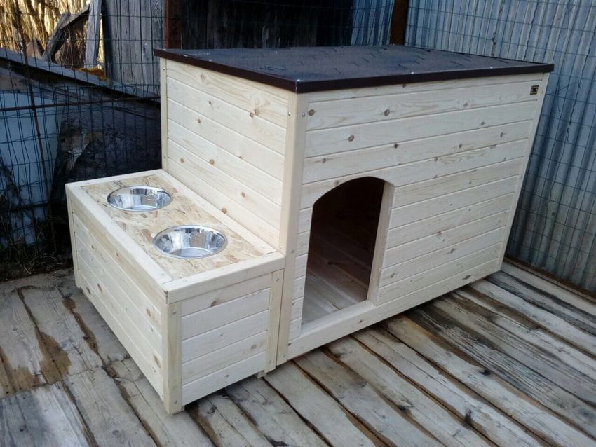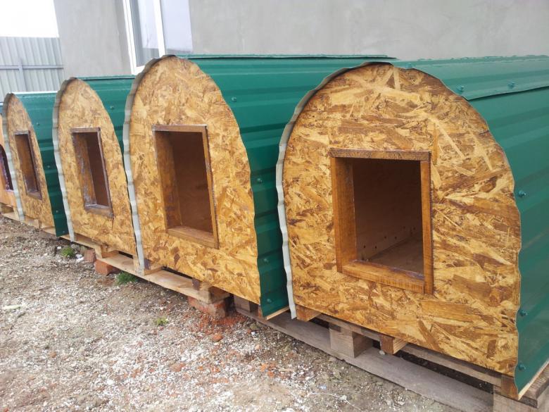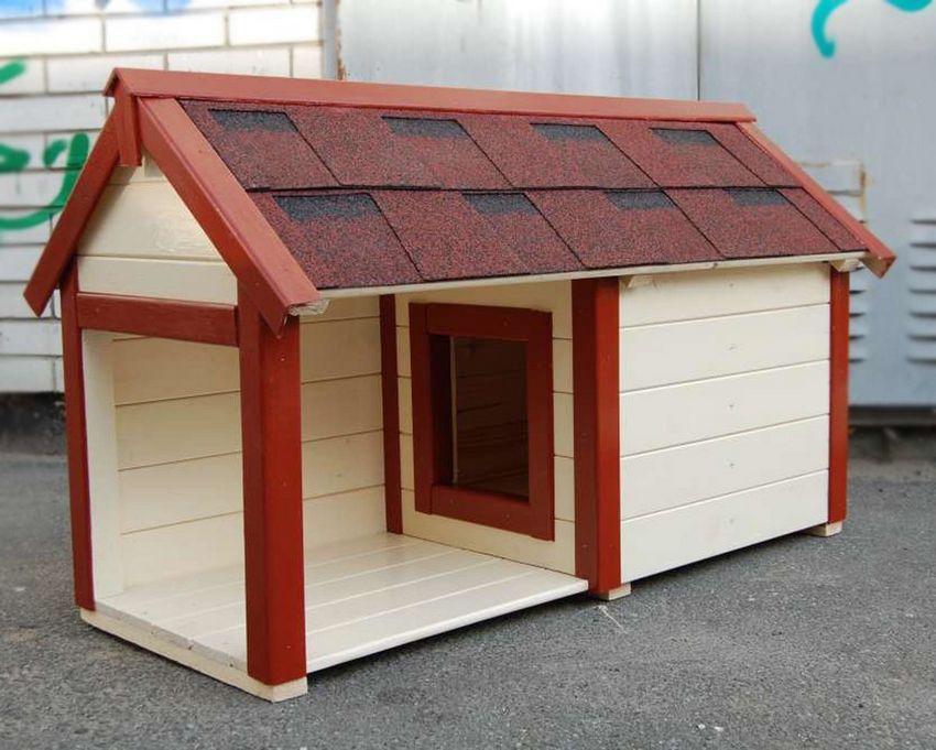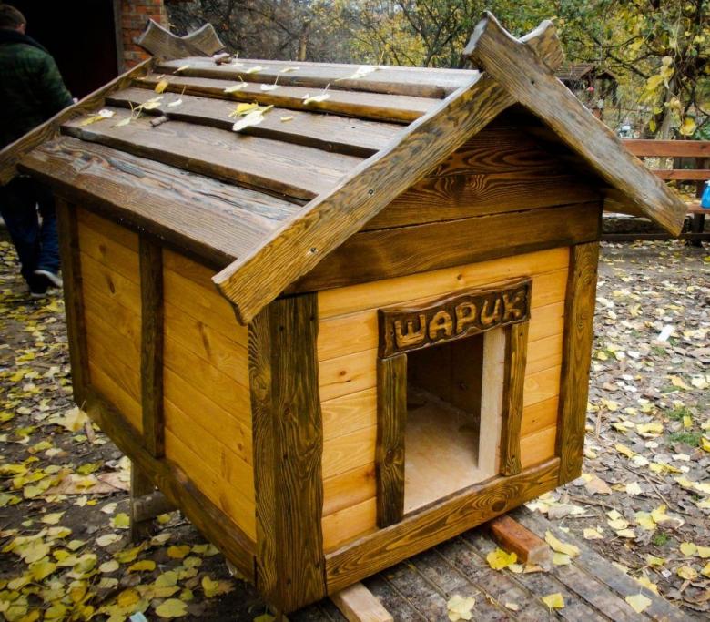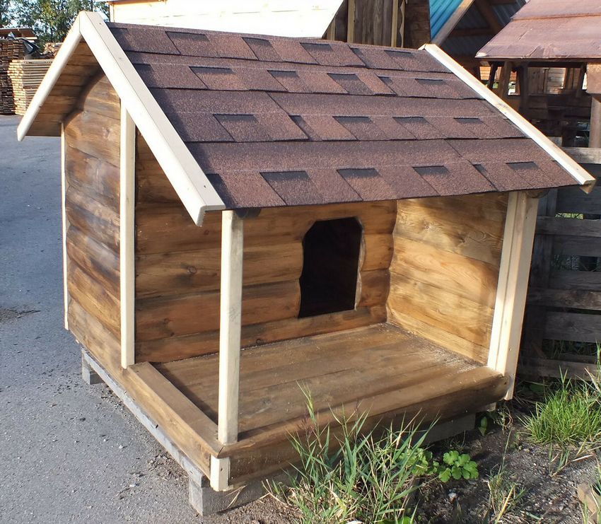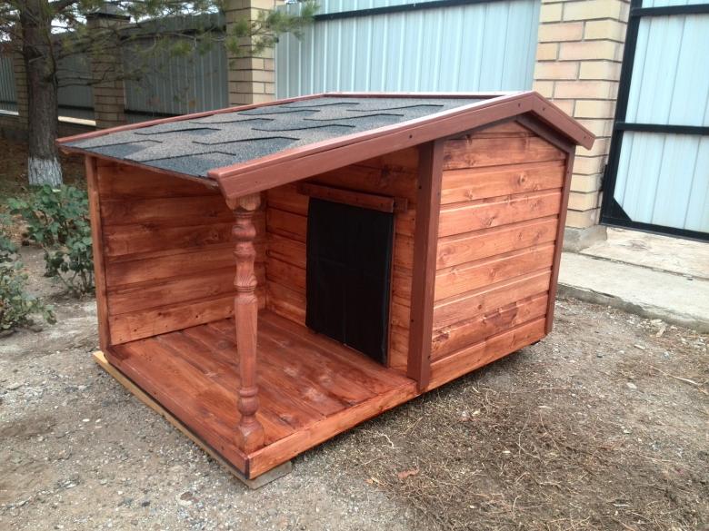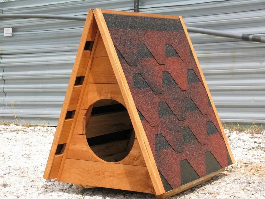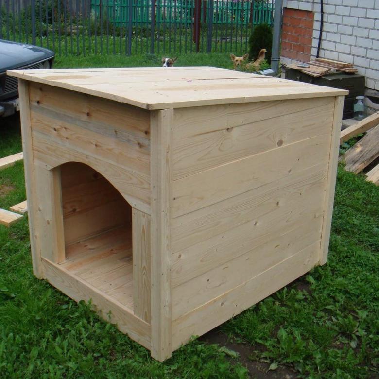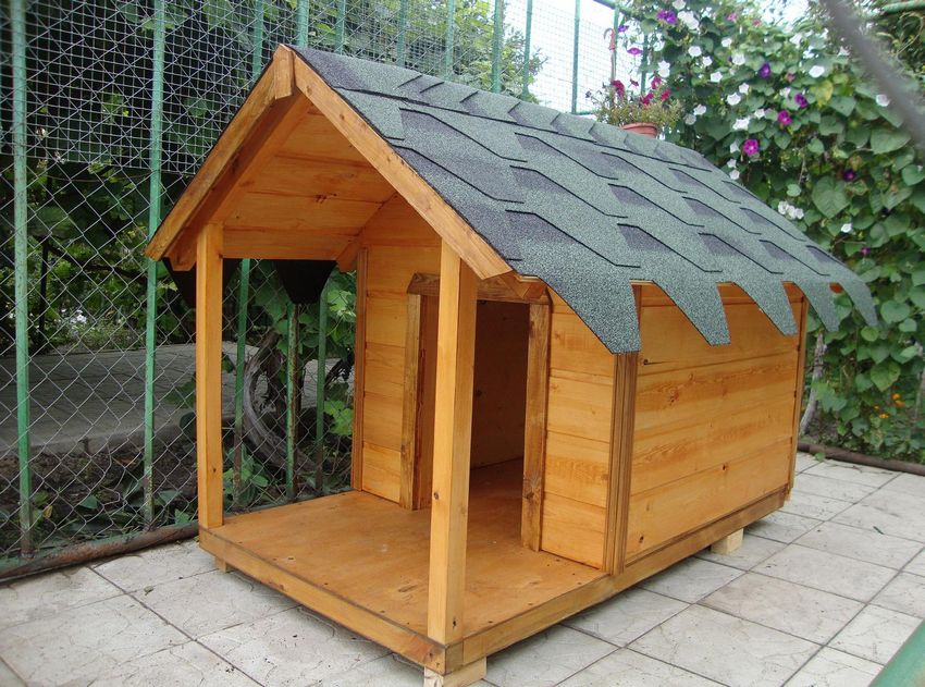 L'option la plus simple est une boîte faite de planches et couverte d'un toit d'une seule pièce. Une telle construction est généralement équipée d'un auvent court pour protéger l'animal de la chaleur et de la pluie.
