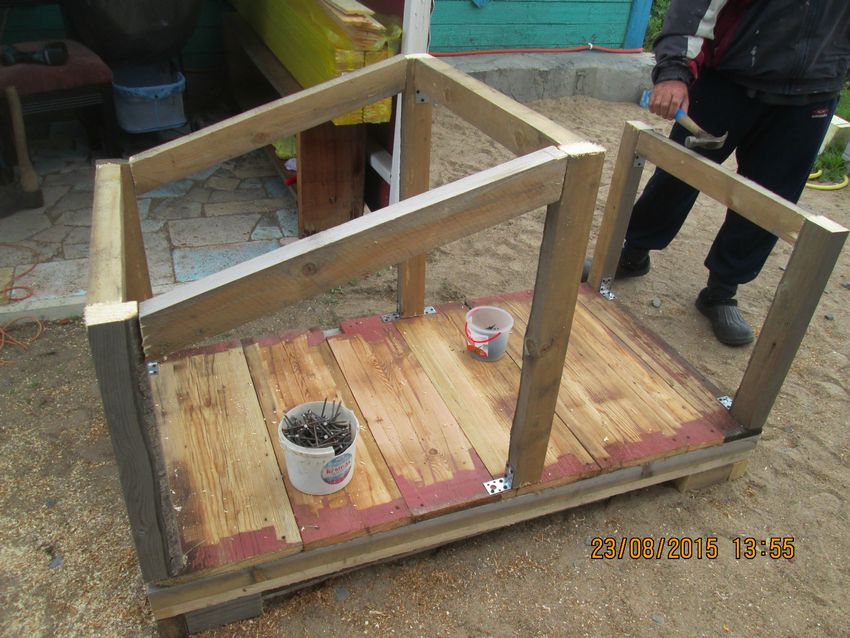 - Construction et installation de la paroi avant et arrière de la niche du chien.