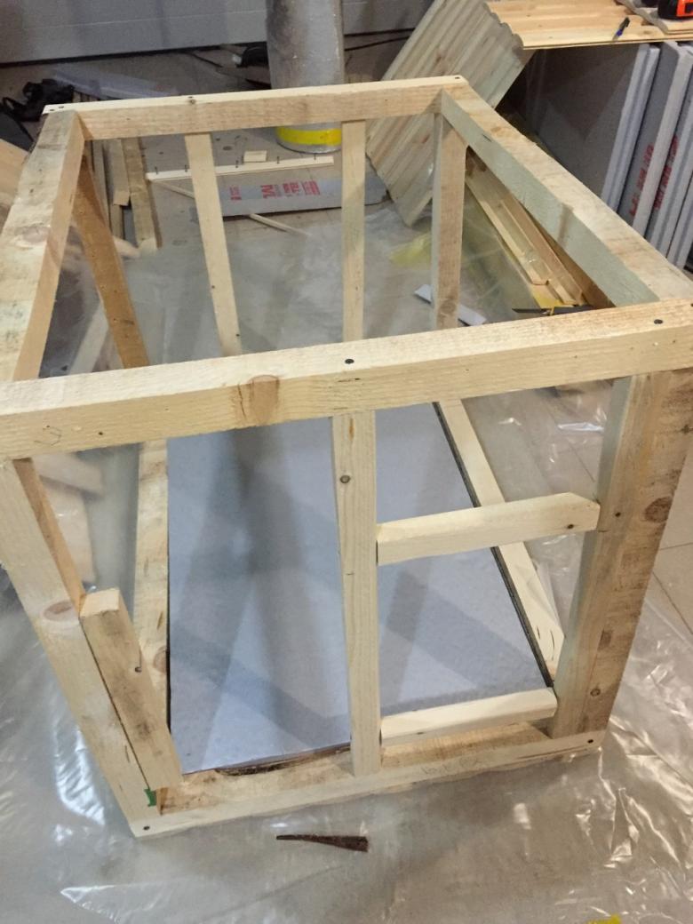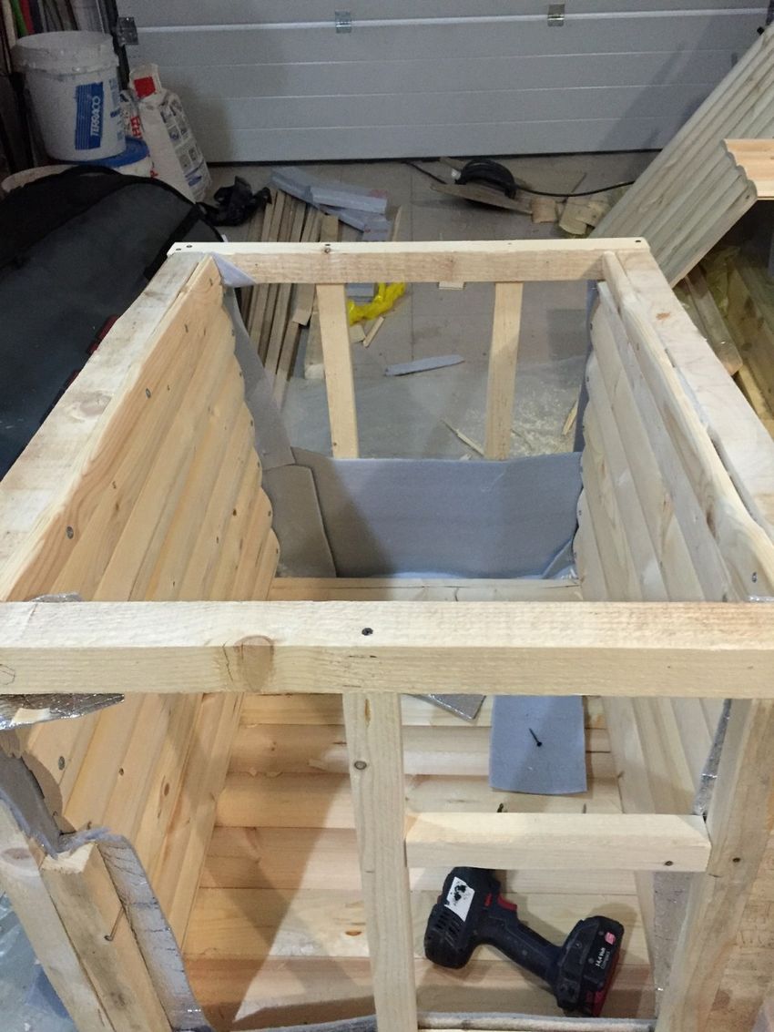 L'étape suivante consiste à fabriquer un cadre à partir de planches. La troisième étape consiste à doubler le cadre avec des lattes à l'intérieur et à l'extérieur et à placer l'isolation.