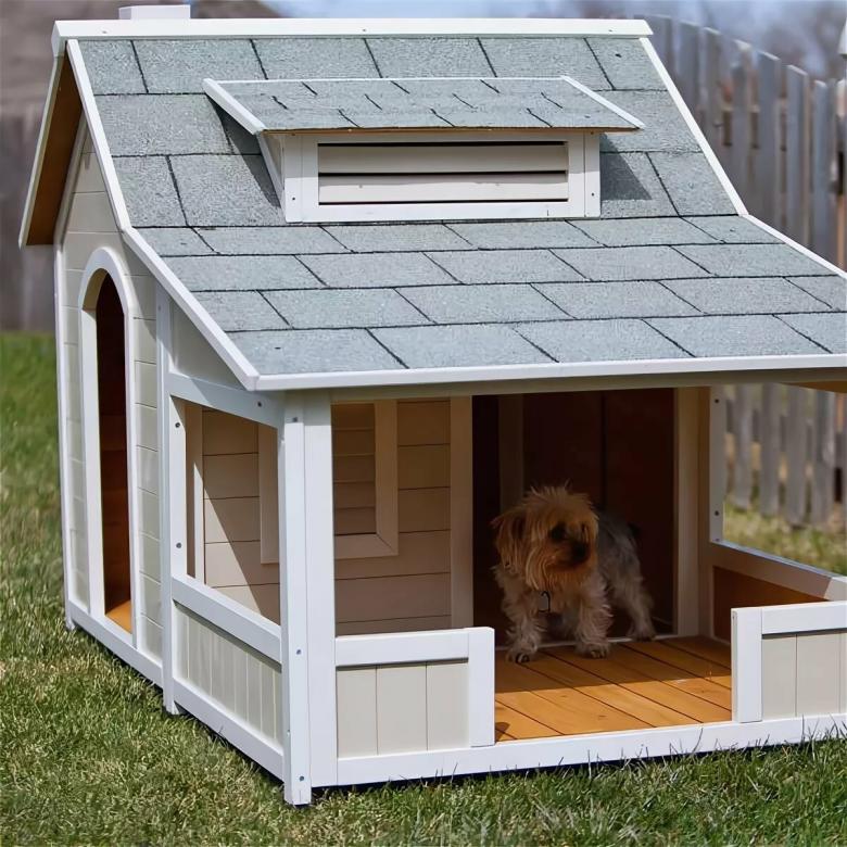 L'abri pour chiens de classe économique se compose d'un chenil et d'un abri ouvert intégré de type abri.