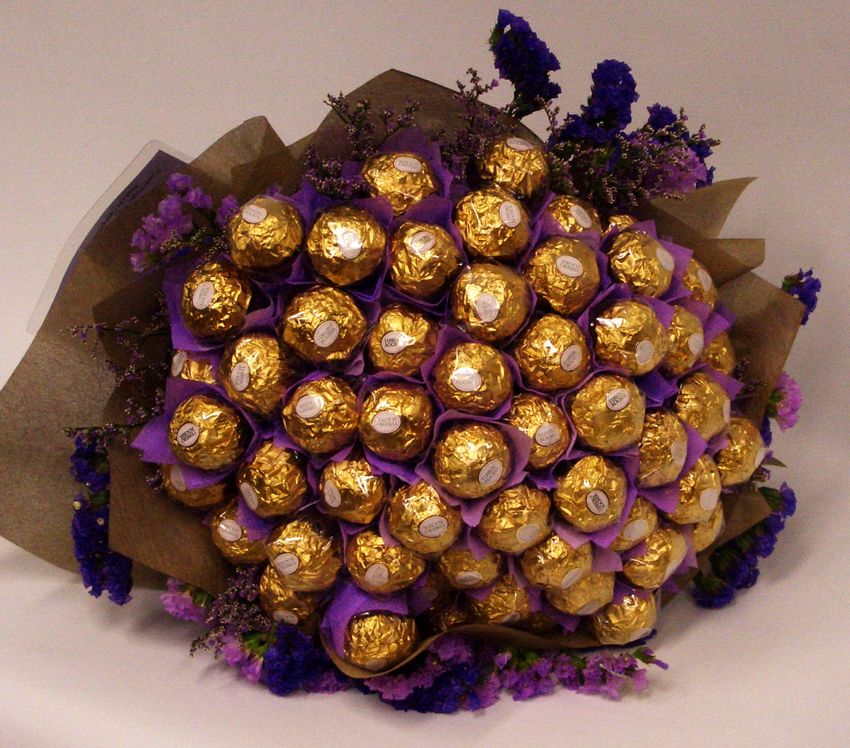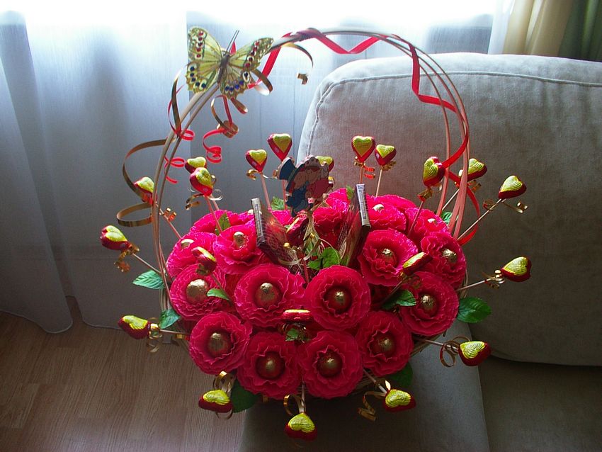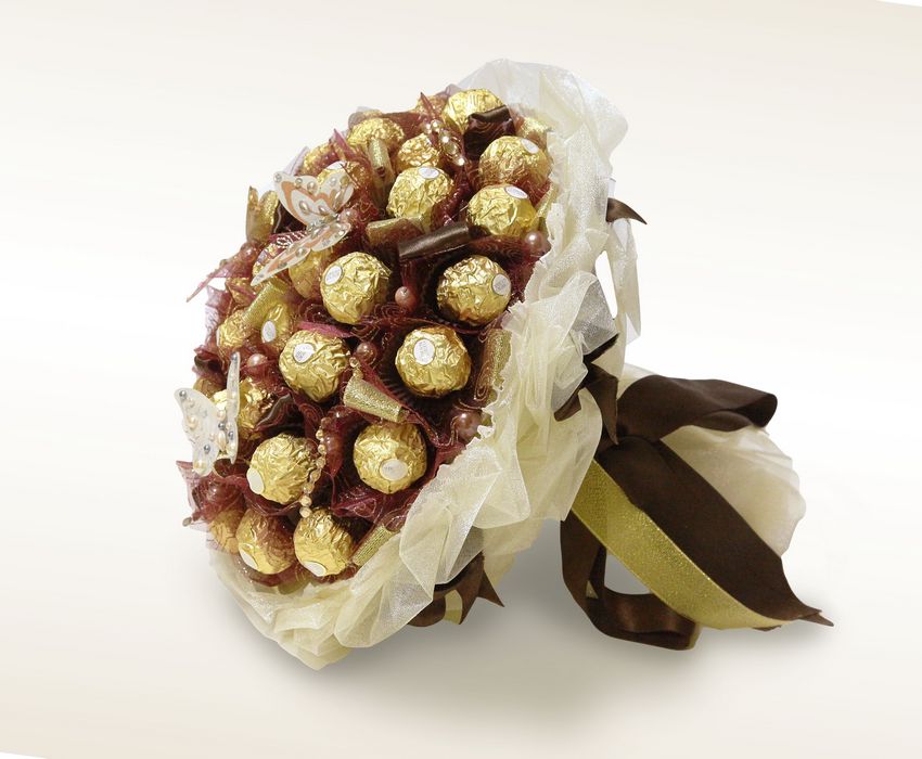 Mais pour rendre un cadeau vraiment attrayant, vous devez savoir exactement comment faire un bouquet de chocolats à la main et quelle est la composition la plus attrayante.