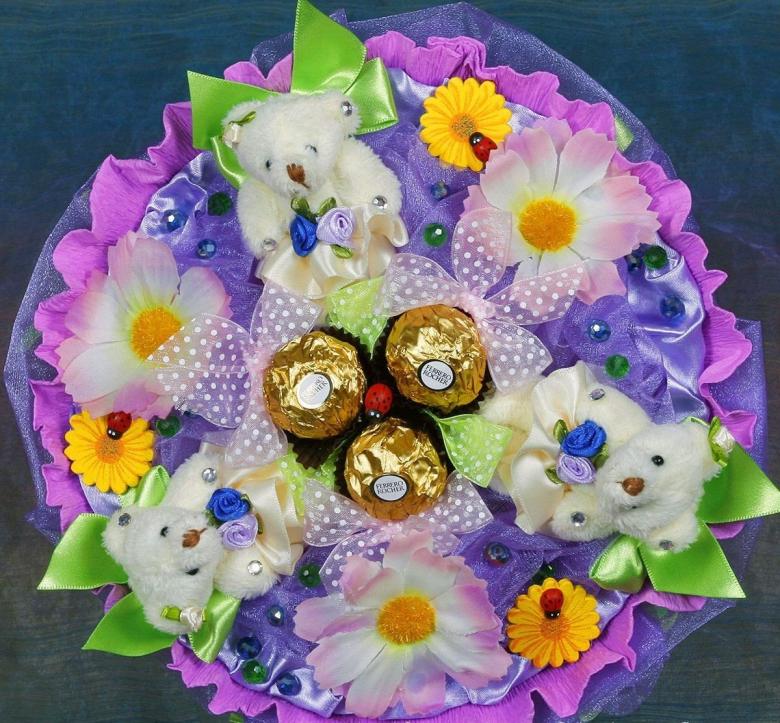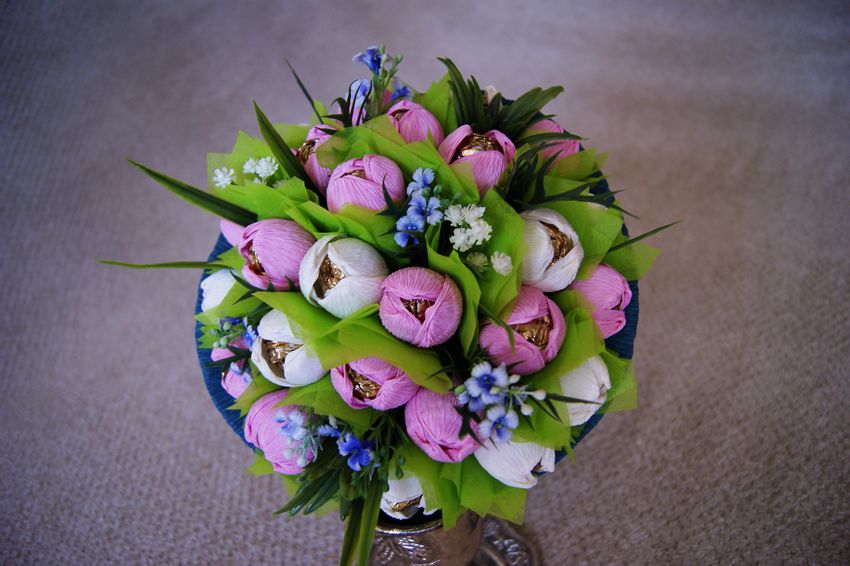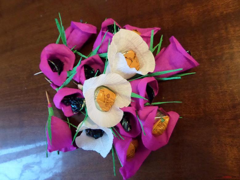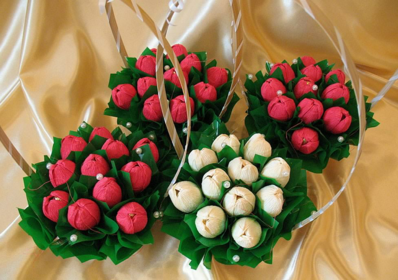 Ces variations permettront de réaliser un bouquet de différents types de bonbons. De tels cadeaux apporteront beaucoup de joie, tant au donateur lui-même qu'au destinataire.