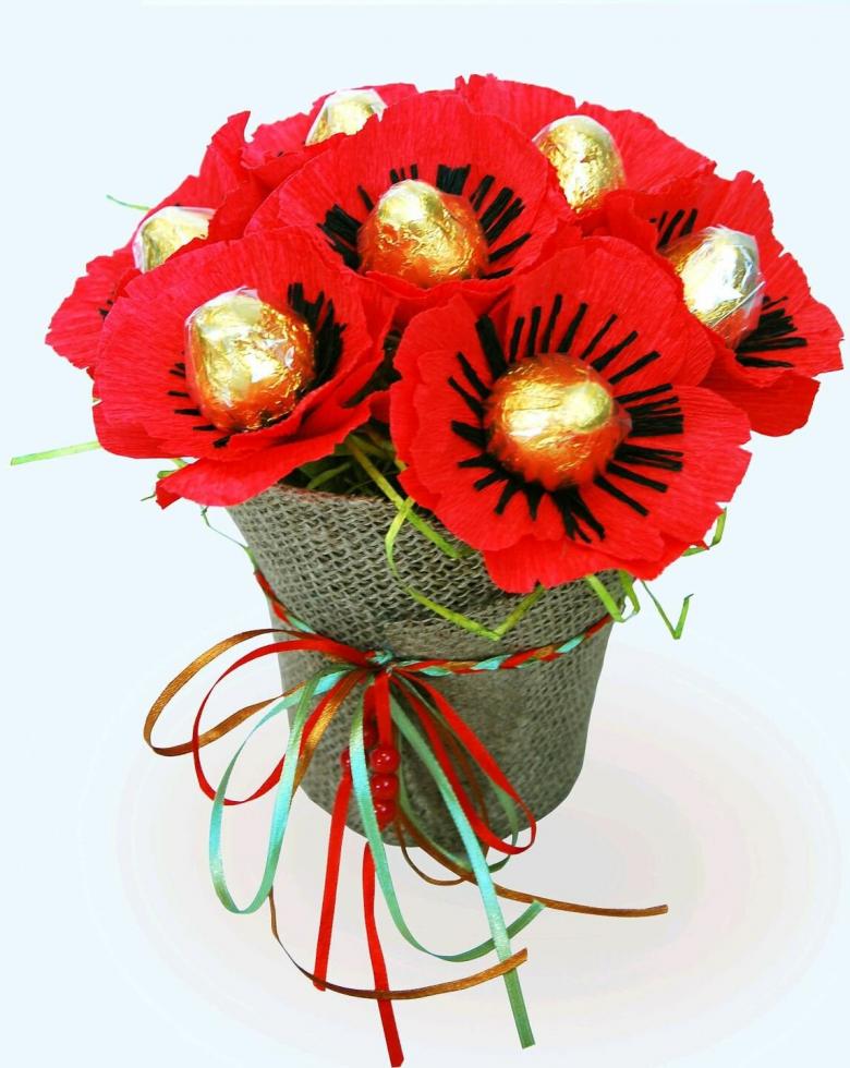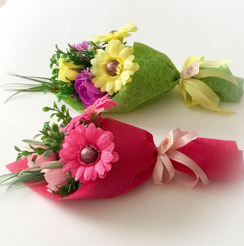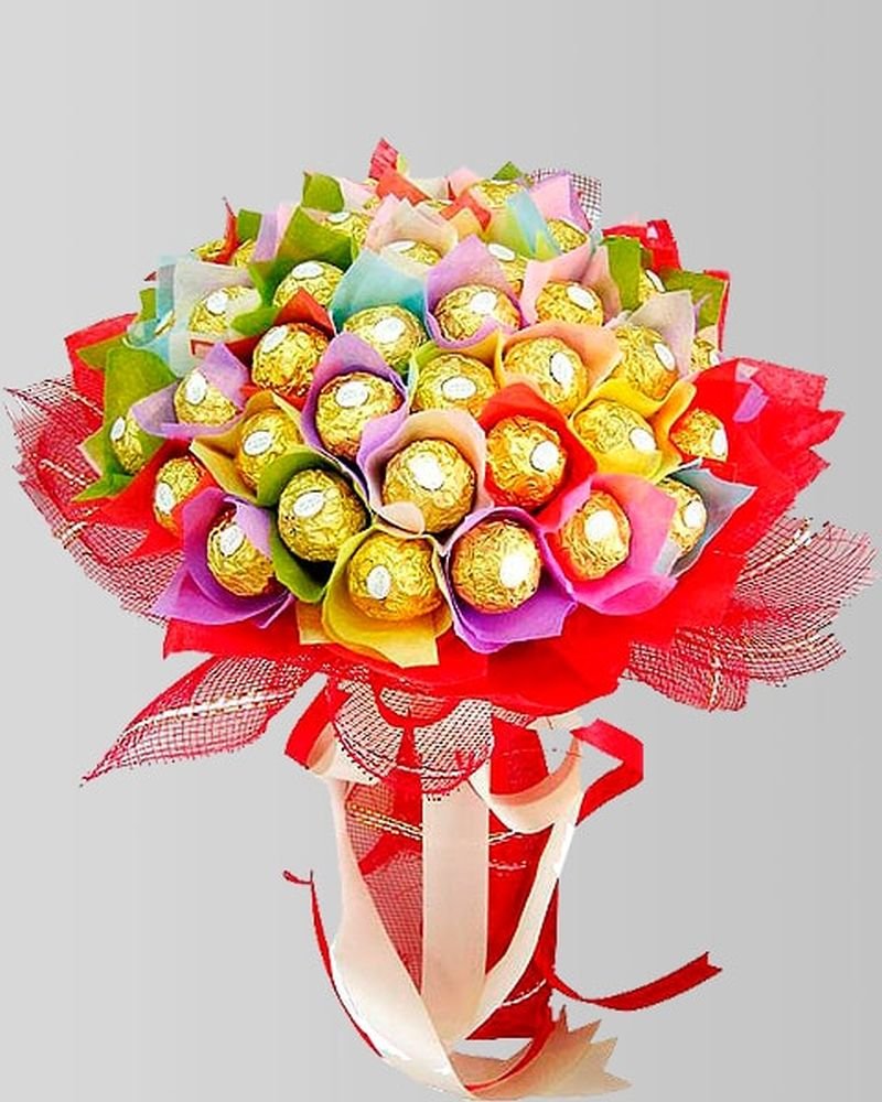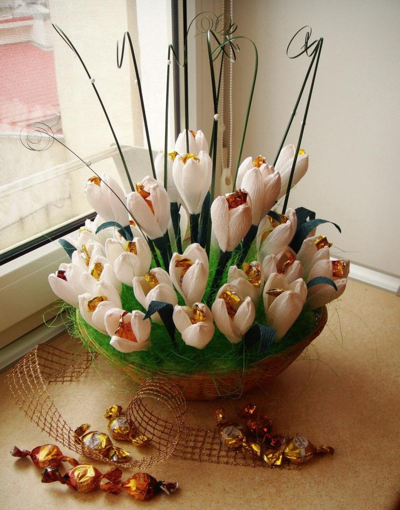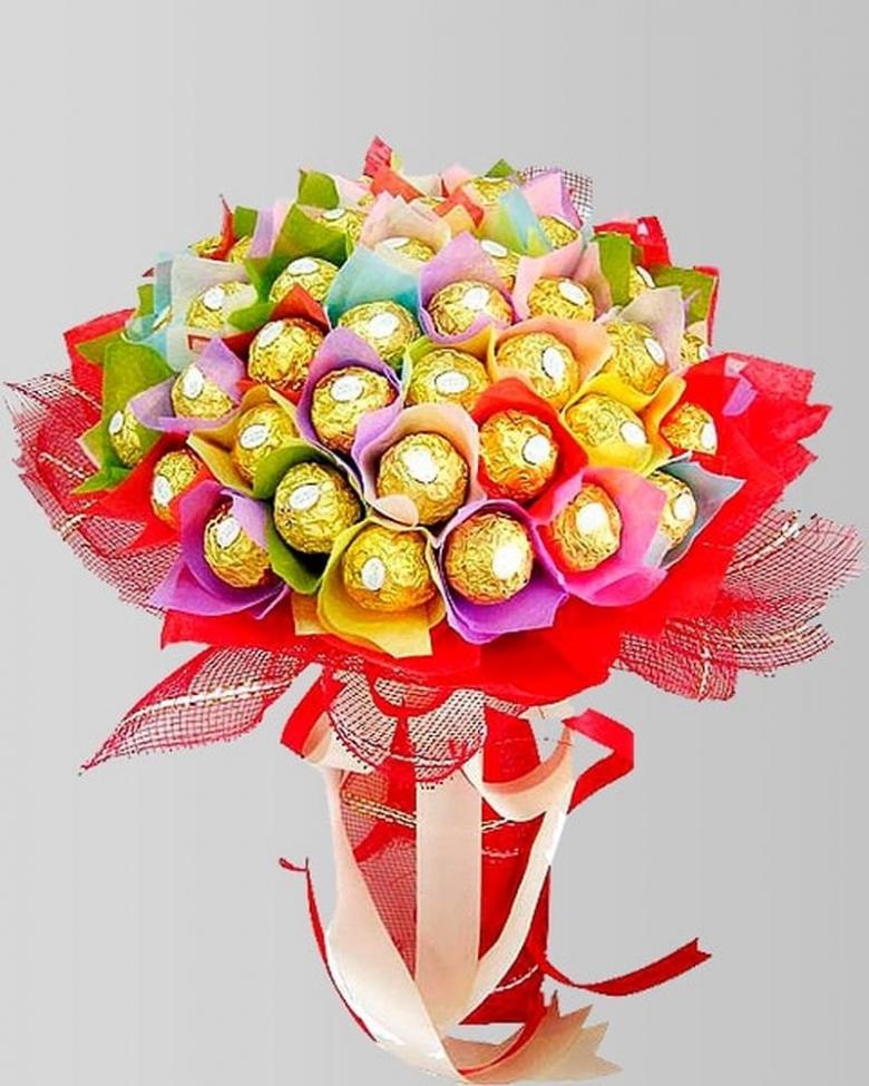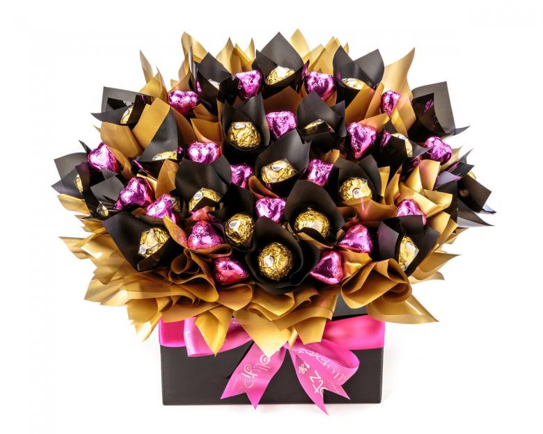 Ce bouquet de chocolats convient aux débutants, car il est extrêmement simple à réaliser et ne nécessite aucune compétence particulière. Mais il existe aussi des compositions plus complexes dont la réalisation demandera un certain travail.