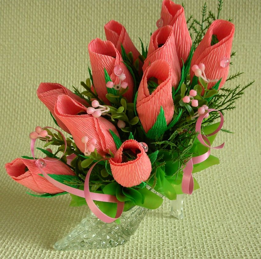 - Du papier ondulé dans n'importe quelle couleur de tulipes naturelles.