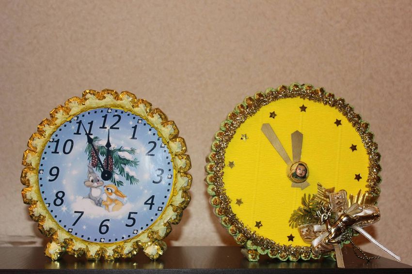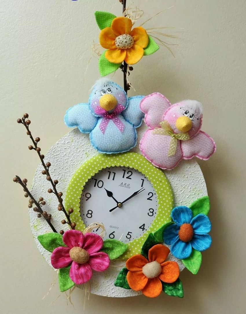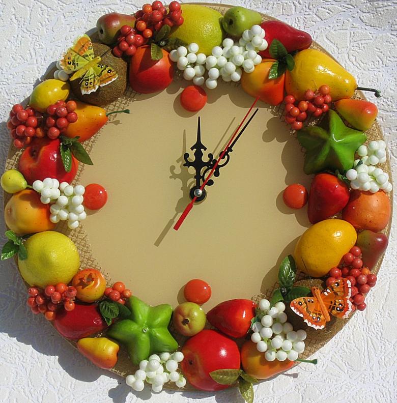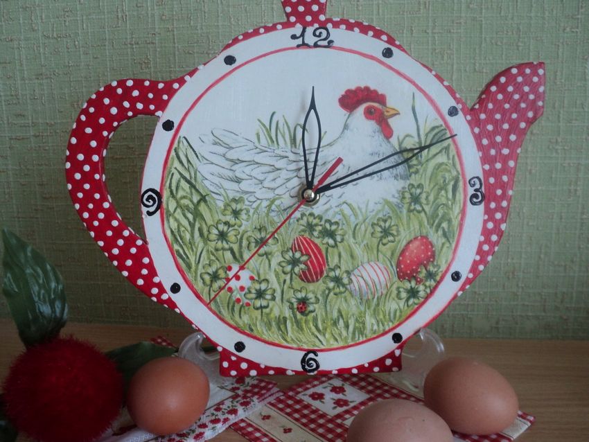 Les décorations du cadran de l'horloge dépendent entièrement de vos goûts. La variante simple sera tout aussi appropriée, que la variante complexe, impliquant la décoration d'un tableau thématique.