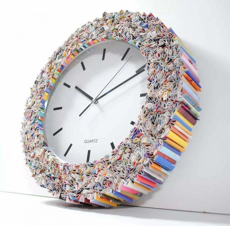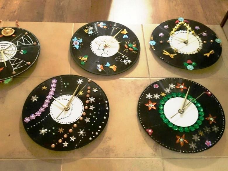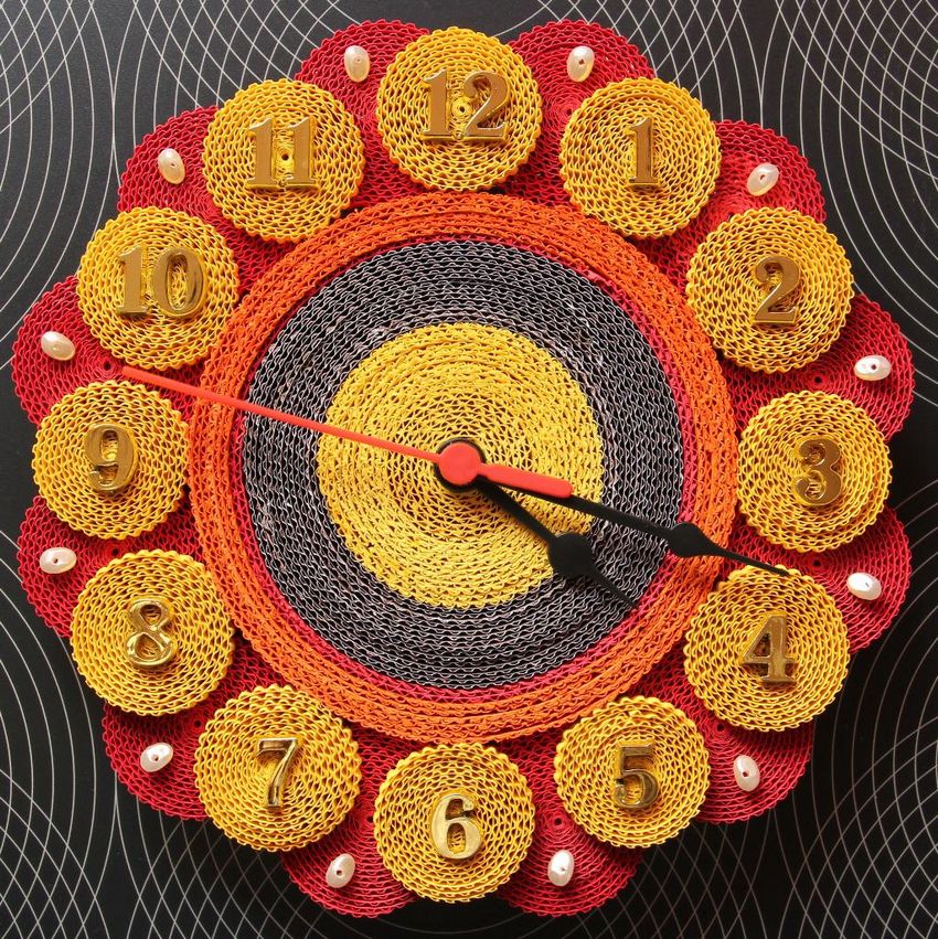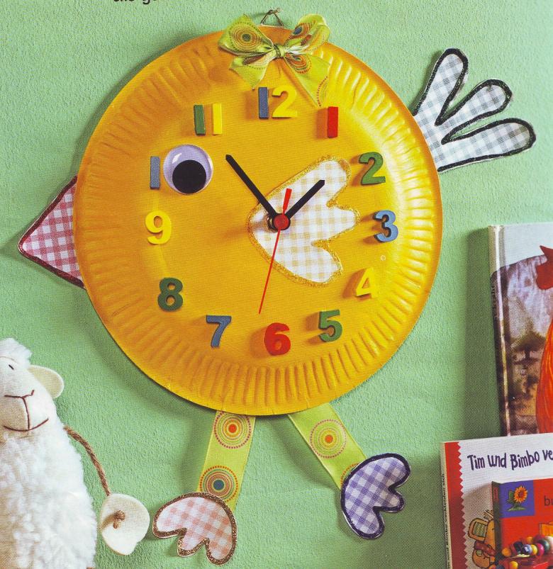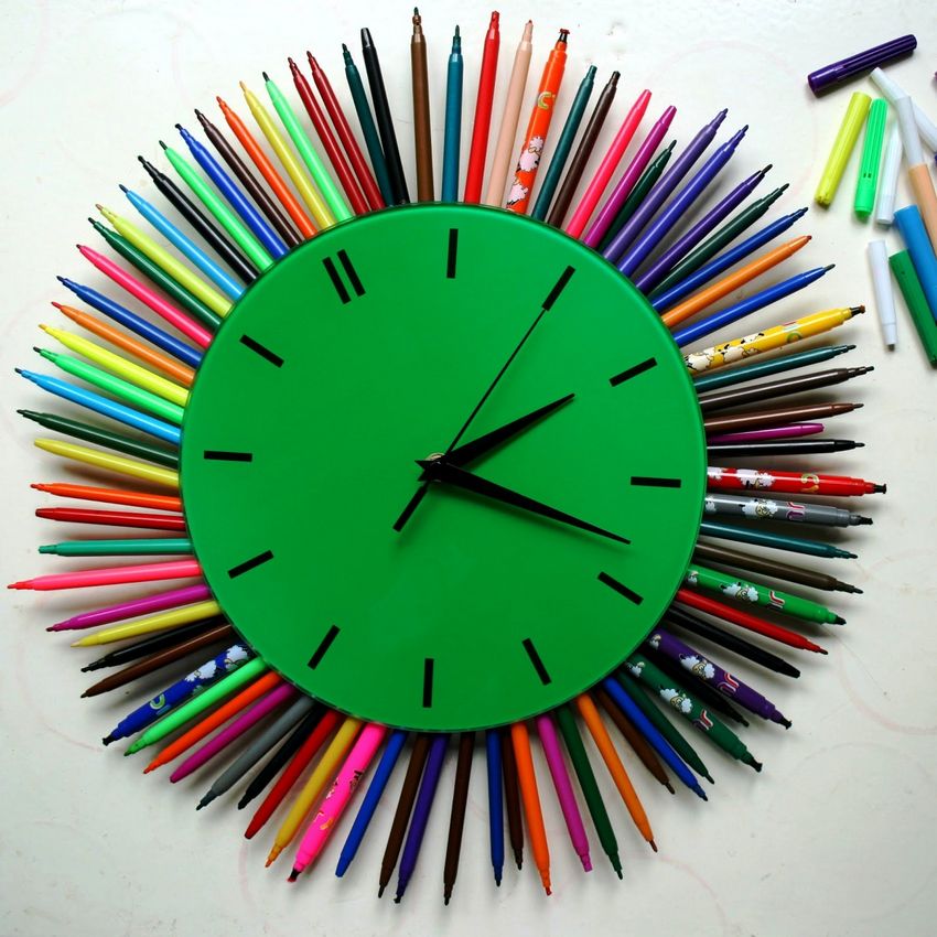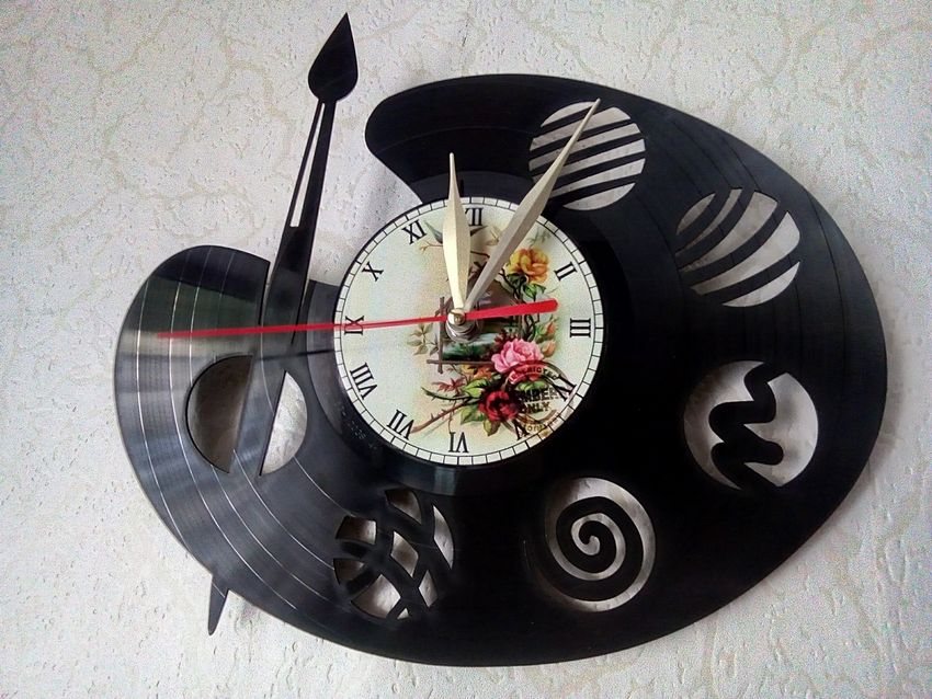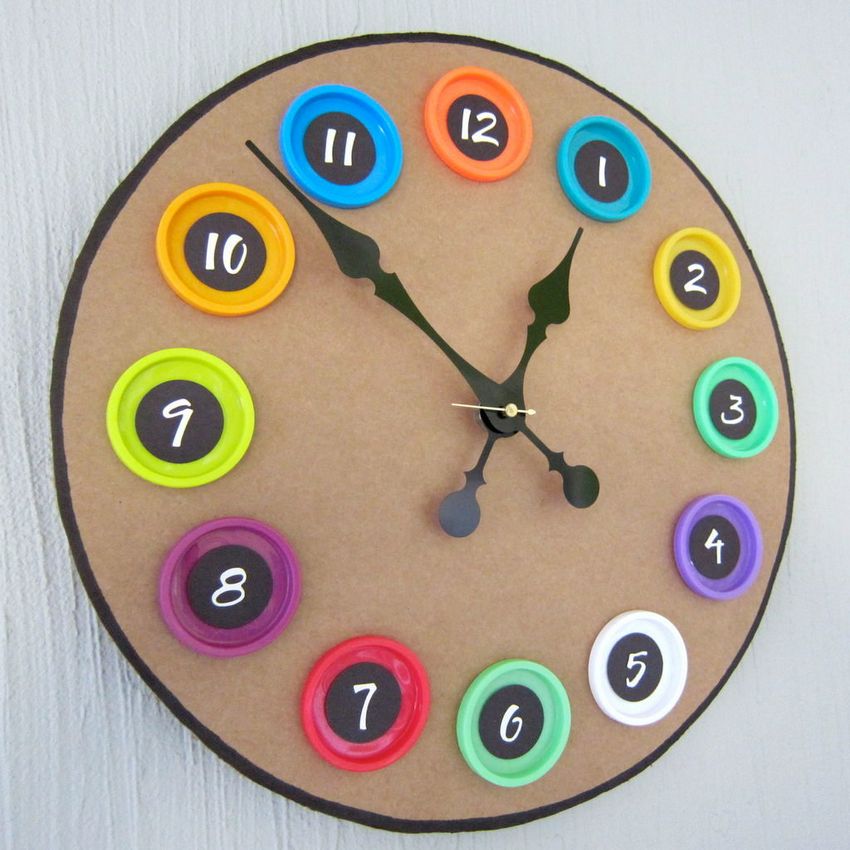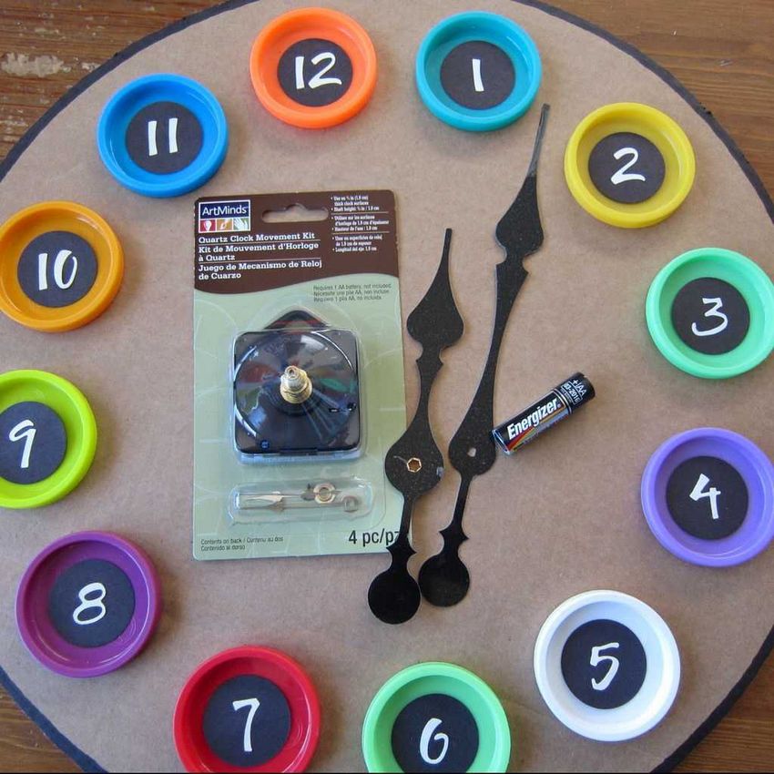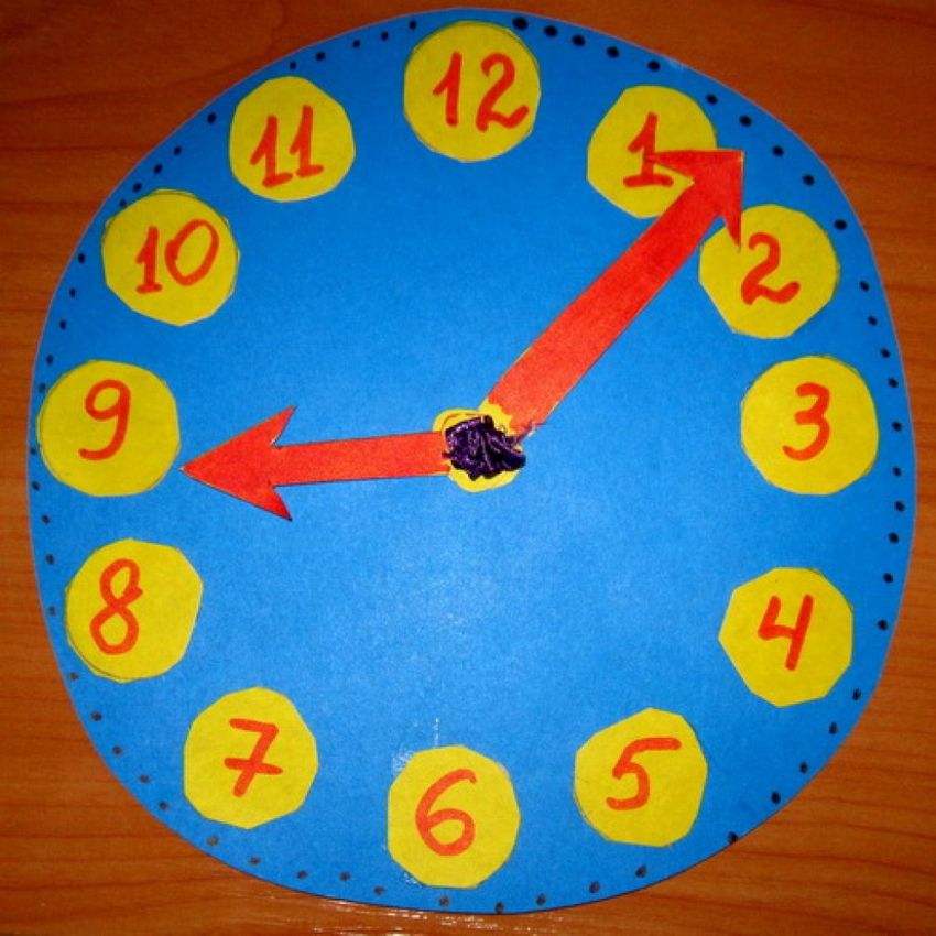 Une autre idée intéressante consiste à décorer un disque avec du papier de couleur. Vous pouvez également imprimer un cadran d'horloge prêt à l'emploi et l'utiliser pour le dessin.