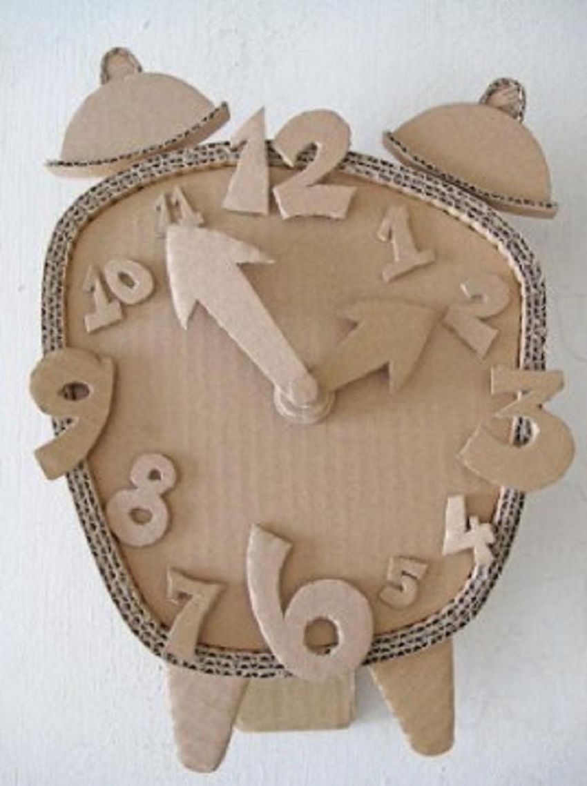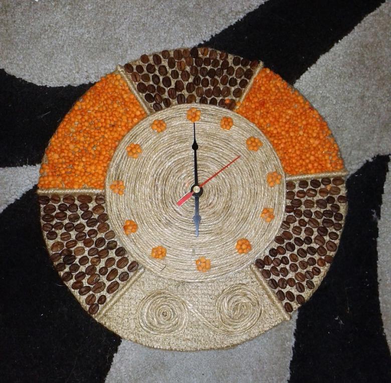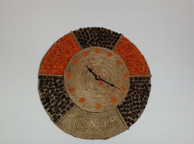Cet artisanat est basé sur le carton. Utilisez-le pour faire un cadran d'horloge. La décoration peut être constituée de cônes, de feuilles et de fleurs séchées, de glands, de châtaignes. Si vous le souhaitez, vous pouvez l'utiliser pour la décoration de différents types de céréales et de pâtes. Un tel travail est approprié pour être présenté à l'exposition d'automne de l'école ou du jardin d'enfants.
