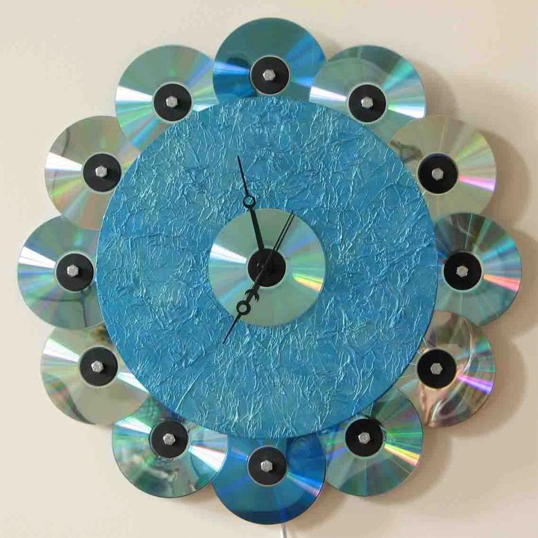 Un vieux CD peut être utilisé comme cadran d'horloge. Il suffit de l'accrocher avec une ficelle et de dessiner les numéros. Cette solution de facilité ne vous convient pas ? Les disques peuvent également être utilisés pour fabriquer un dispositif plus complexe. Vous pouvez, par exemple, monter un mécanisme avec des aiguilles sur une base en carton en forme de losange.
