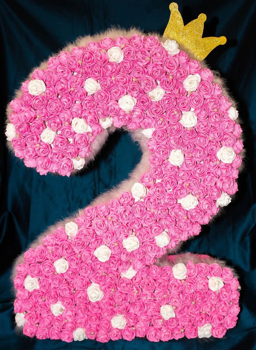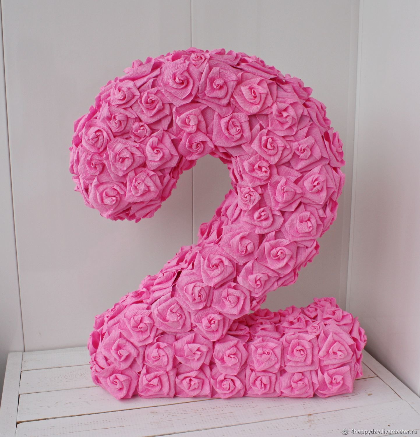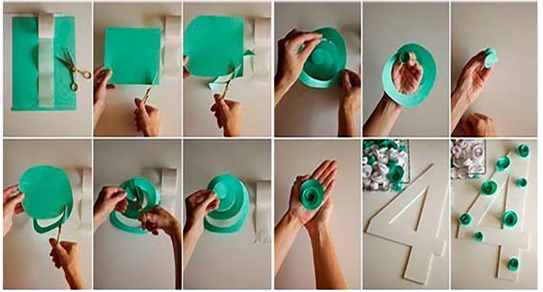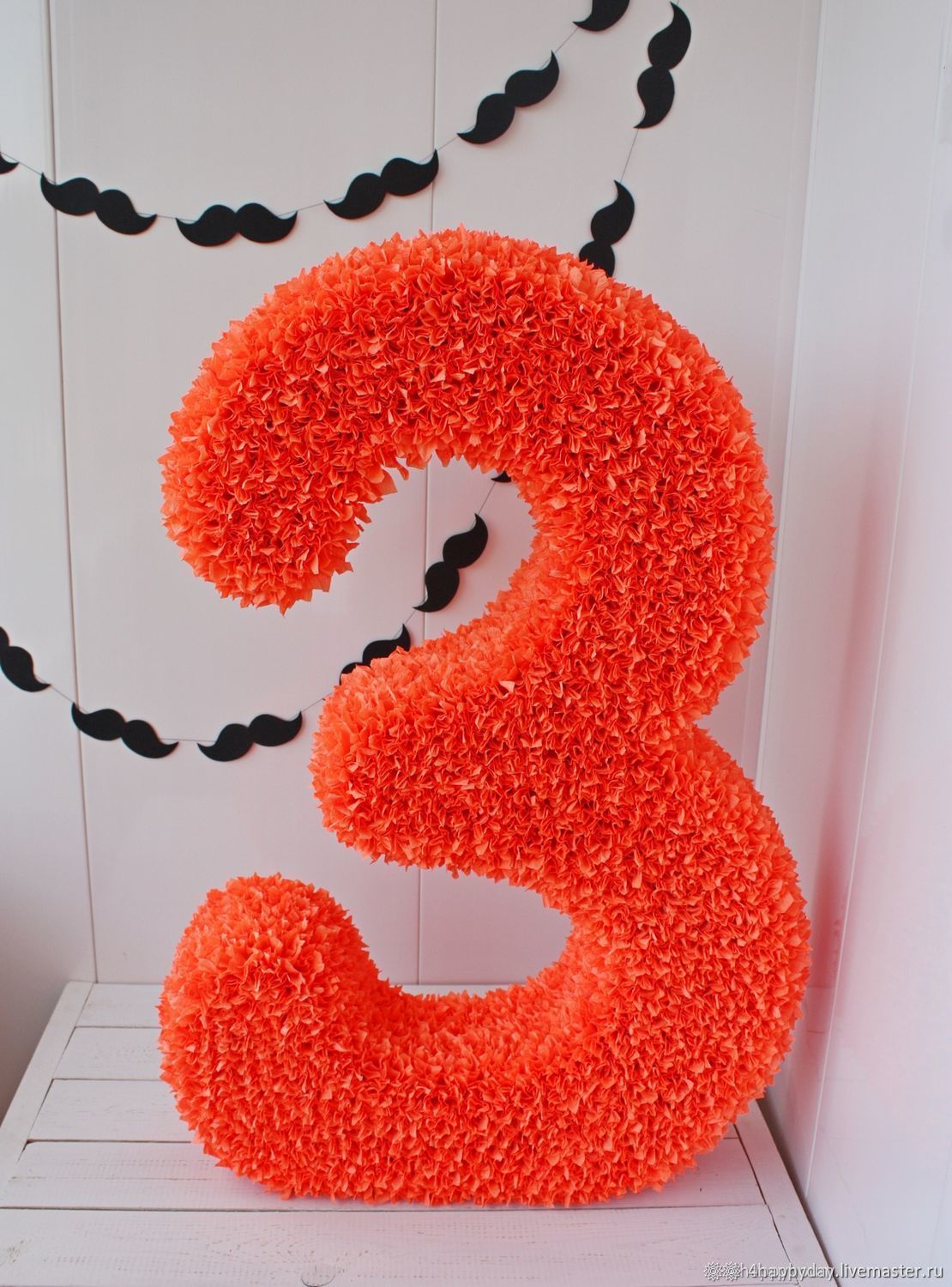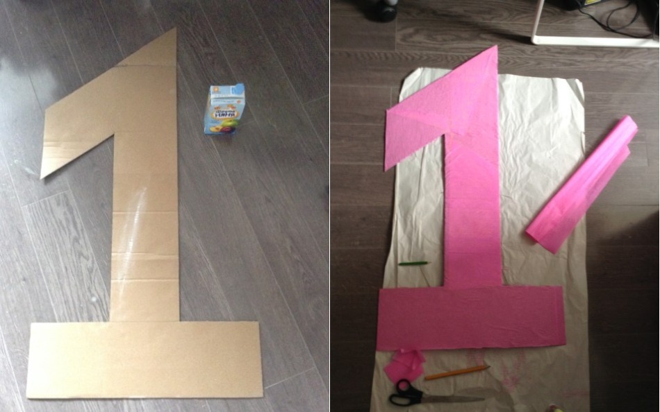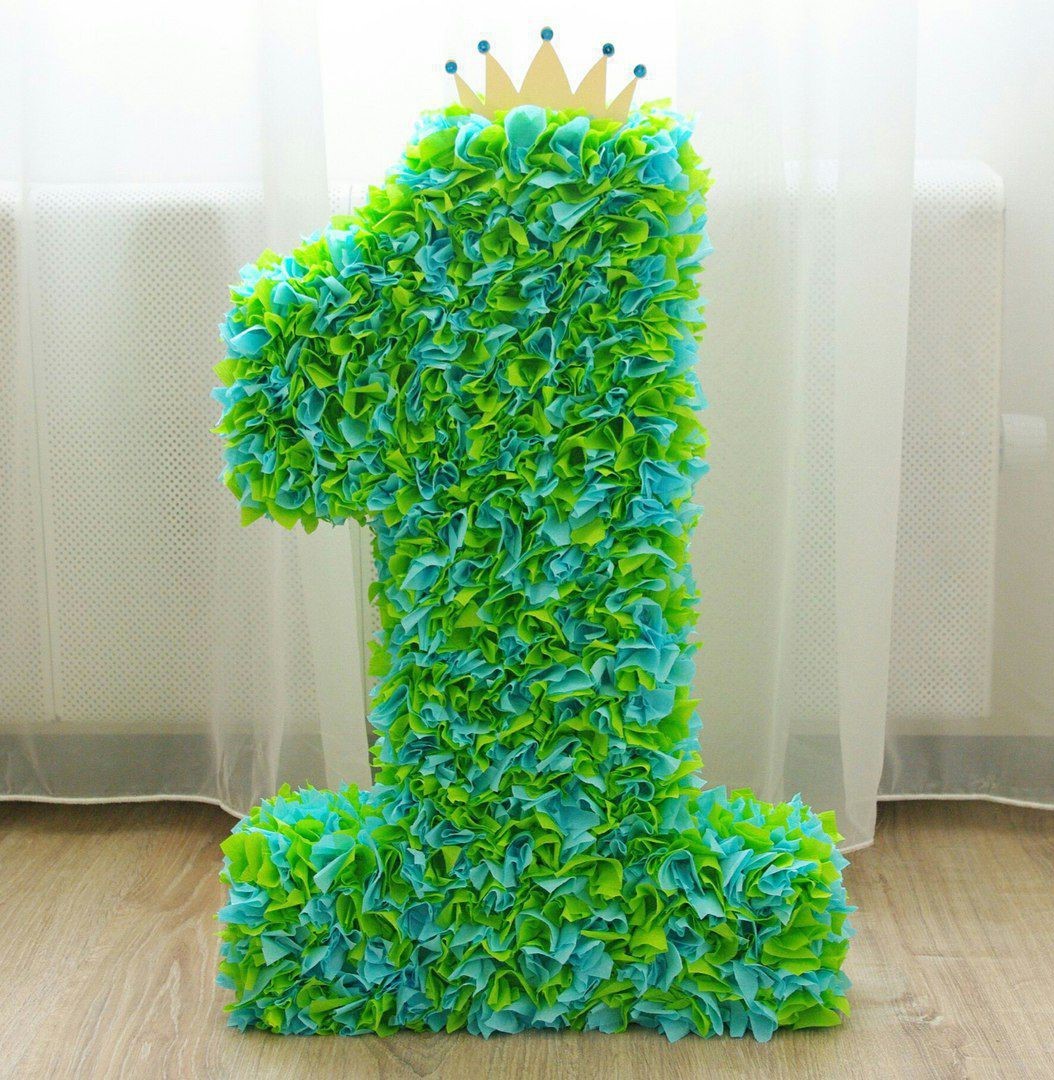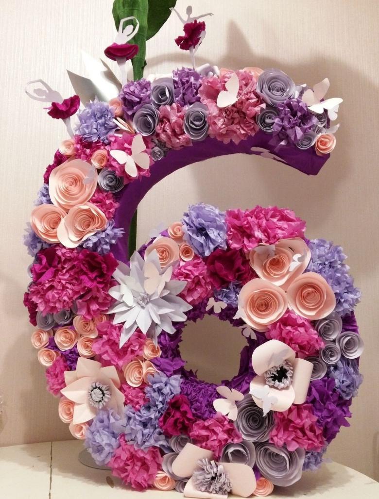 Voici une autre idée simple de comment faire un numéro 1 pour un anniversaire avec vos propres mains à mettre en œuvre qui nécessitera du papier ondulé. Le papier est utilisé pour réaliser plusieurs dizaines de fleurs en papier, formant des boules volumineuses aux pétales bien visibles.