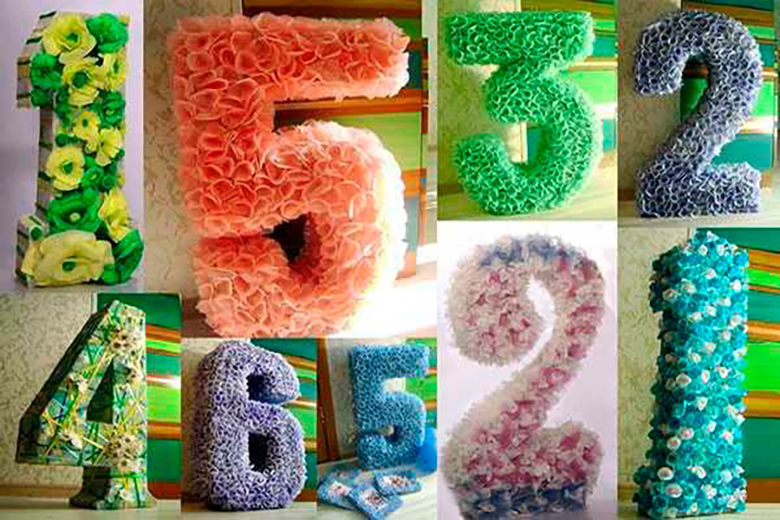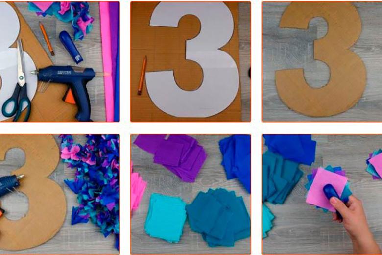 Créer une décoration festive vraiment originale et exclusive est facile et implique l'utilisation de formes tridimensionnelles. En se demandant ce que l'on peut faire comme figurine pour un anniversaire, il vaut mieux opter pour du carton, il suffit de former un cadre, et déjà ça - décorer :