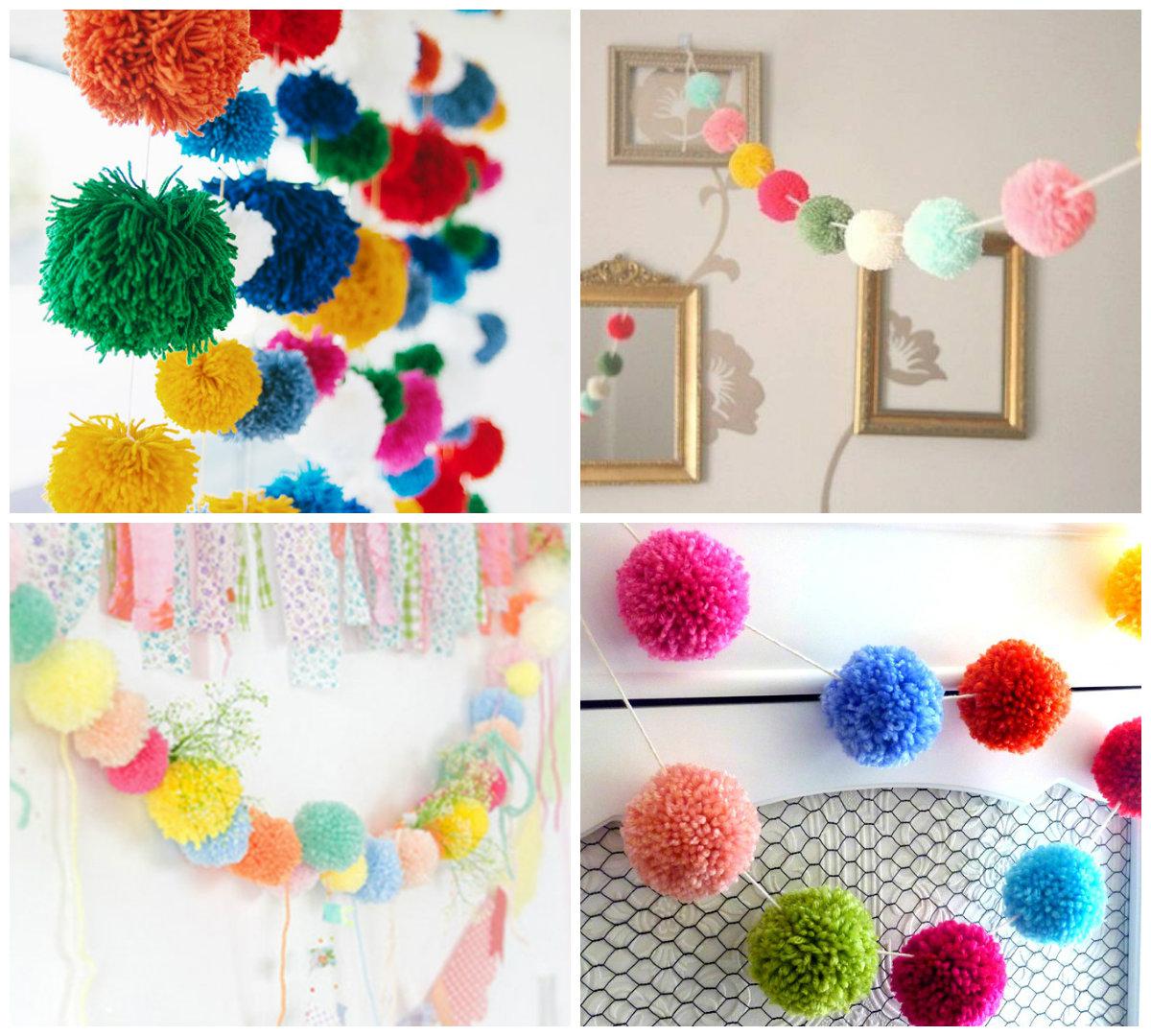 Les fils de laine épais et aux couleurs vives sont parfaits pour réaliser de jolis pompons câlins de toutes tailles. Une fois que vous en avez préparé suffisamment, vous pouvez les coller fermement sur un cadre en carton pour créer une décoration colorée et accrocheuse qui sera une pièce maîtresse de la fête.