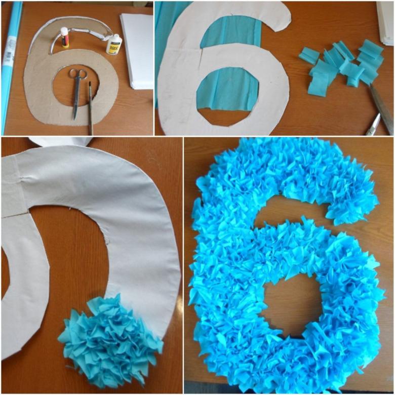 La préparation de la fête à venir ne prendra pas beaucoup de temps si vous décidez à l'avance des décorations à utiliser pour les murs de la table et même pour les friandises. Des matériaux et des outils bon marché sont utilisés pour créer les chiffres et autres décorations. Le décor est lumineux et exclusif, et impressionne le fêté et ses invités.