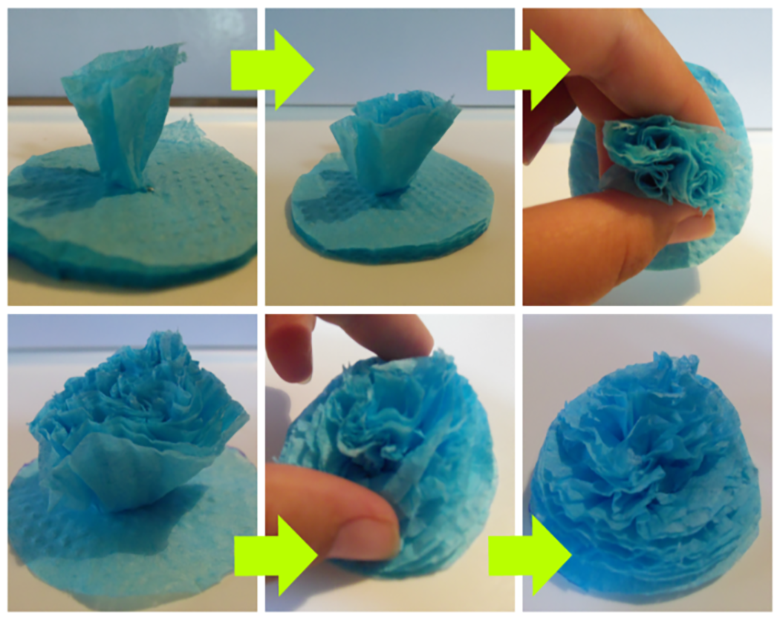 - rosettes en tissu, en feutre ou en ouate teintée ;