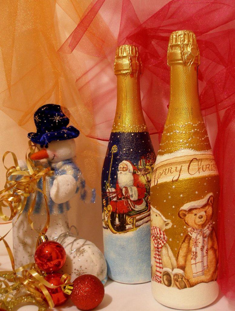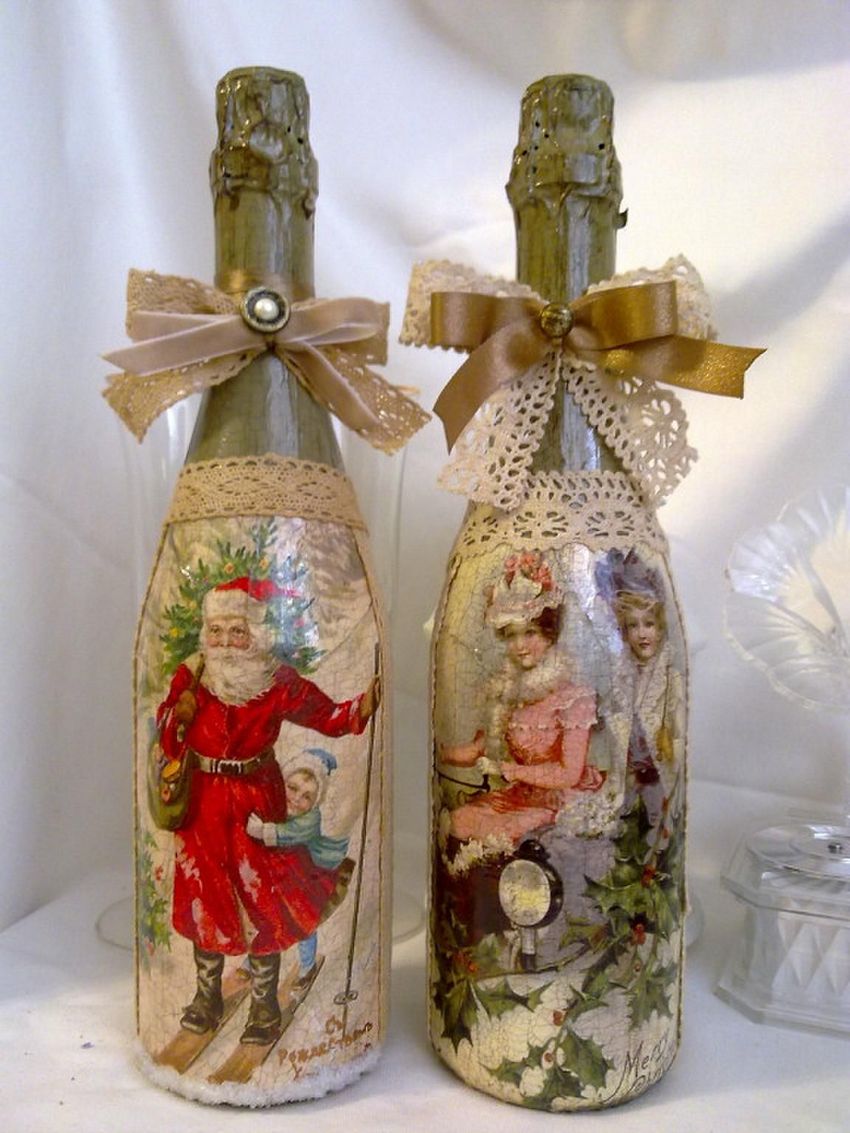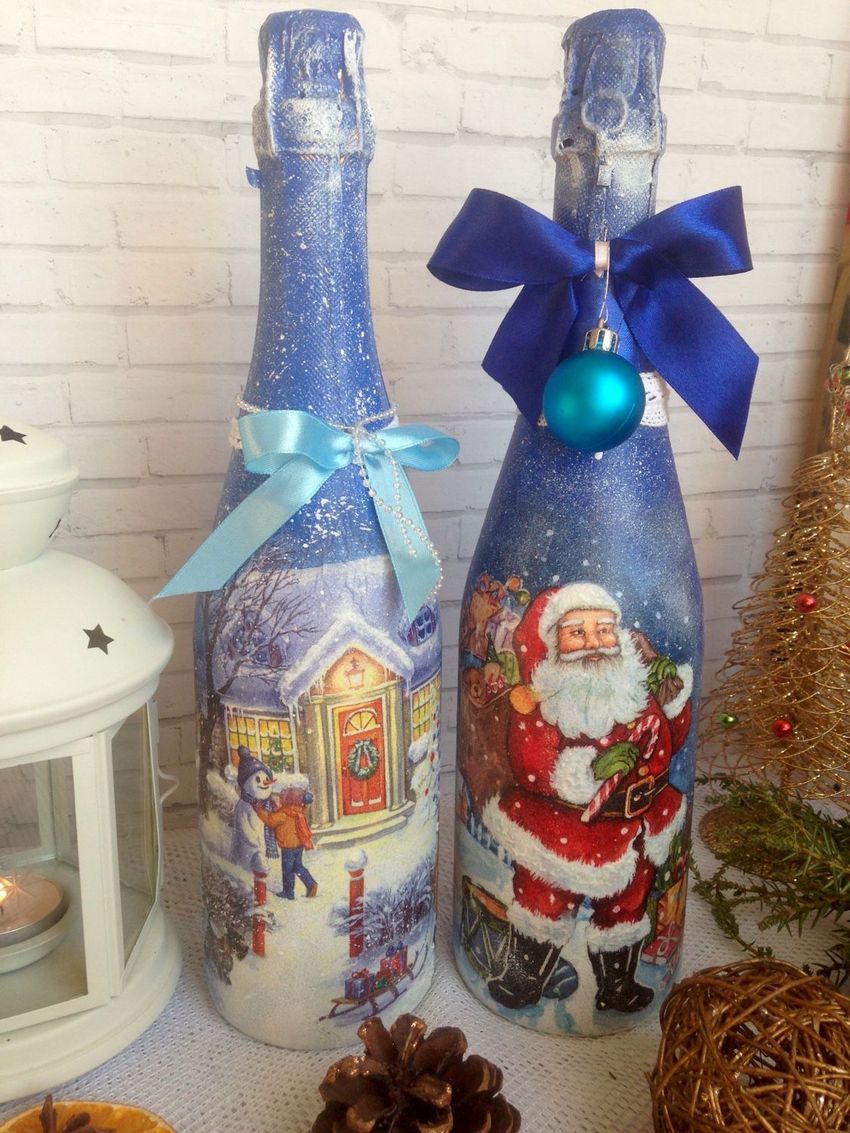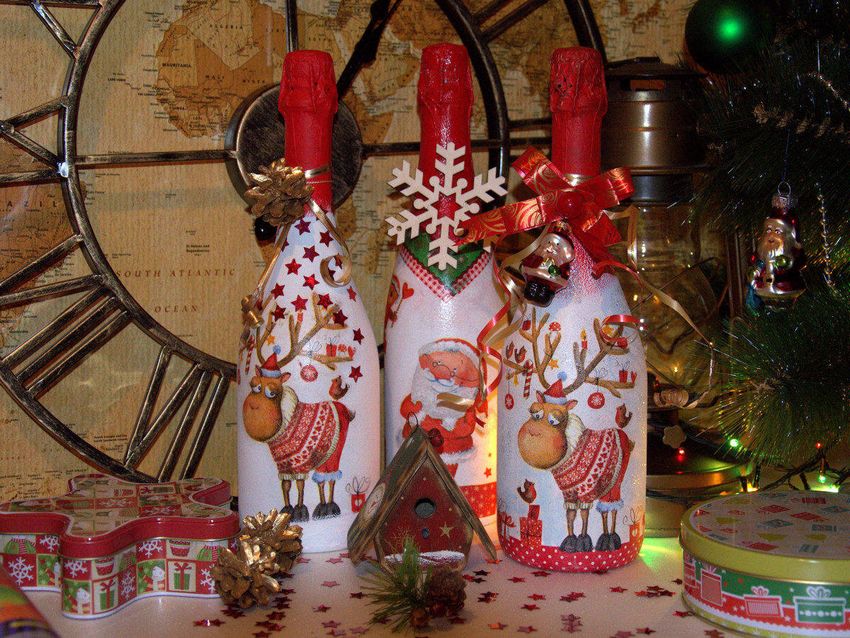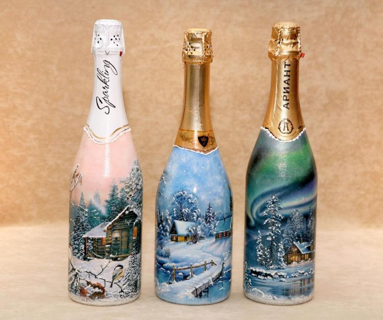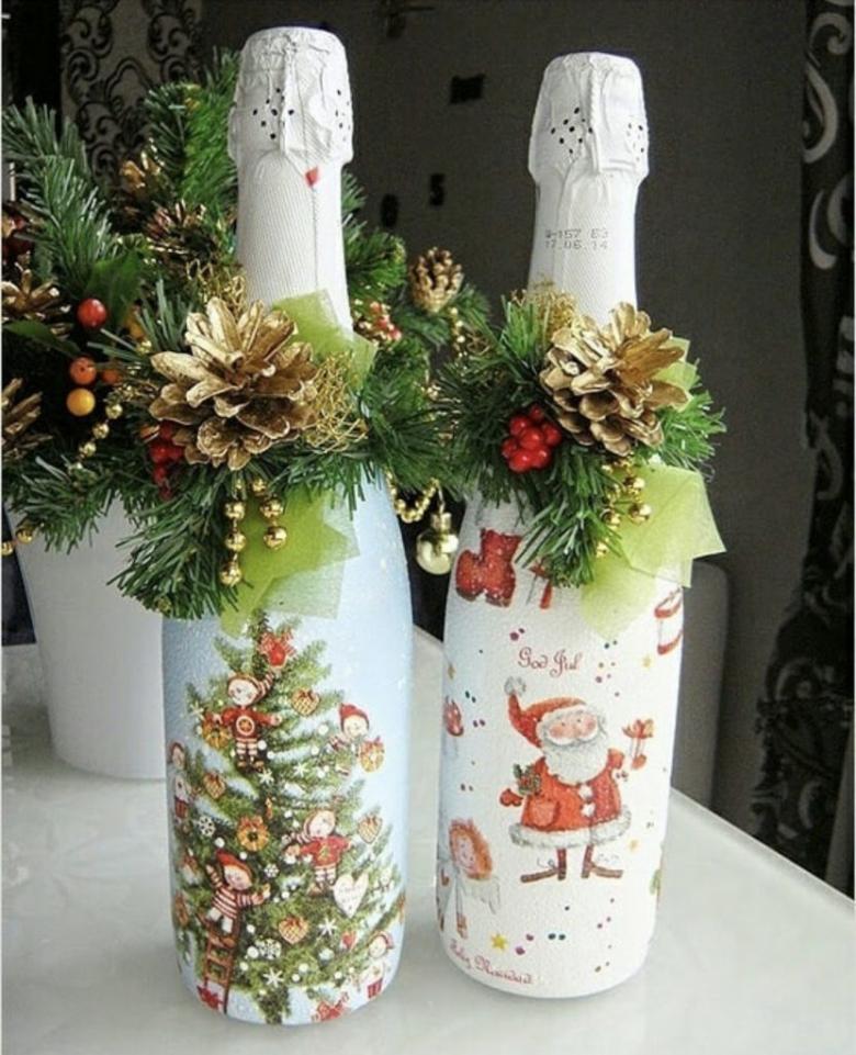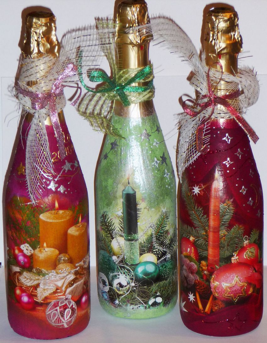 Découpage de bouteilles de champagne du Nouvel An - idées intéressantes et belles pour la décoration des bouteilles (75 photos)