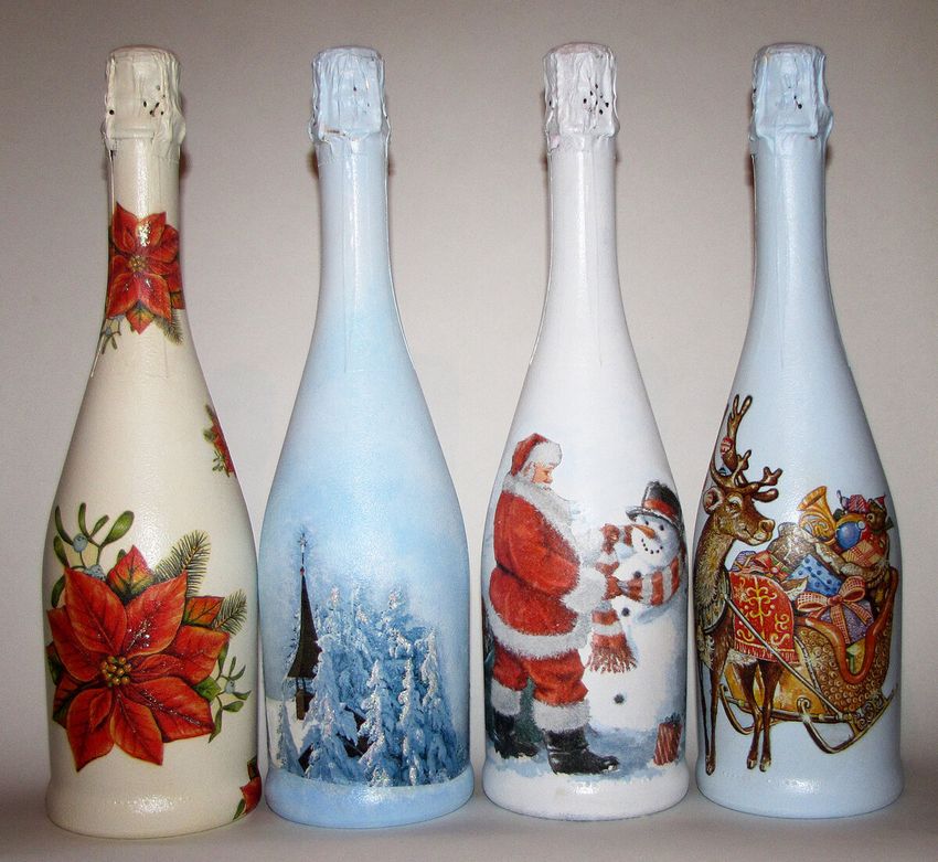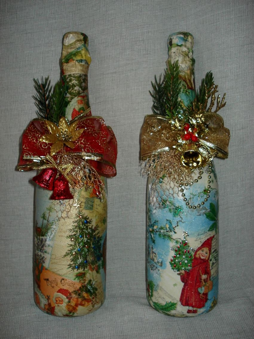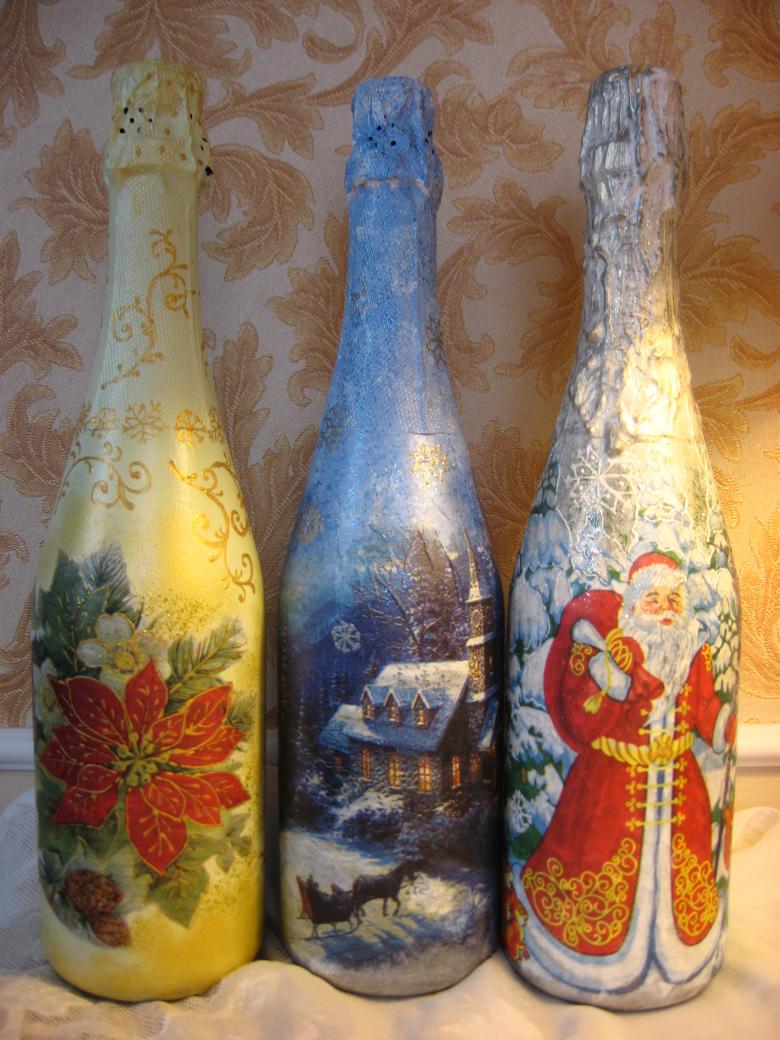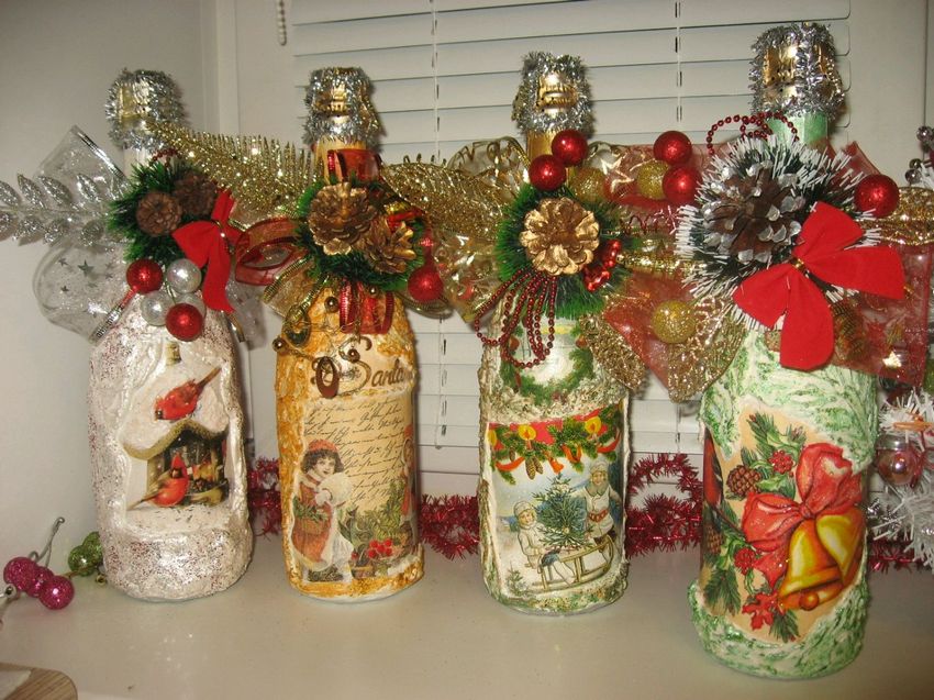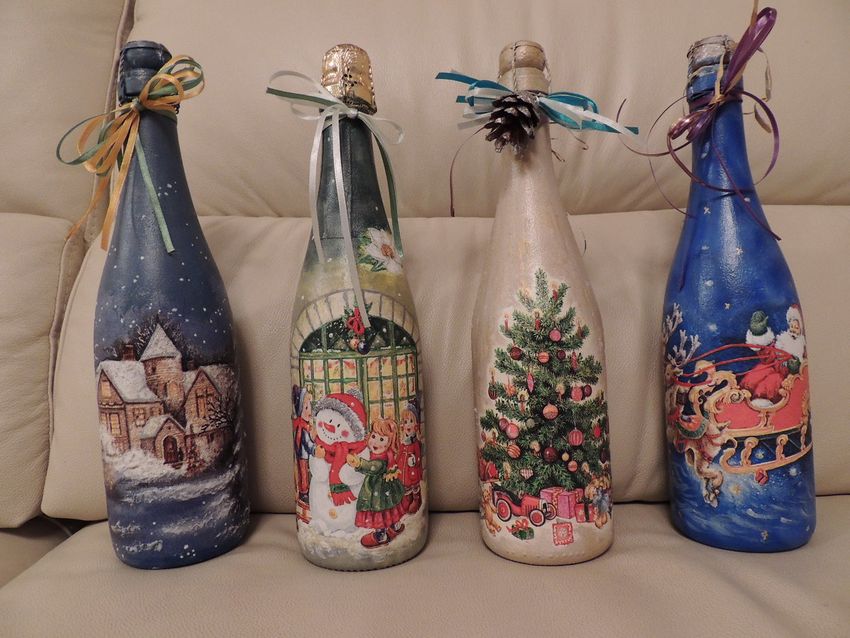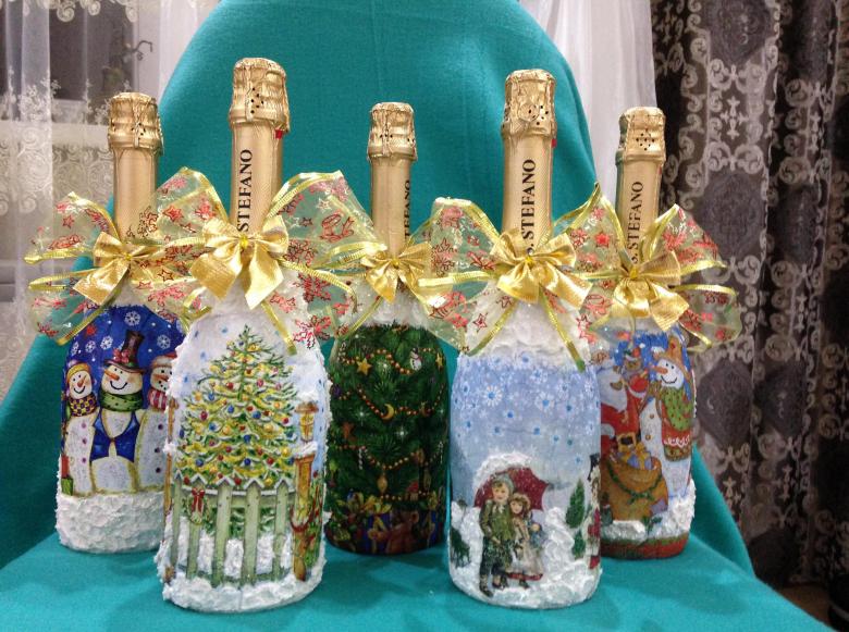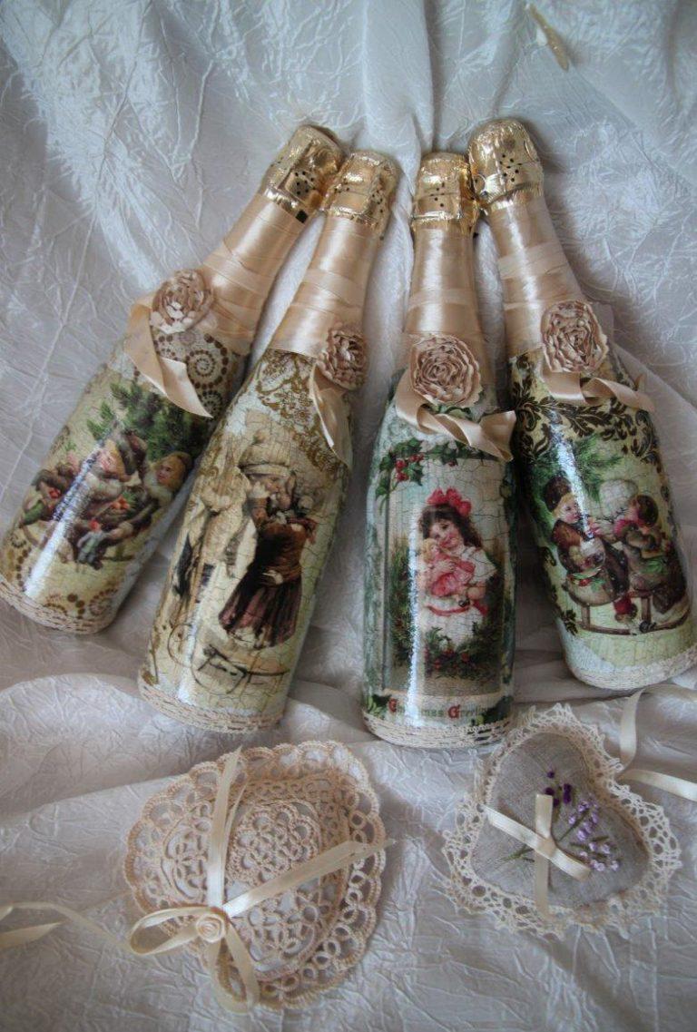 Découpage de bouteilles de champagne du Nouvel An - idées intéressantes et belles pour la décoration des bouteilles (75 photos)