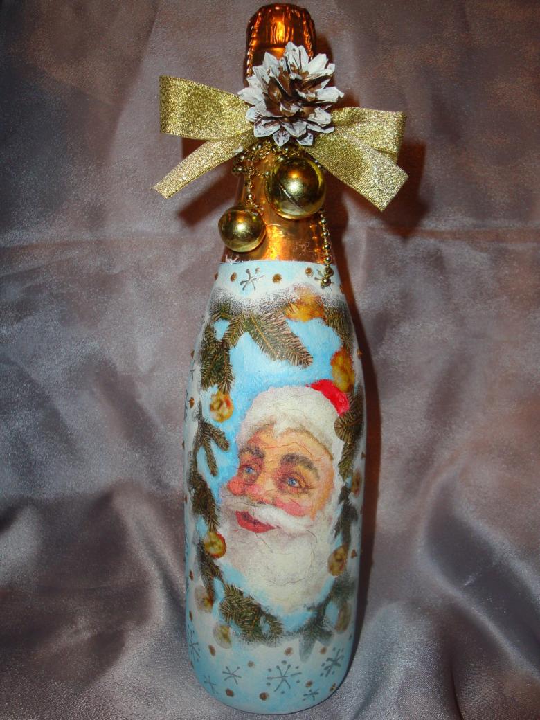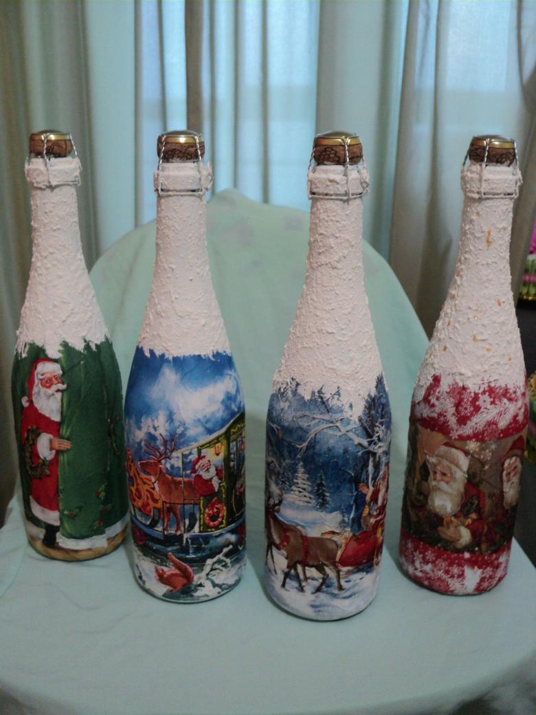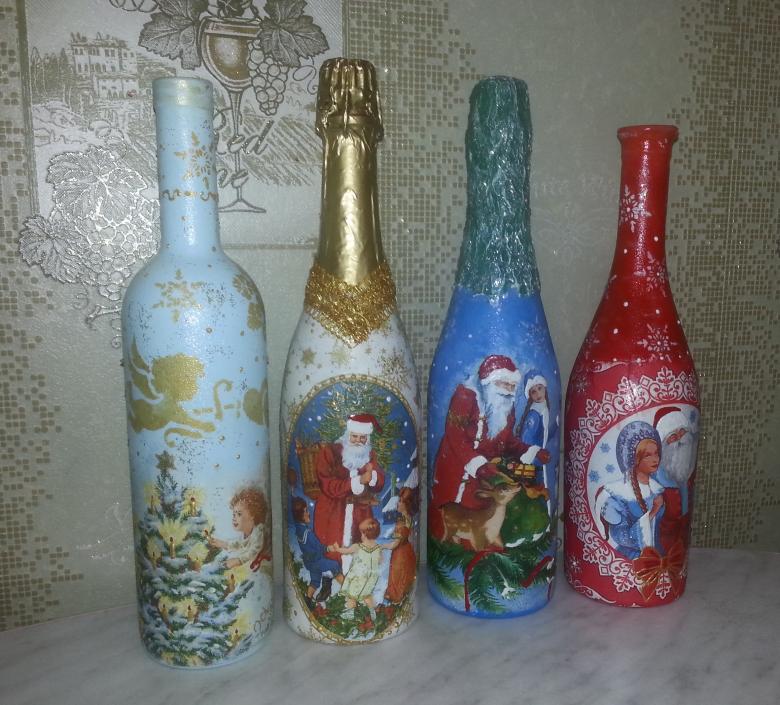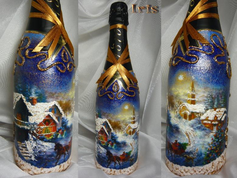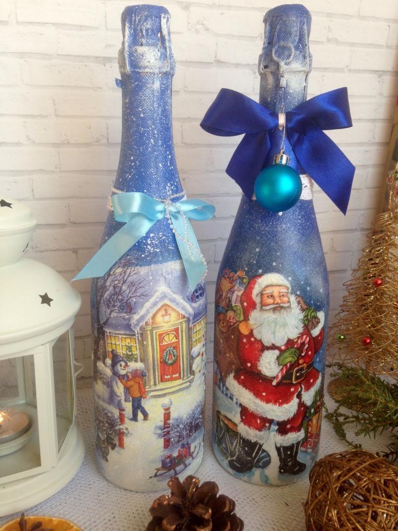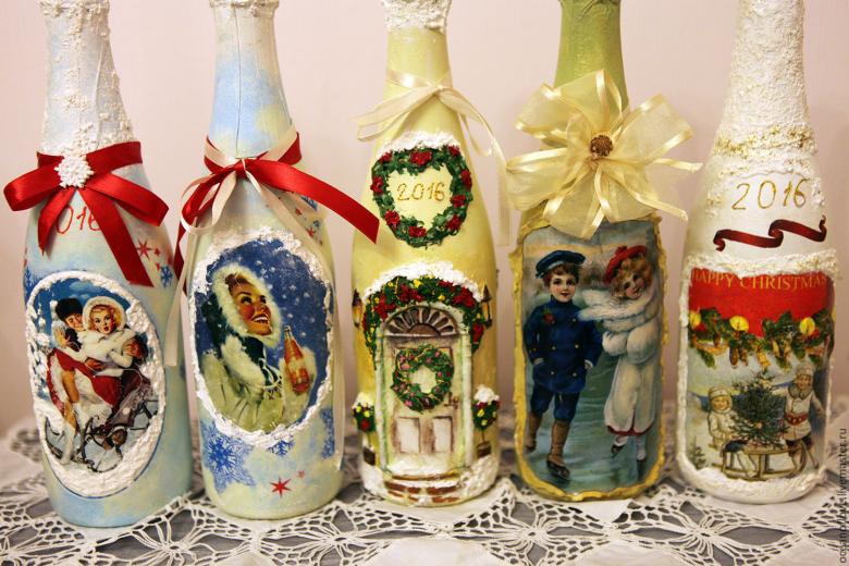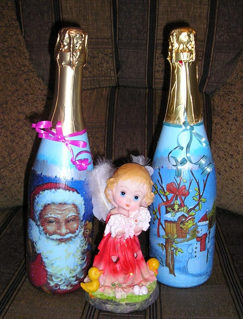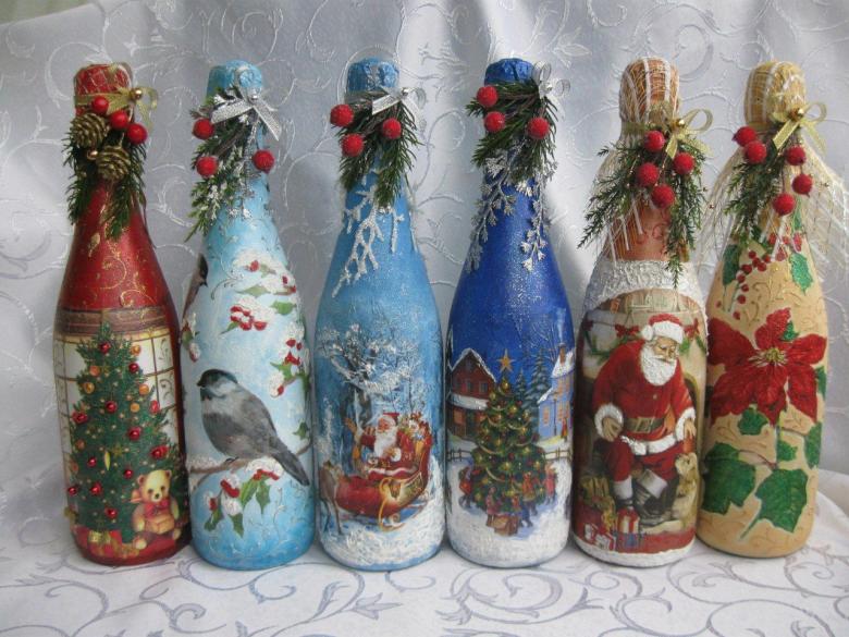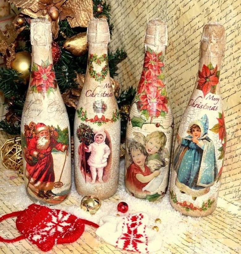Découpage de bouteilles de champagne du Nouvel An - idées intéressantes et belles pour la décoration des bouteilles (75 photos)
