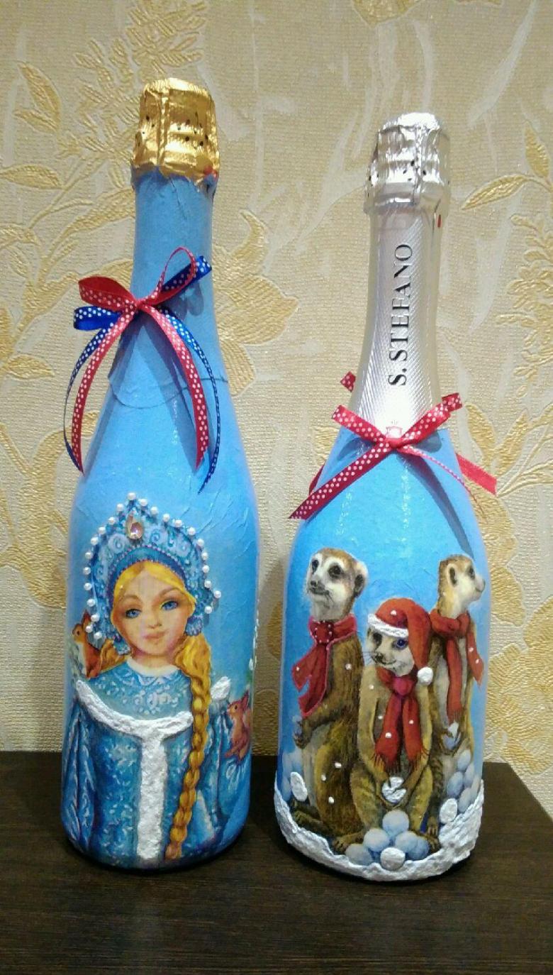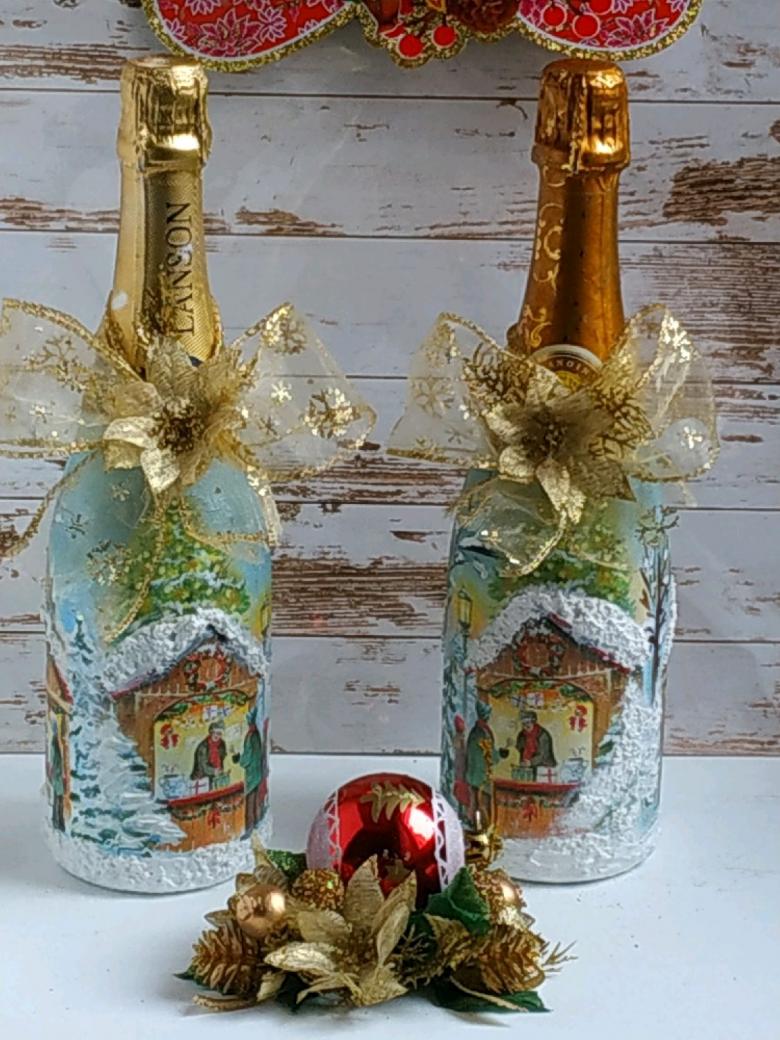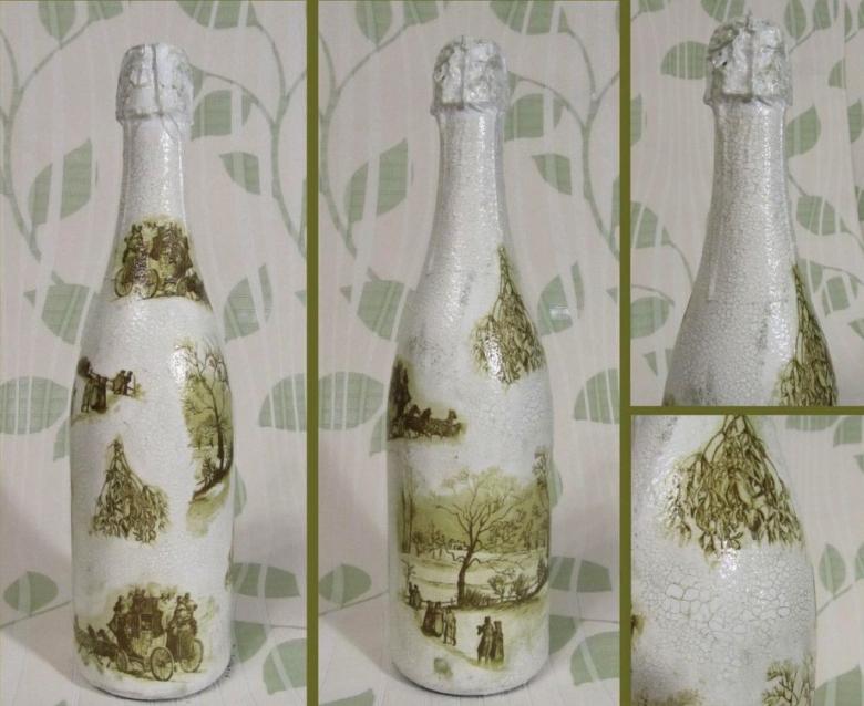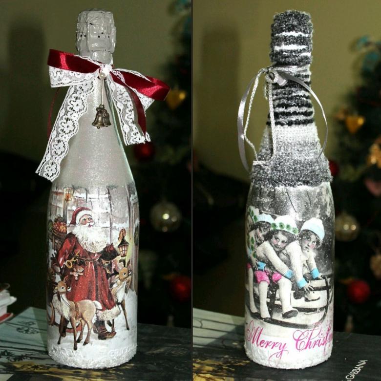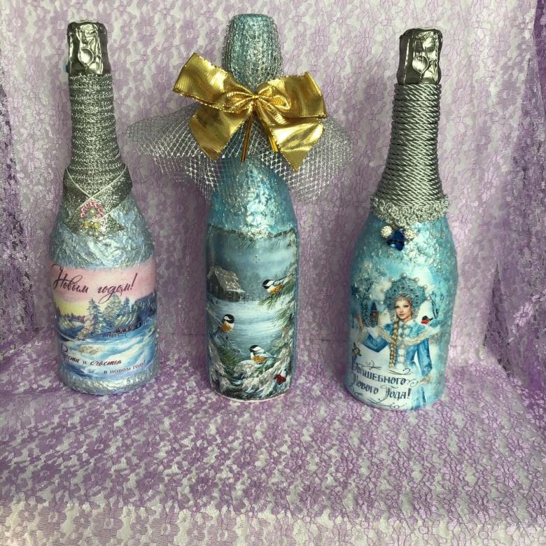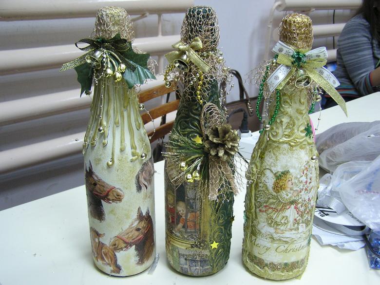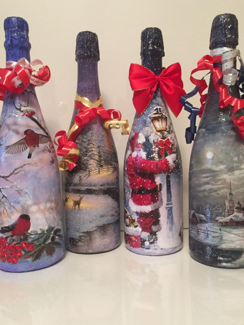 Découpage de bouteilles de champagne du Nouvel An - idées intéressantes et belles pour la décoration des bouteilles (75 photos)