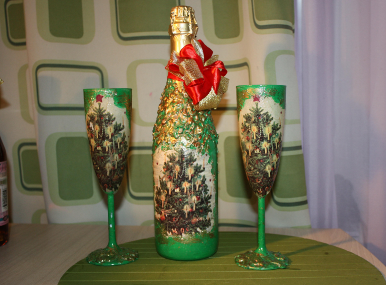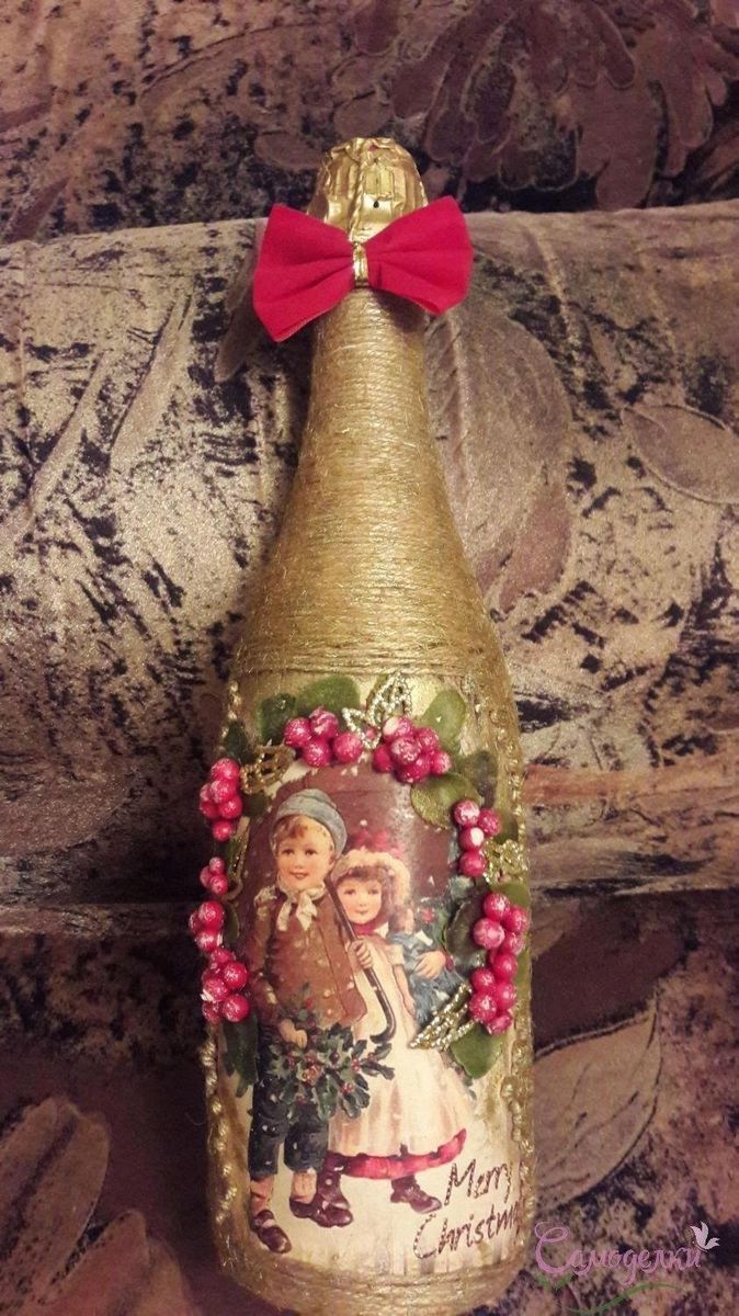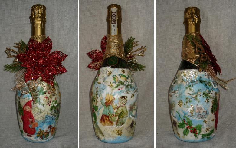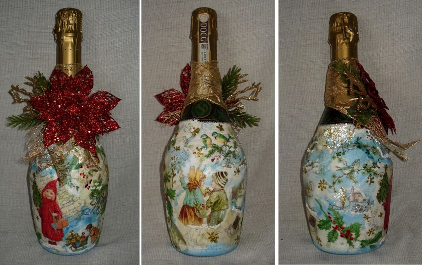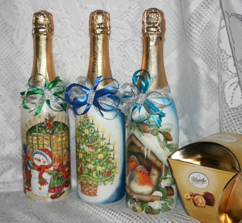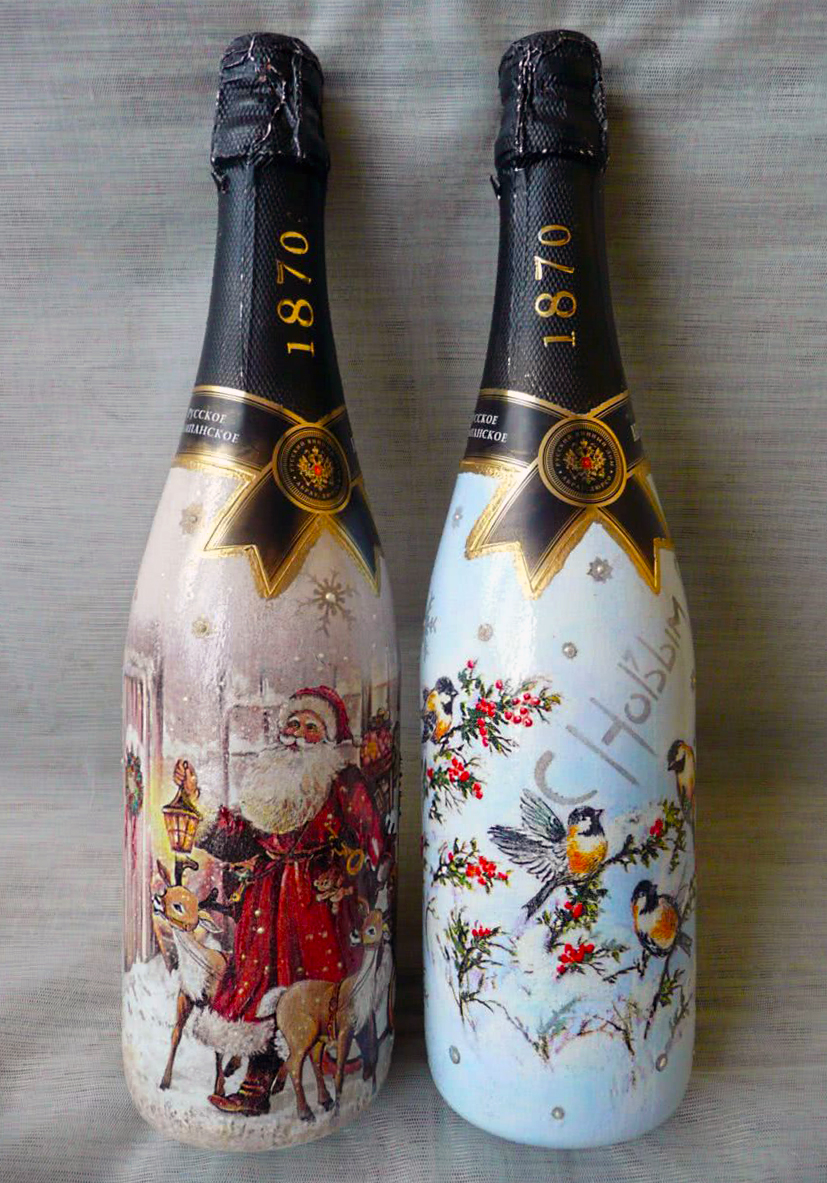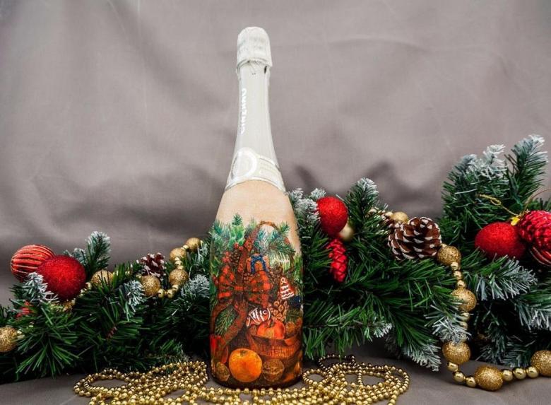 Même un débutant peut le faire et le résultat est un cadeau unique. Le découpage sur une bouteille de champagne pour la nouvelle année est une forme d'art à part entière ; c'est une technique de décoration par l'image.