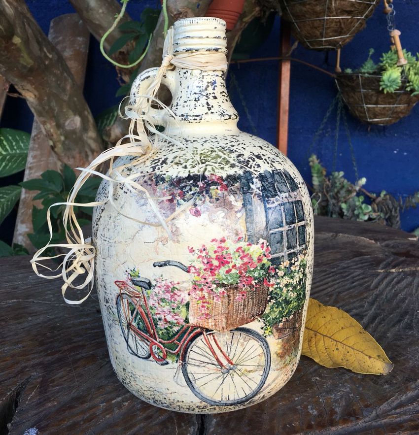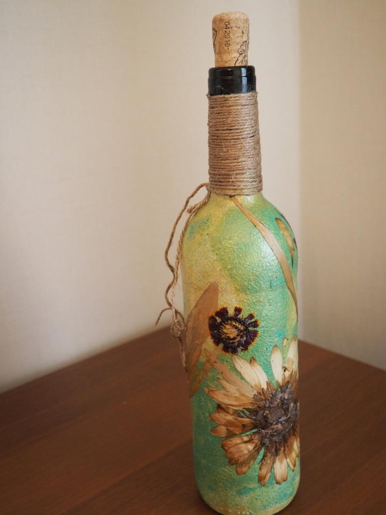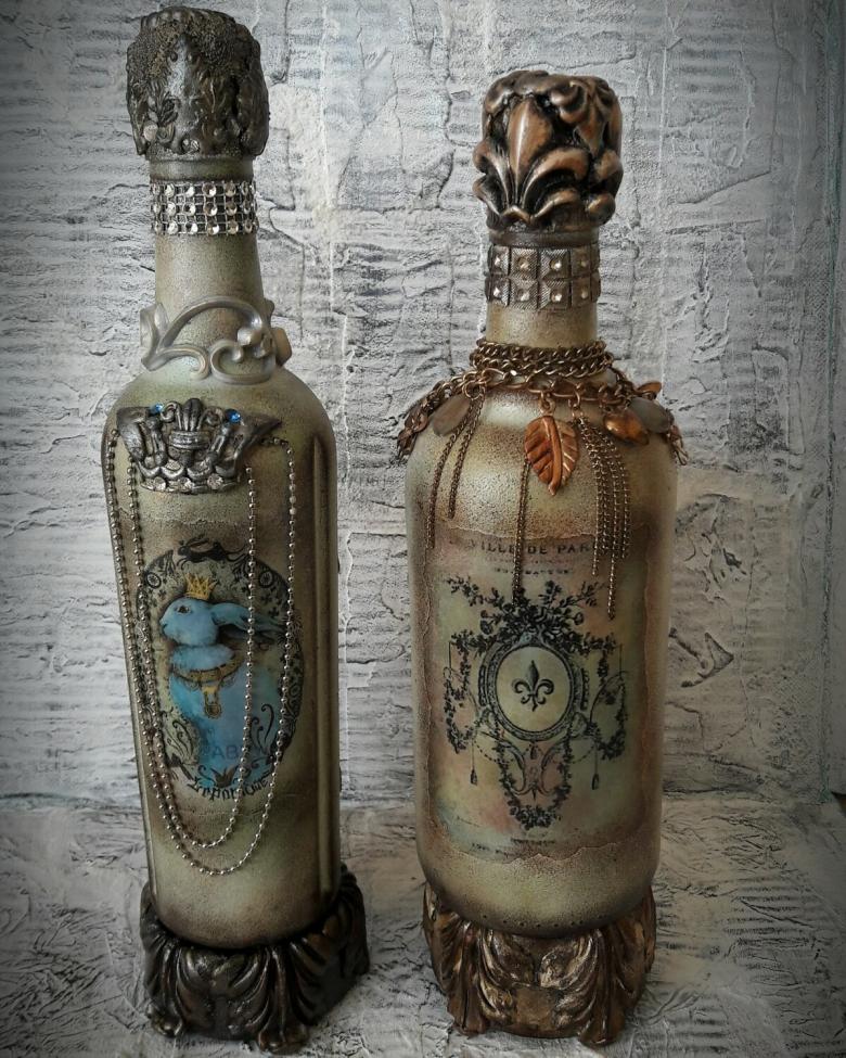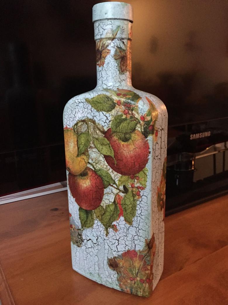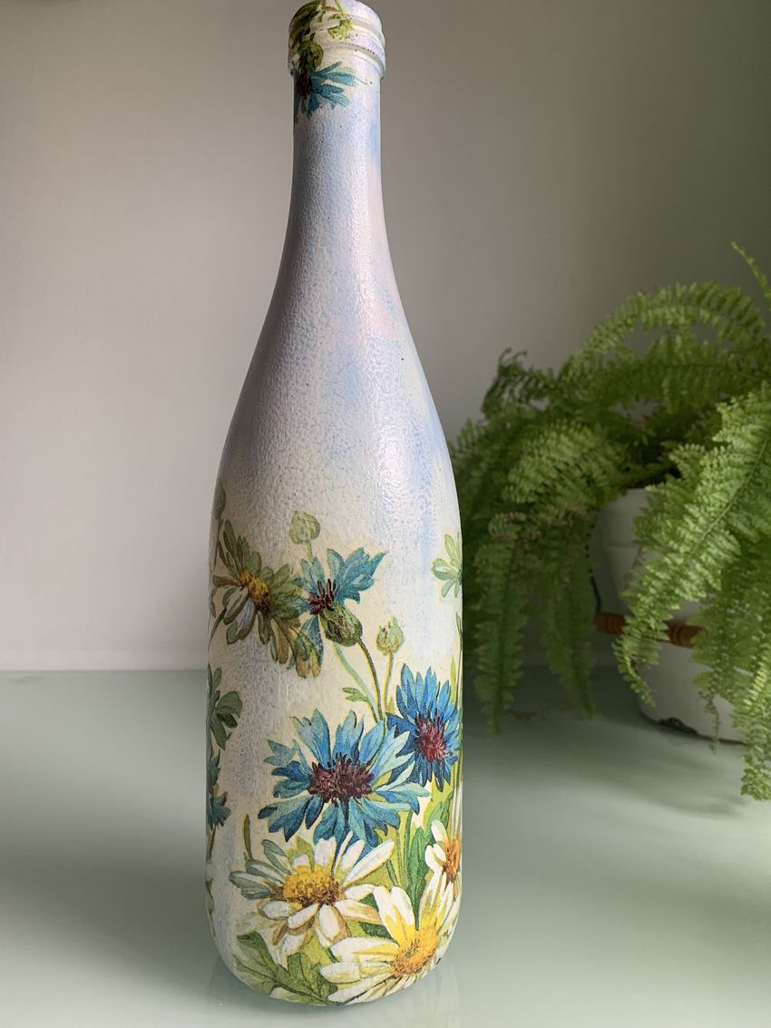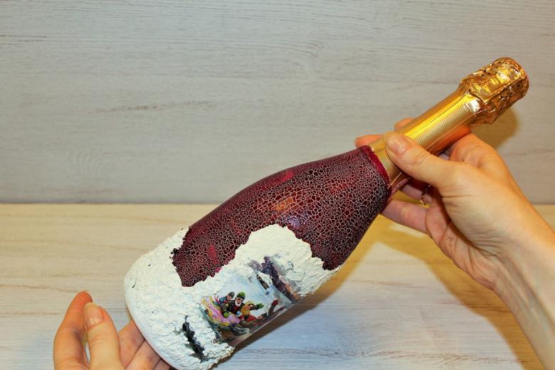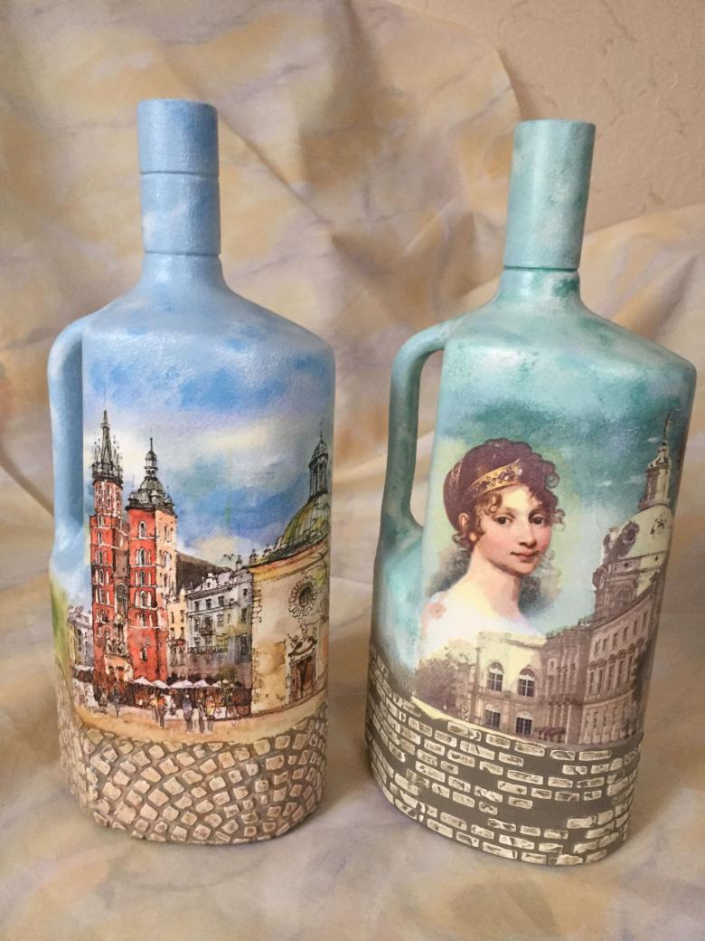 La décoration de l'objet est choisie en fonction de la composition générale de l'intérieur ou de la destination du futur objet. On réalise plus souvent des découpages de bouteilles avec des serviettes, pour lesquels on choisit des produits multicouches avec des dessins ou des images originales.