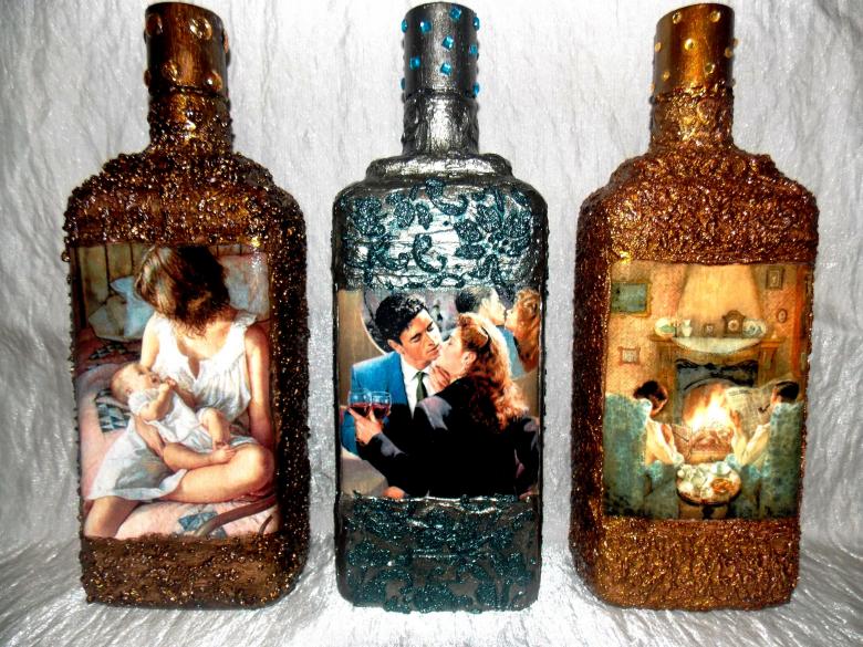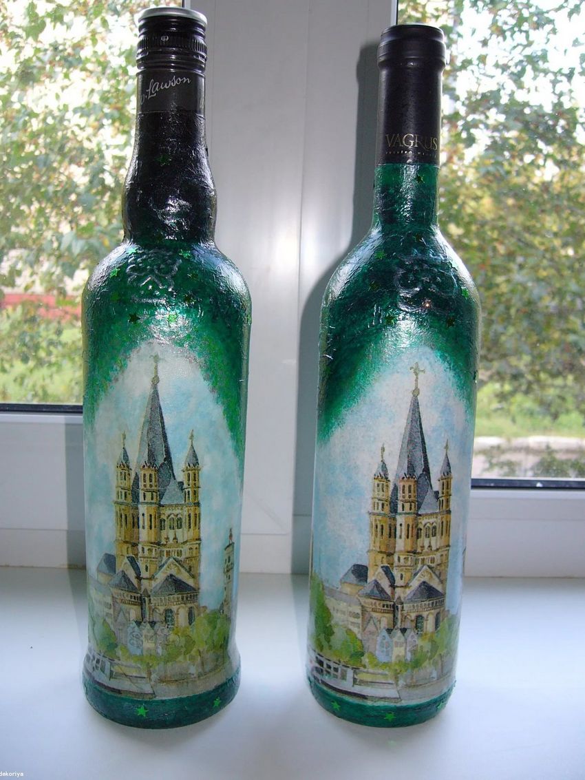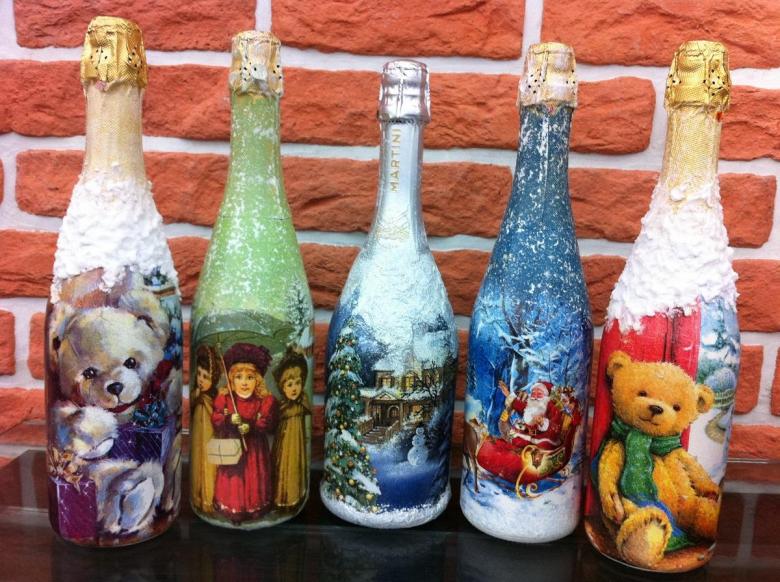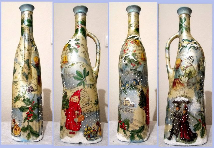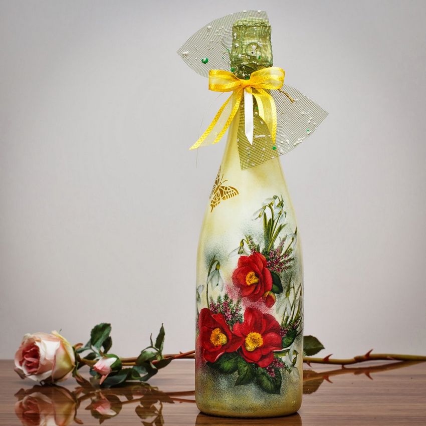 Découpage de bouteilles pour les débutants - nouvelles idées et variantes classiques de décoration