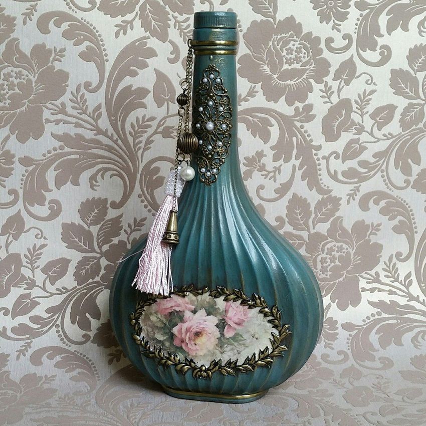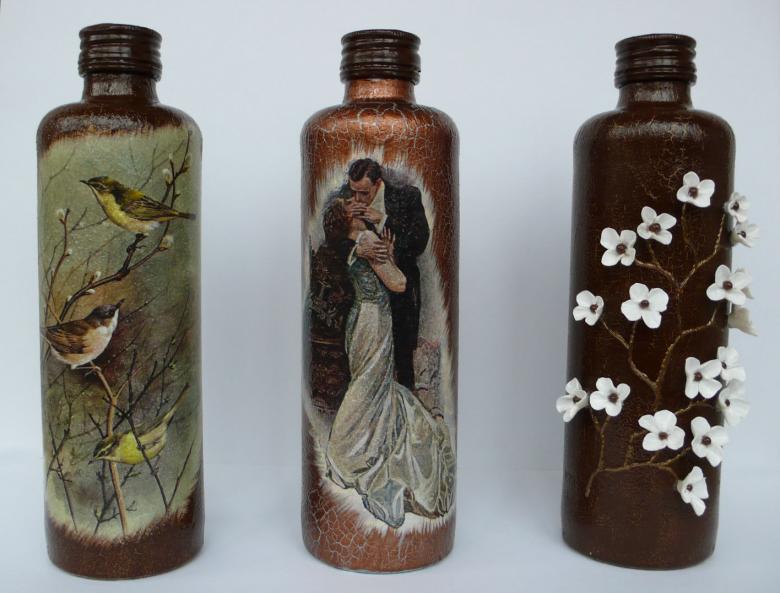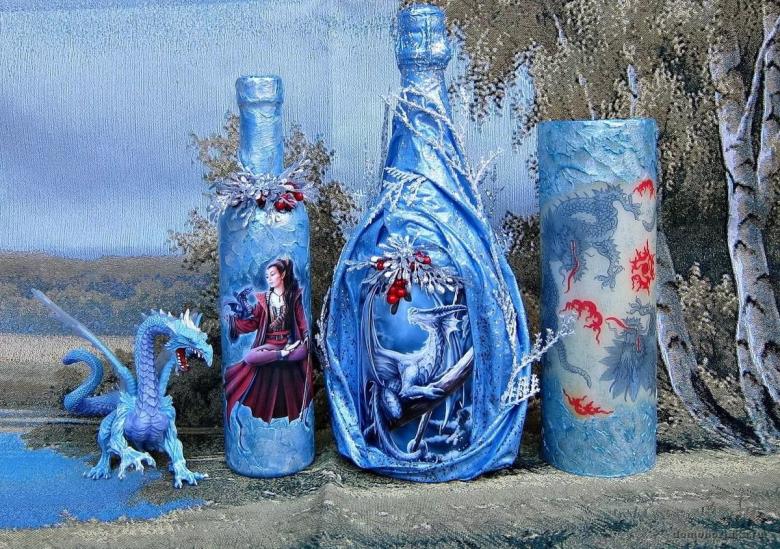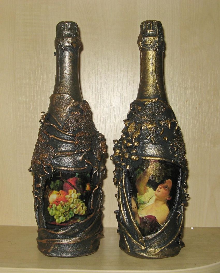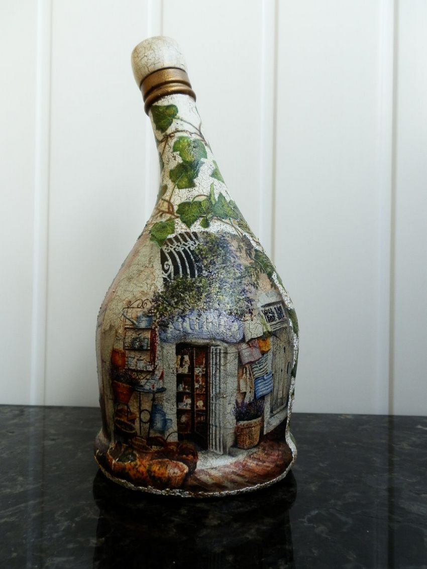 Découpage de bouteilles pour les débutants - nouvelles idées et variantes classiques de décoration