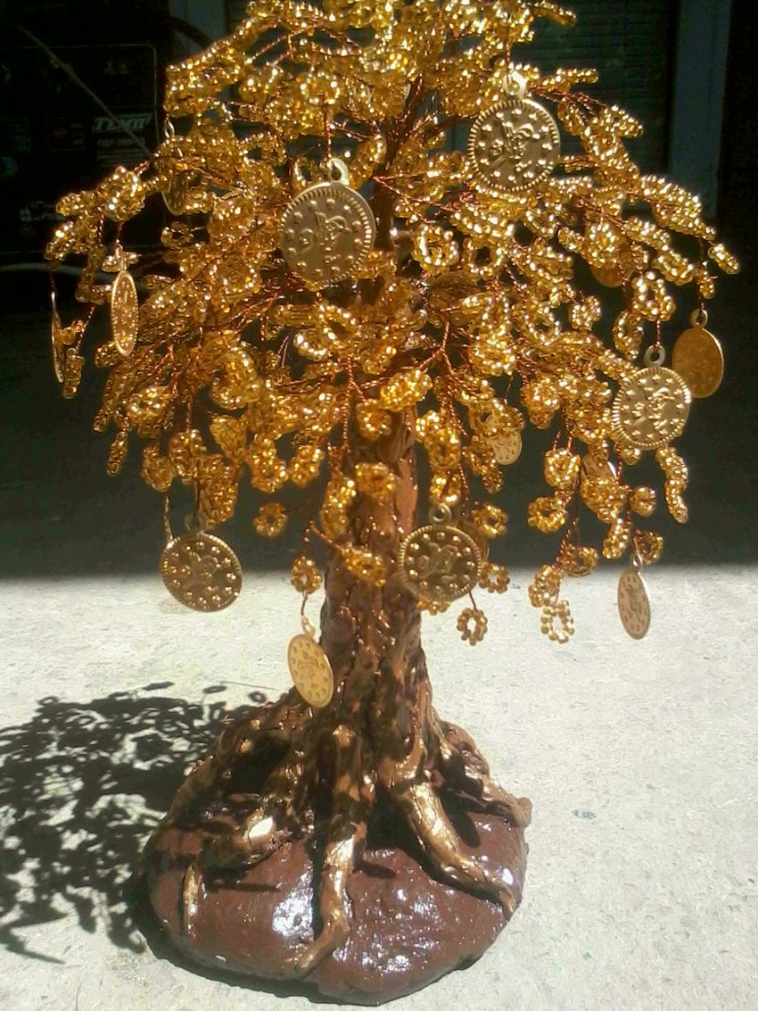 - Préparez un diagramme d'un arbre à argent fait de perles et de pièces de monnaie.