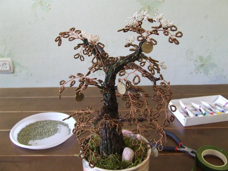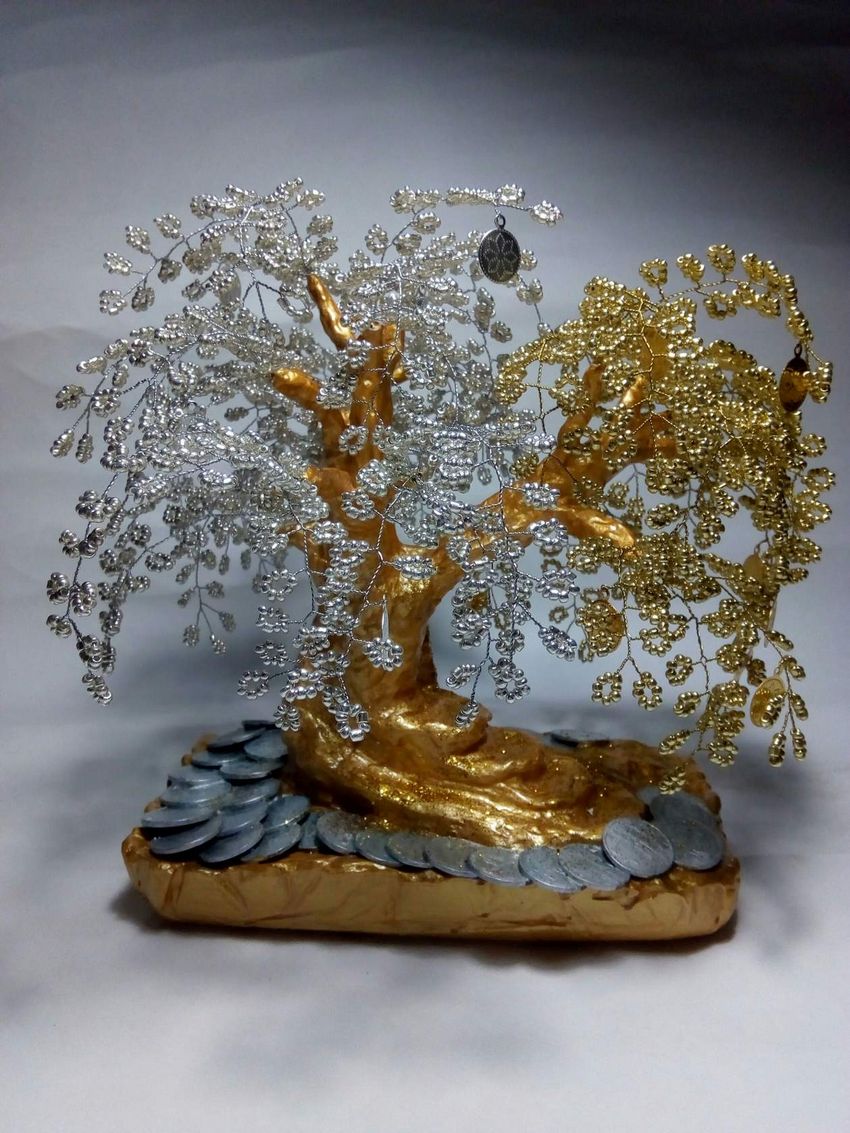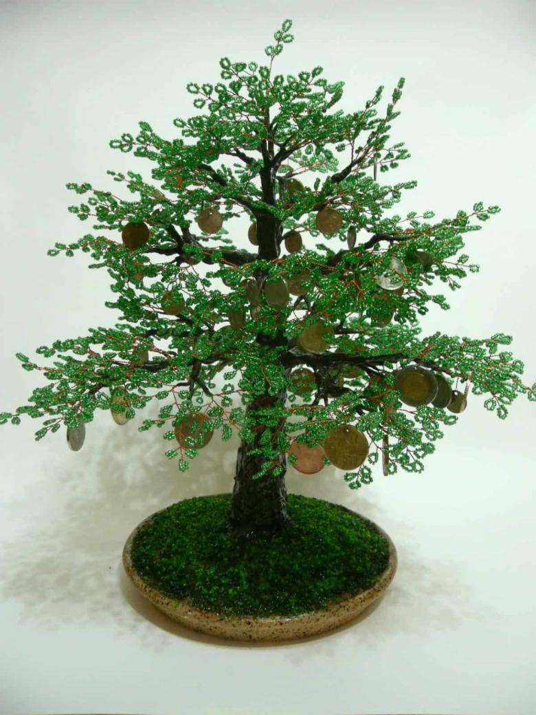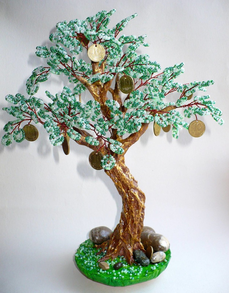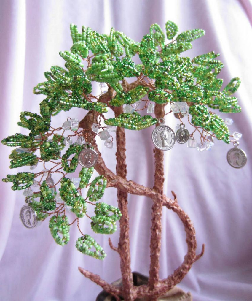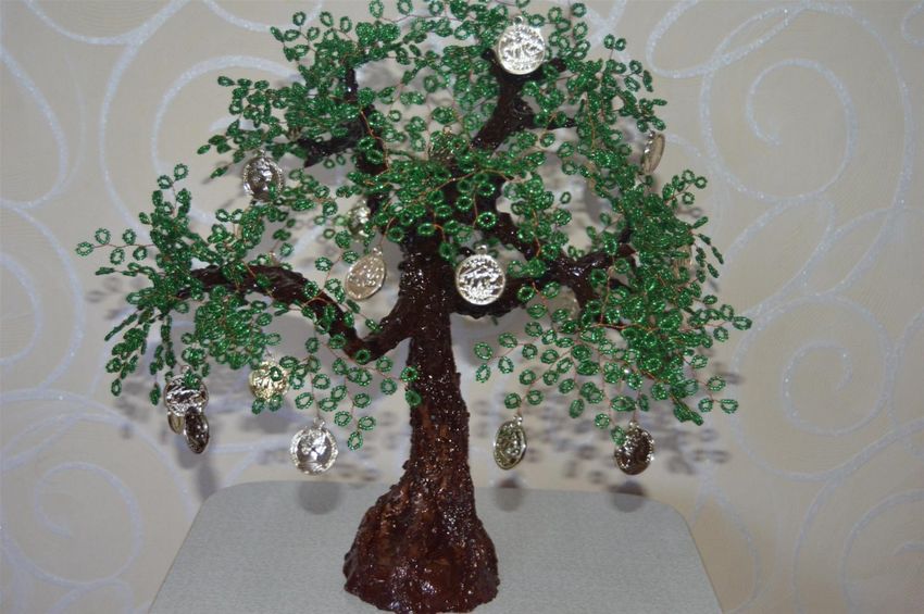 Arbre d'argent en perles et pièces de monnaie - outils et matériaux, schémas de tissage et conseils de placement, belles idées de photos