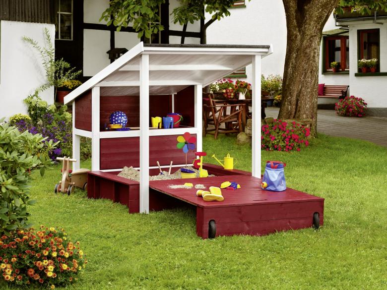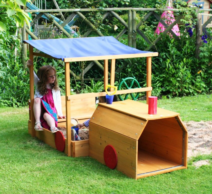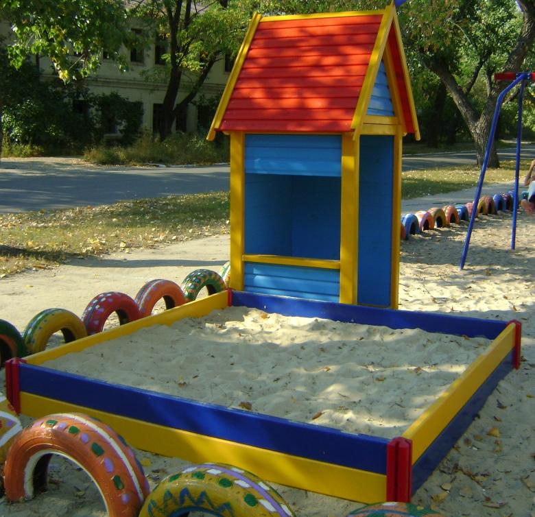 Une variété de bacs à sable occupera les enfants jusqu'à 7-8 ans. Vous pouvez fabriquer un petit bac à sable pour les plus petits à partir d'un gros pneu (très large) et pour les plus grands, vous devez fabriquer une structure à partir de planches.