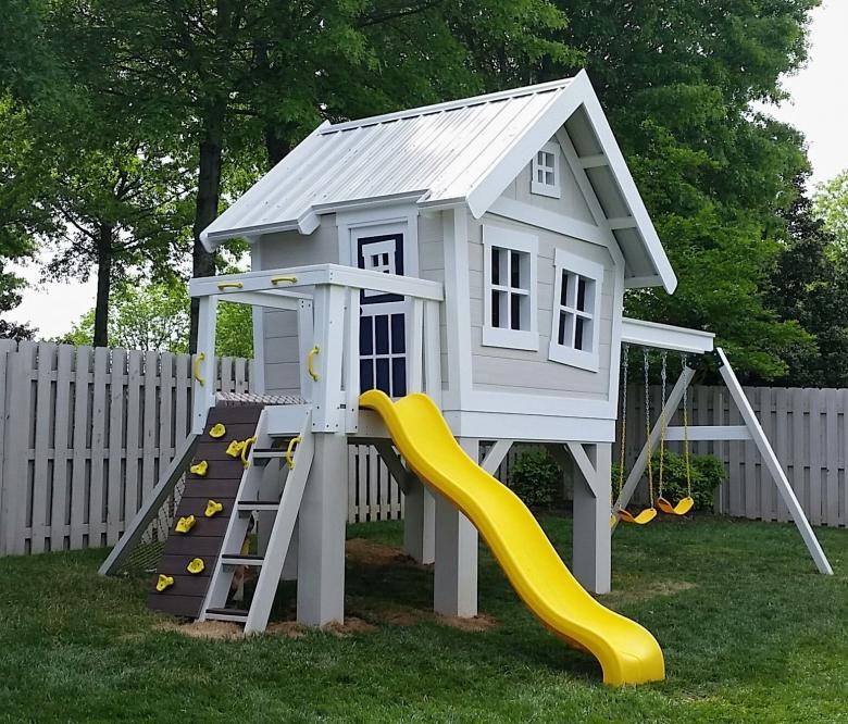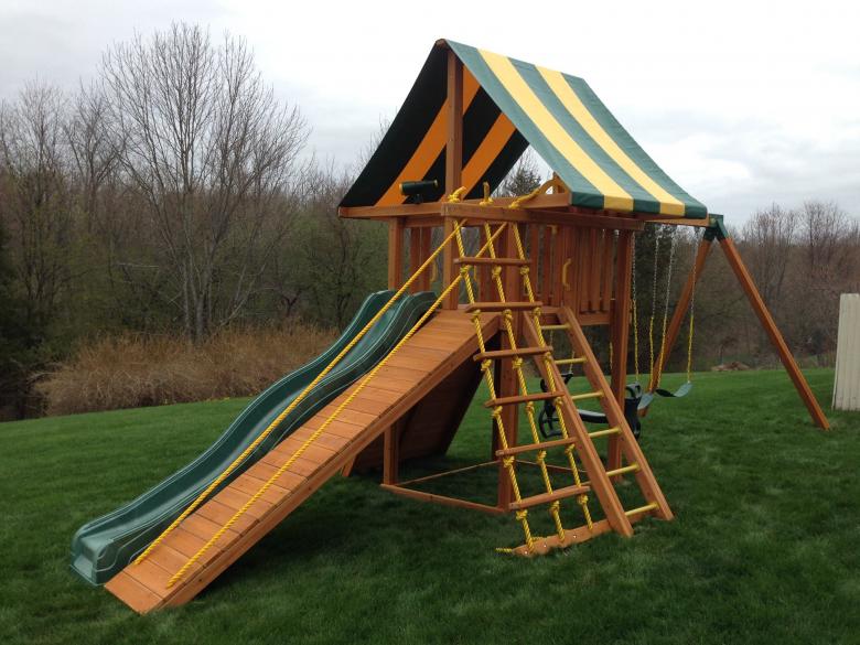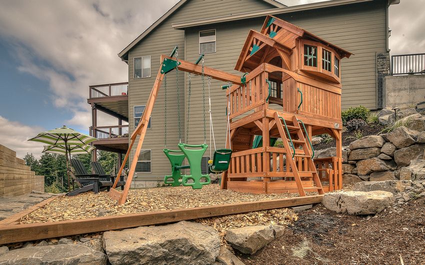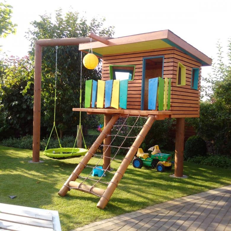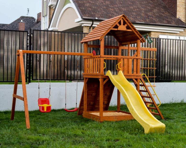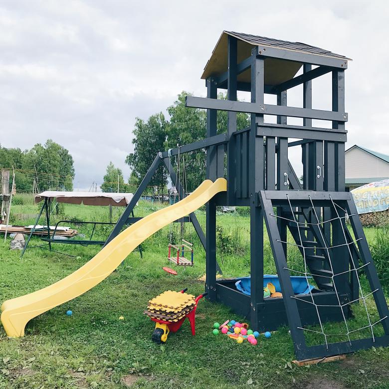 Pour que l'aire de jeux pour enfants soit un endroit agréable à vivre, il faut disposer de beaucoup d'espace. La distance entre les différents éléments doit traditionnellement être d'au moins un mètre. Mais si l'enfant est seul et n'a pas beaucoup d'amis au chalet, cette distance peut être raccourcie.