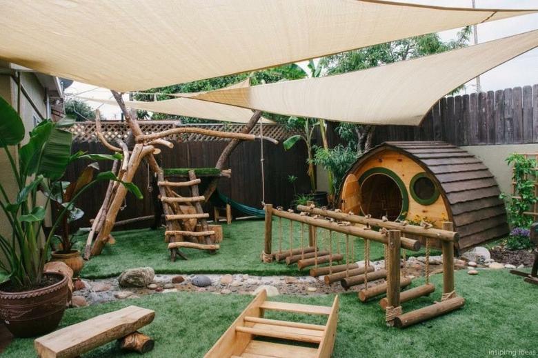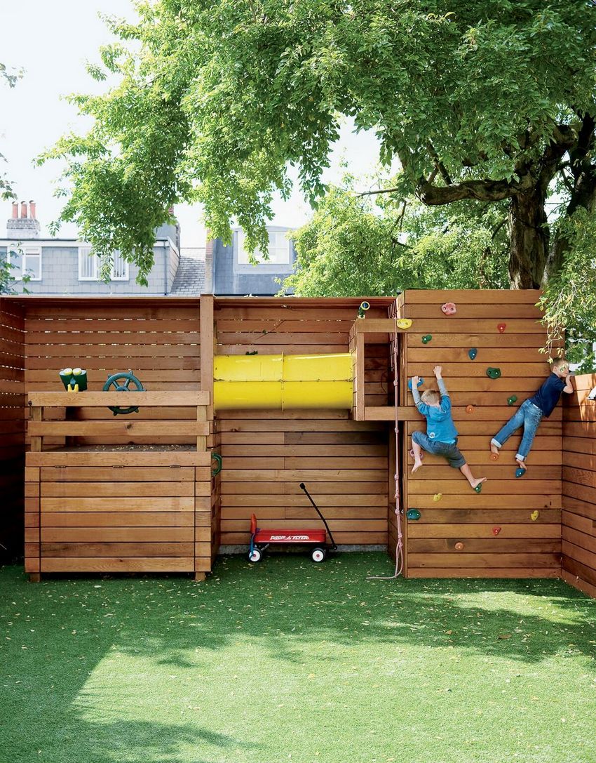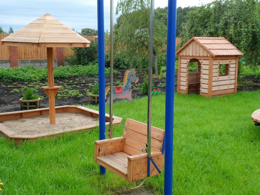 Et, bien sûr, les petits habitants ont aussi besoin d'un endroit où ils peuvent faire leurs activités préférées. Il est préférable que cette zone soit aménagée dès la phase de planification, mais même dans un potager déjà bien entretenu, il y a forcément un endroit pour Terrain de jeu pour les maisons de campagne avec leurs propres mains.