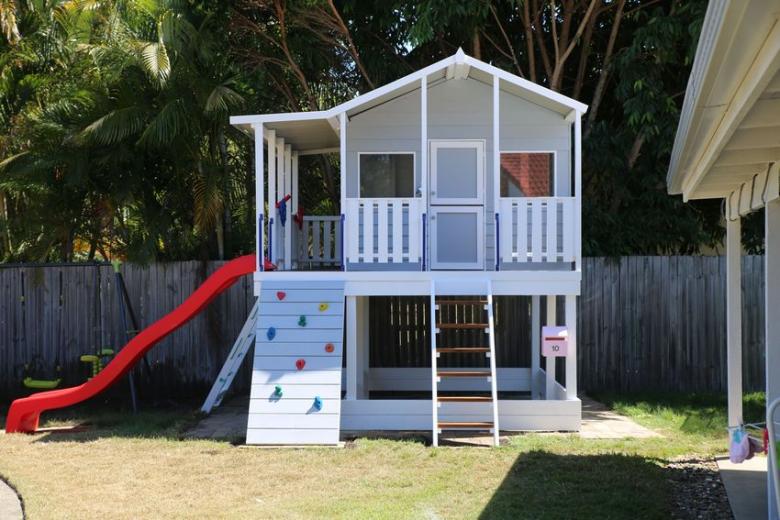 Une telle structure peut être équipée d'échelles de corde ou d'un toboggan.