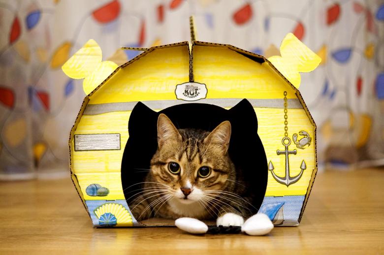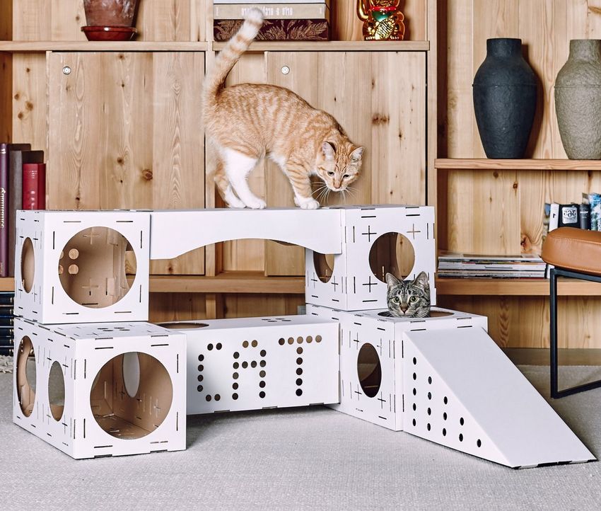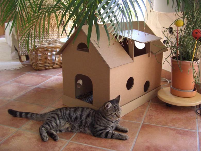 - Le carton étant un matériau bon marché, son remplacement ne fera pas mal au portefeuille des propriétaires. La création peut être modifiée au fur et à mesure que l'animal grandit.