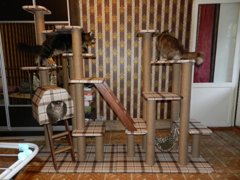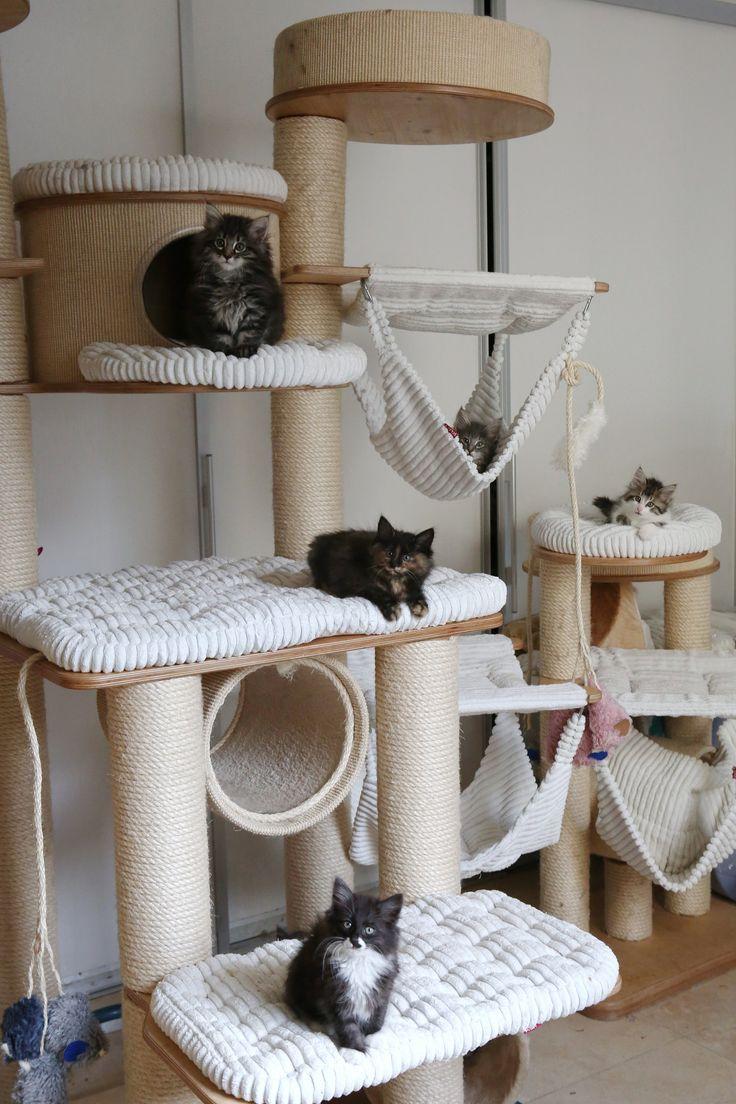 - Les chats agiles et les jeunes chatons apprécieront les grandes structures avec des labyrinthes, des murs d'escalade, des échelles, des zones ouvertes avec une vue sur les environs.