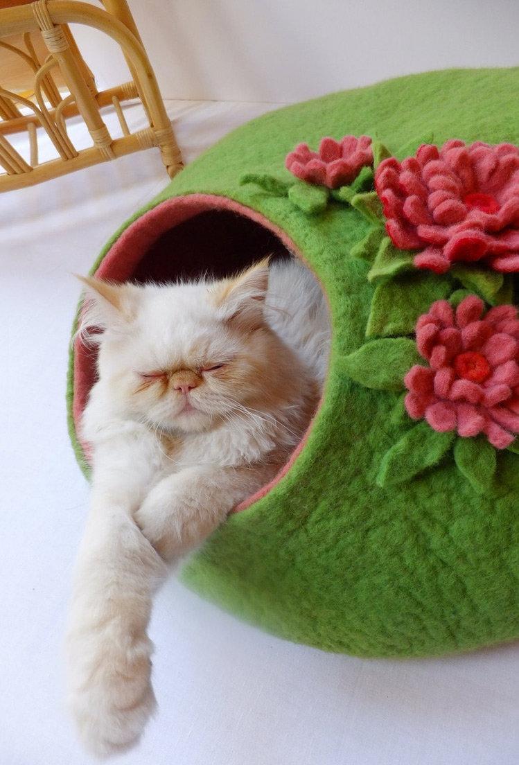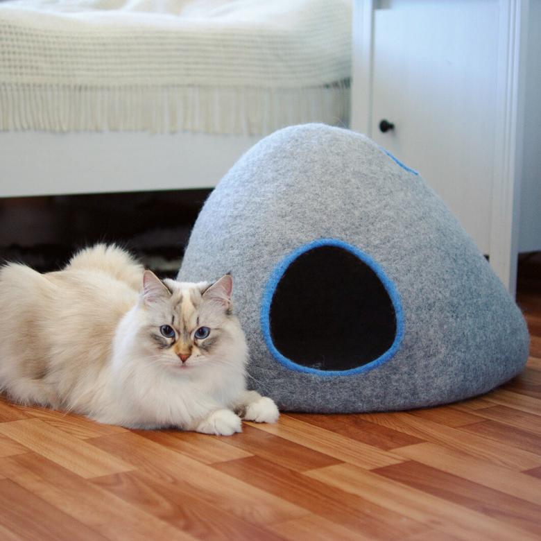 - Assez grand pour que votre chat puisse se tourner et se lover à l'intérieur. Mais l'espace intérieur ne doit pas être trop grand. Pour les chats de taille moyenne, la longueur des côtés doit être d'environ 40 centimètres et l'entrée de 20 centimètres de diamètre. Cela variera légèrement pour les grands et les petits animaux.