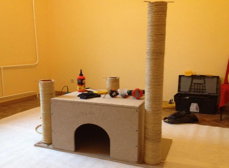 Lorsque vous travaillez avec du contreplaqué, vous devez accorder une attention particulière à la sécurité du chat. L'intérieur et l'extérieur de la maison doivent être exempts de clous saillants et d'échardes tranchantes qui pourraient blesser le chat.