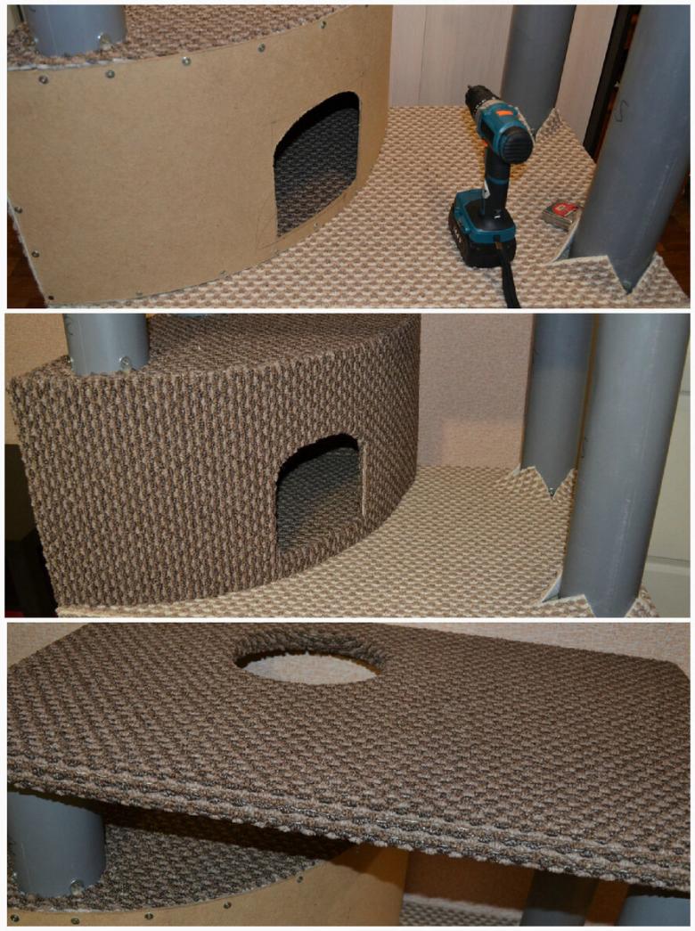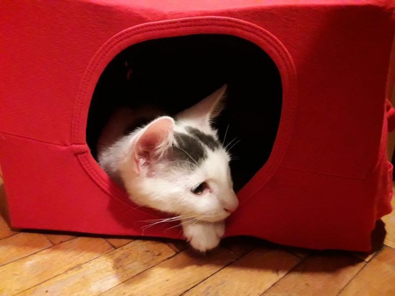 La technologie est très simple : vous découpez un trou dans la boîte pour que le chat puisse facilement y entrer ou sauter, la boîte est recouverte de ruban adhésif pour plus de solidité, et un petit matelas est placé à l'intérieur. Parfois, l'intérieur de la maison est tapissé de caoutchouc mousse, et la surface souple est recouverte d'un tissu pour empêcher le chat de déchirer la surface souple.