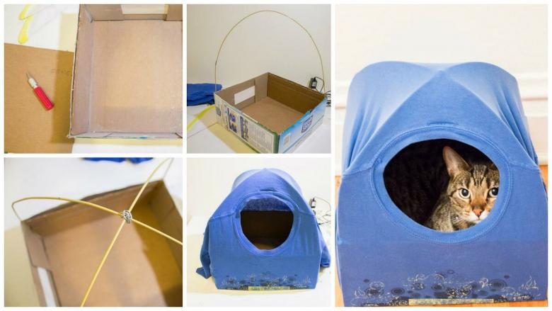 La façon la plus simple de fabriquer une maison confortable pour les chats est d'utiliser les matériaux disponibles :