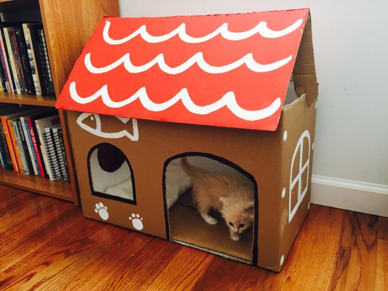 Le plus facile pour les débutants est de fabriquer de leurs propres mains une maison pour un chat à partir d'une boîte.