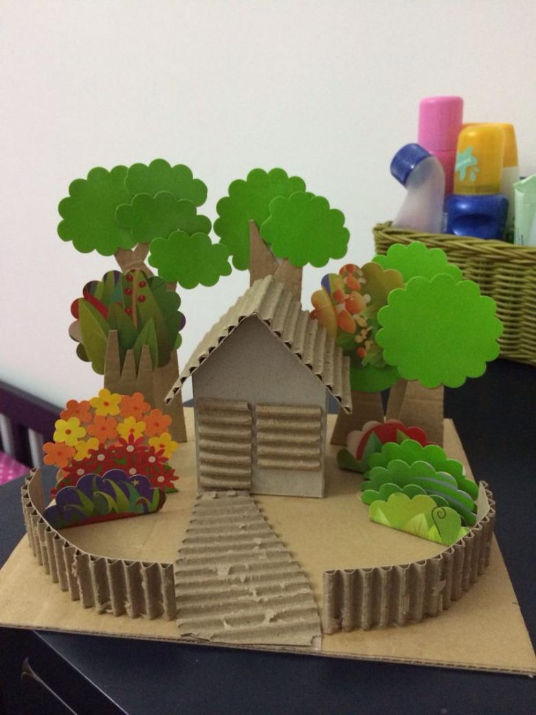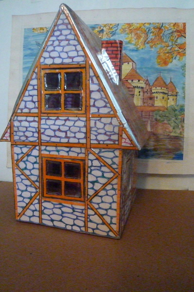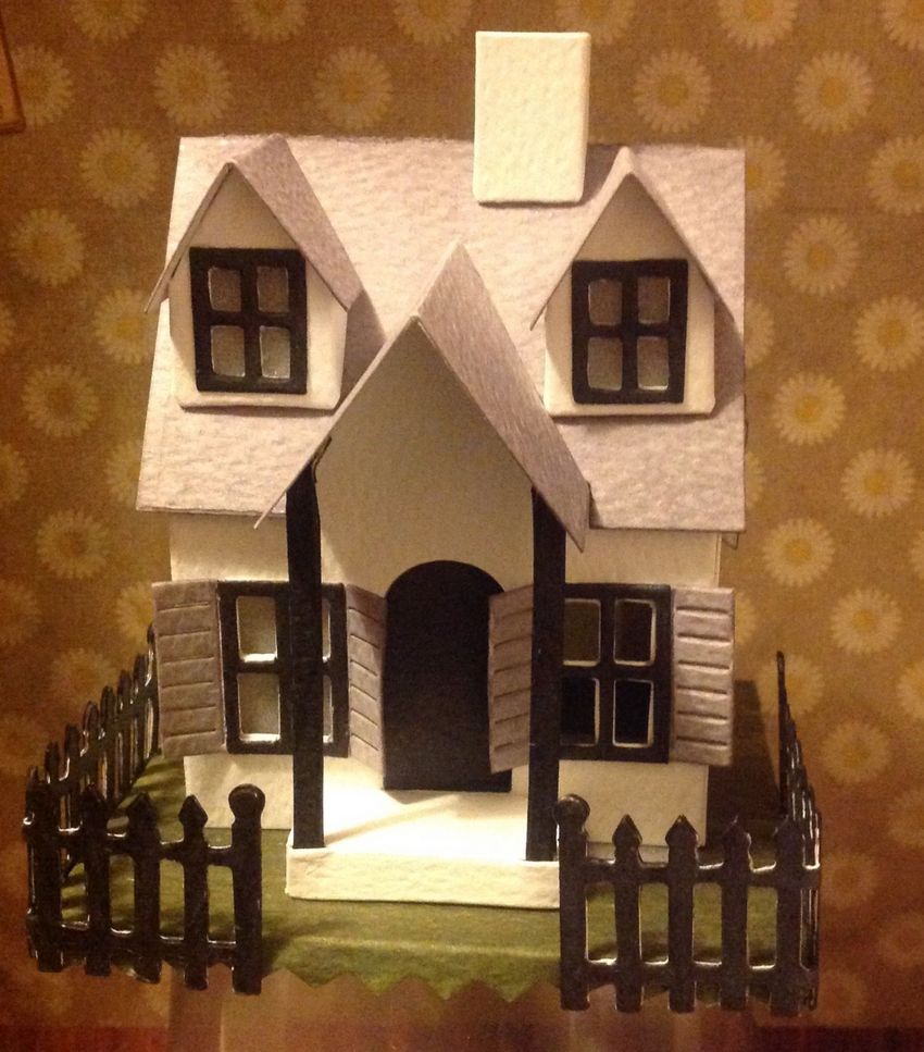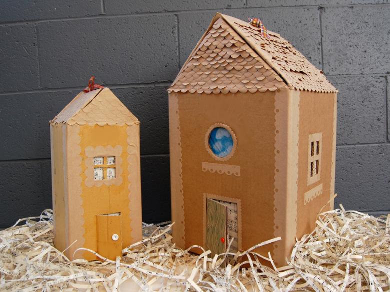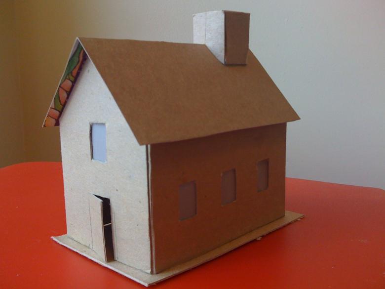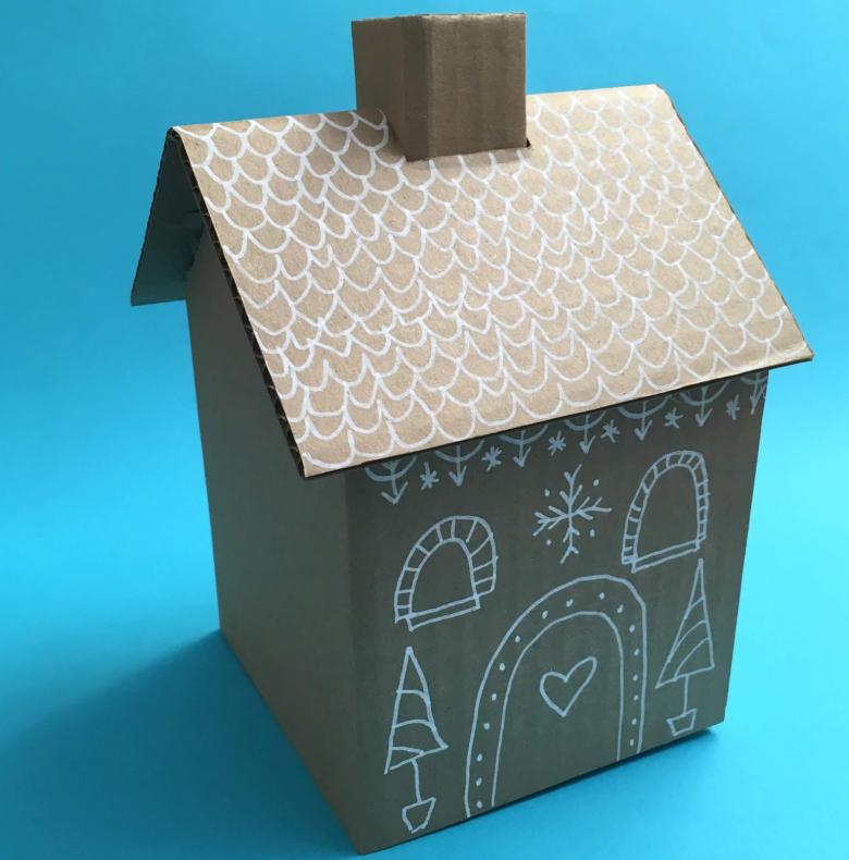 - Dessinez un modèle de votre maison sur un morceau de carton. Découpez les détails.