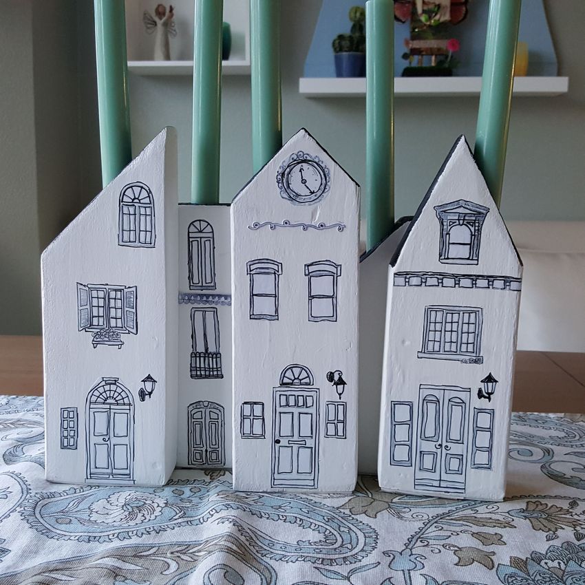 - Décorez la façade avec des crayons de couleur, en dessinant une porte et une fenêtre.