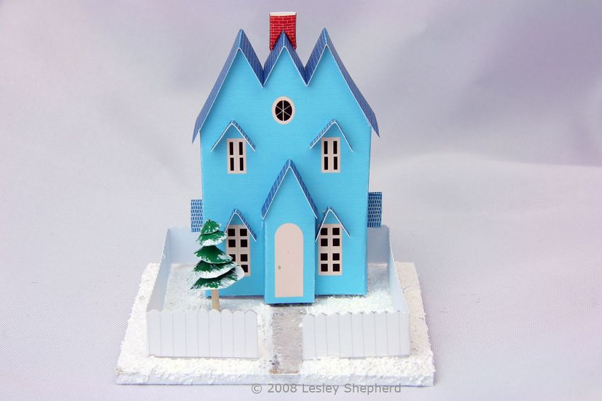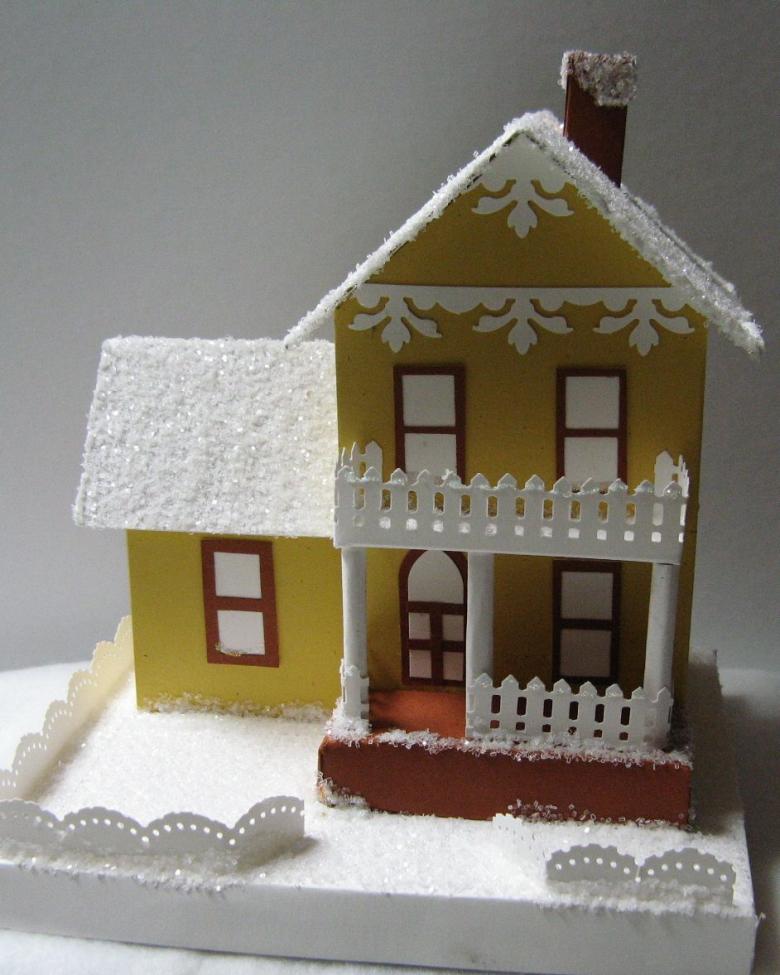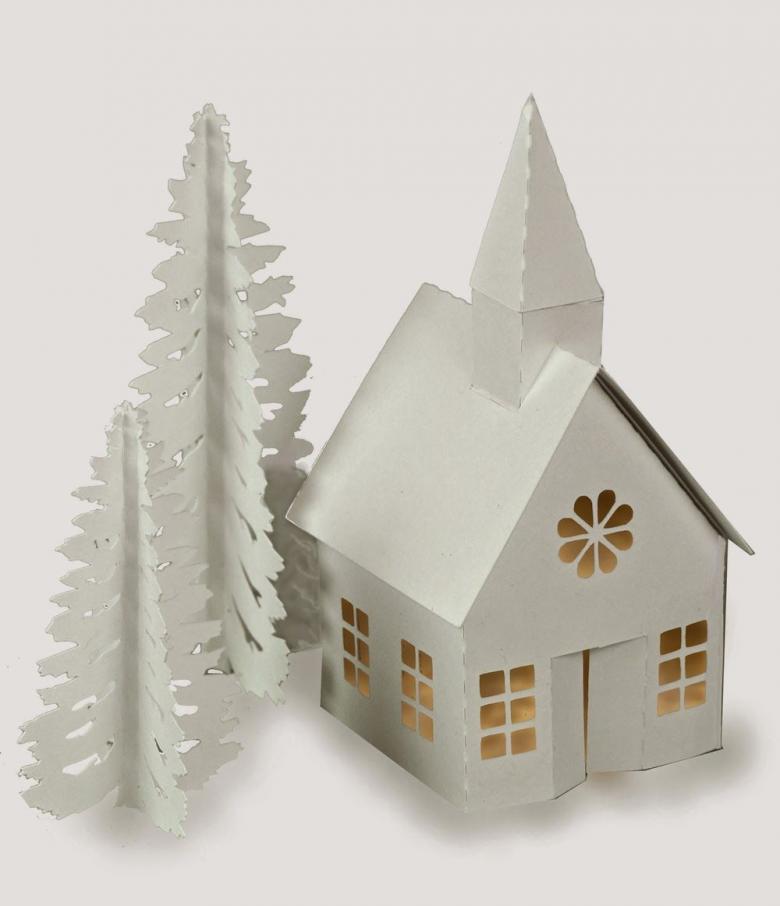 - Plie le carton en deux, découpe les côtés et les lignes de pliage, plie les bords et colle les "pignons".