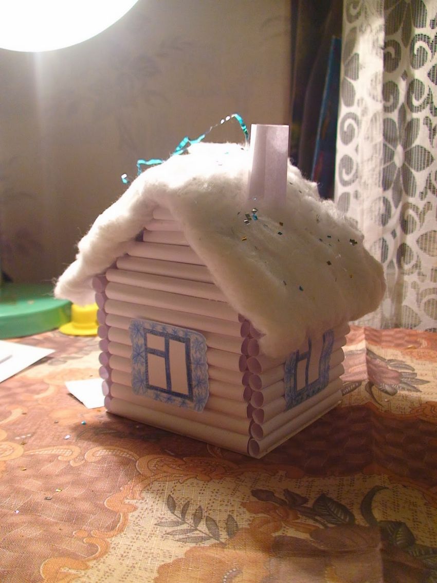 - Assembler la structure du toit à la maison. Le jeu avec l'artisanat ne peut se faire qu'après le séchage de la colle.
