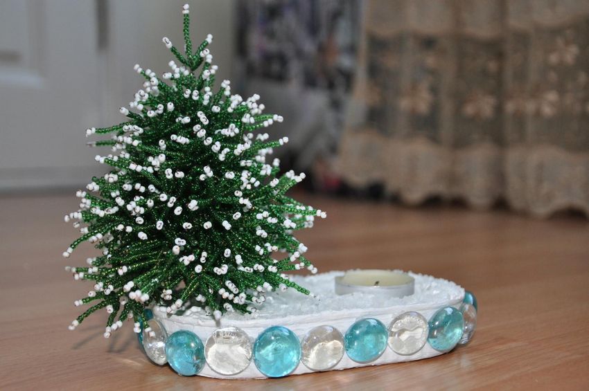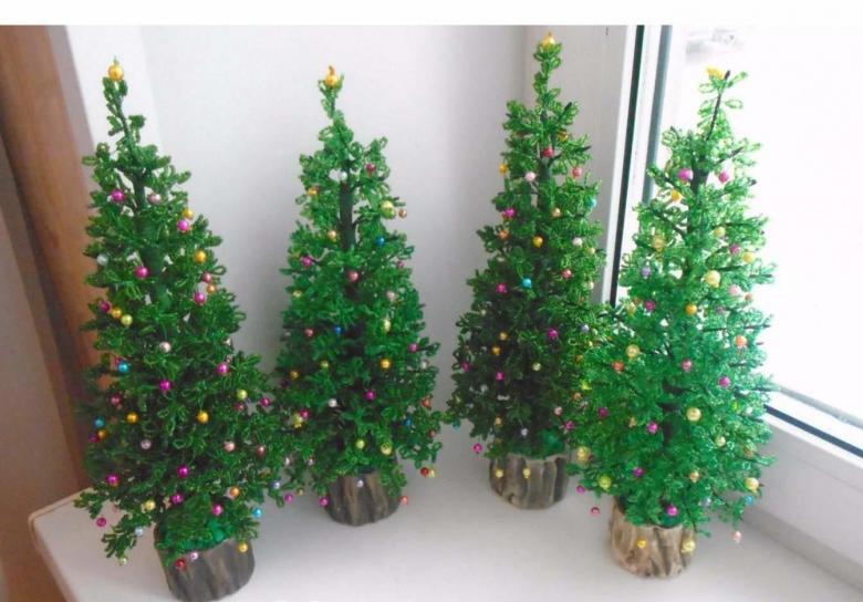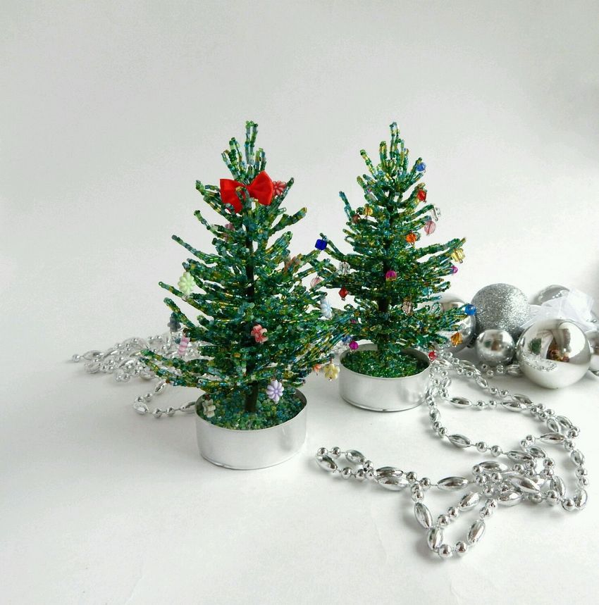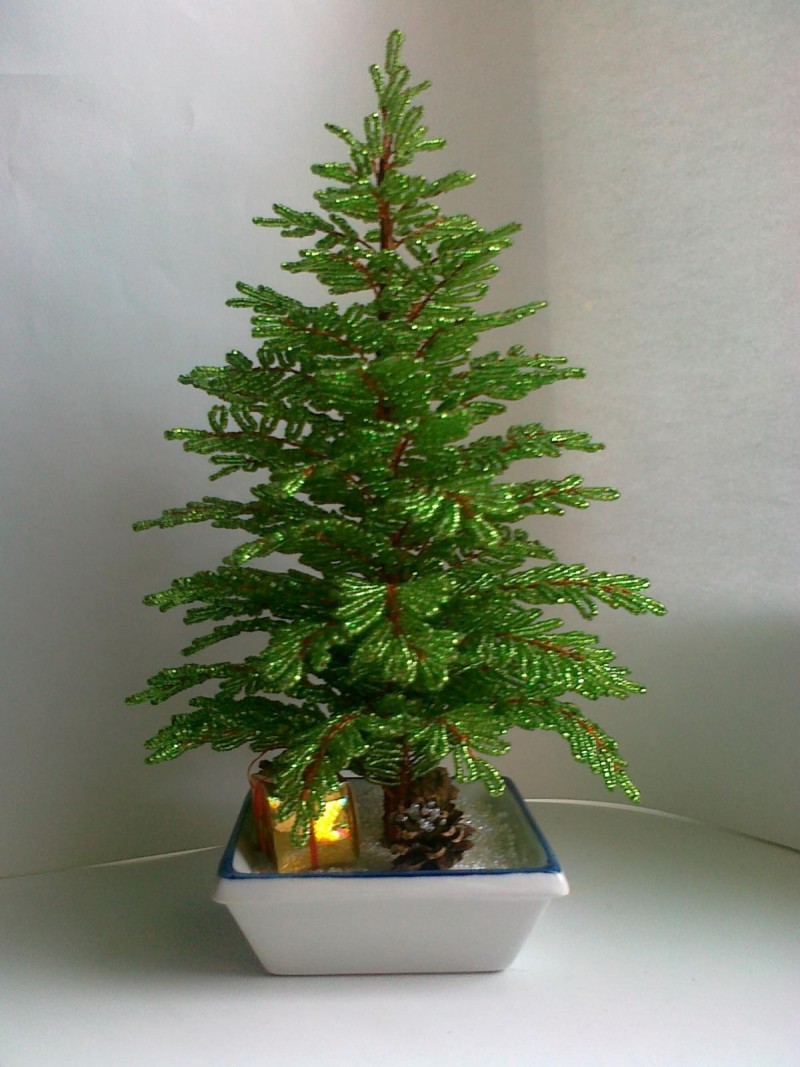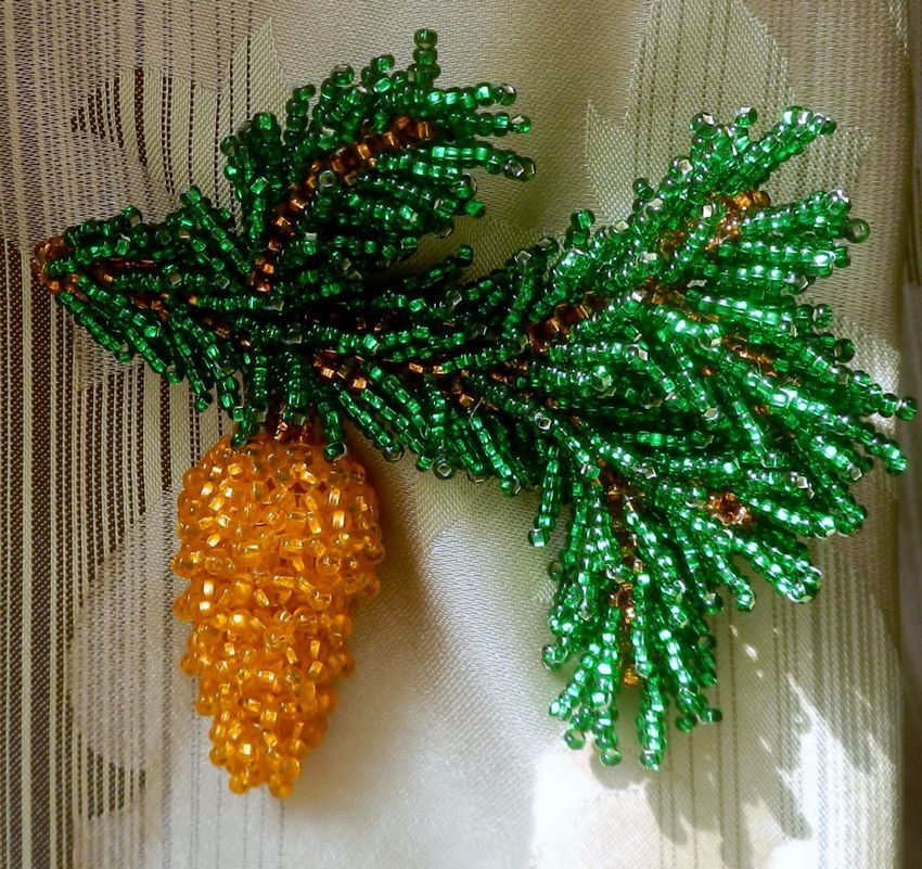 - Les perles peuvent également être utilisées pour fabriquer des cônes pour le sapin de Noël, comme sur la photo.