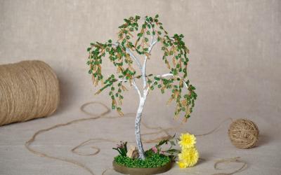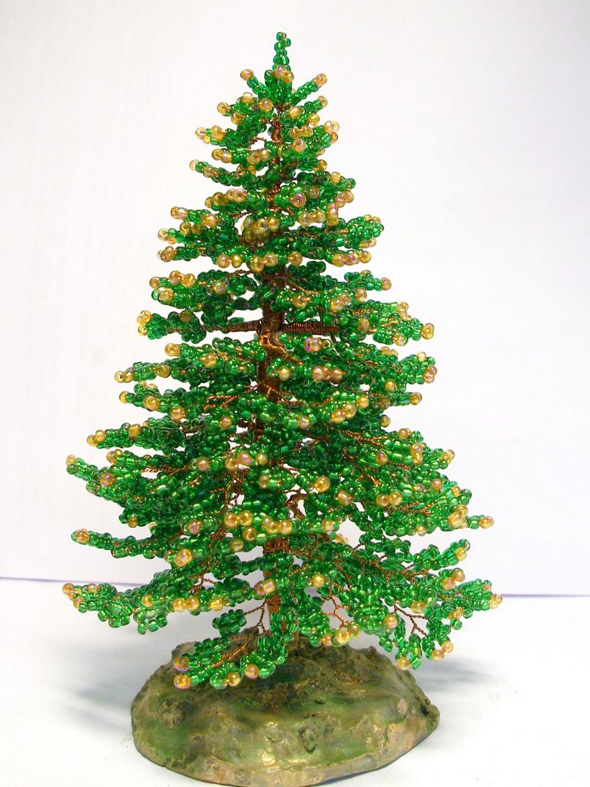 - Les branches des rangées suivantes sont fixées de la même manière, et la distance entre les étages de branches est d'environ 15 mm. Les "queues" des fils qui constituent les branches forment le tronc de votre arbre.