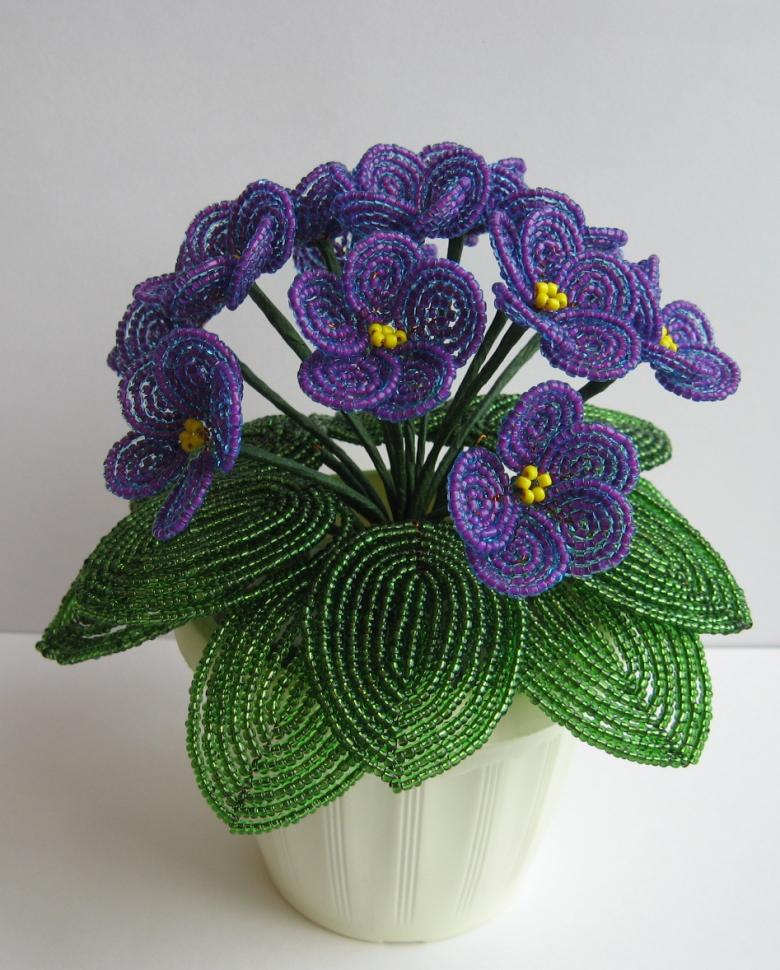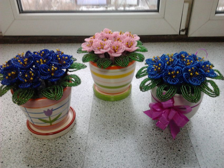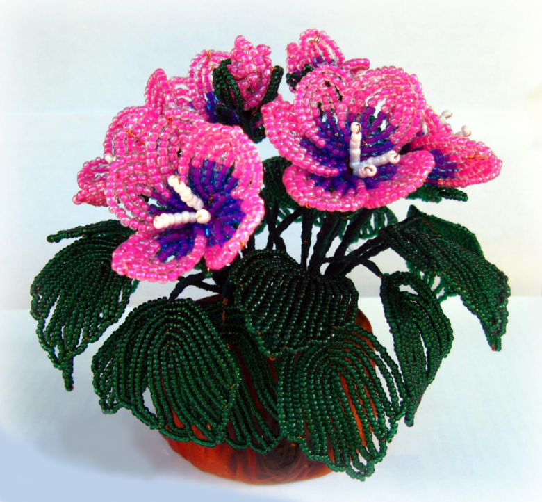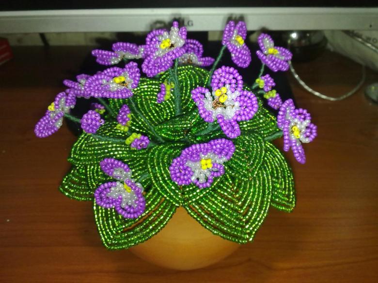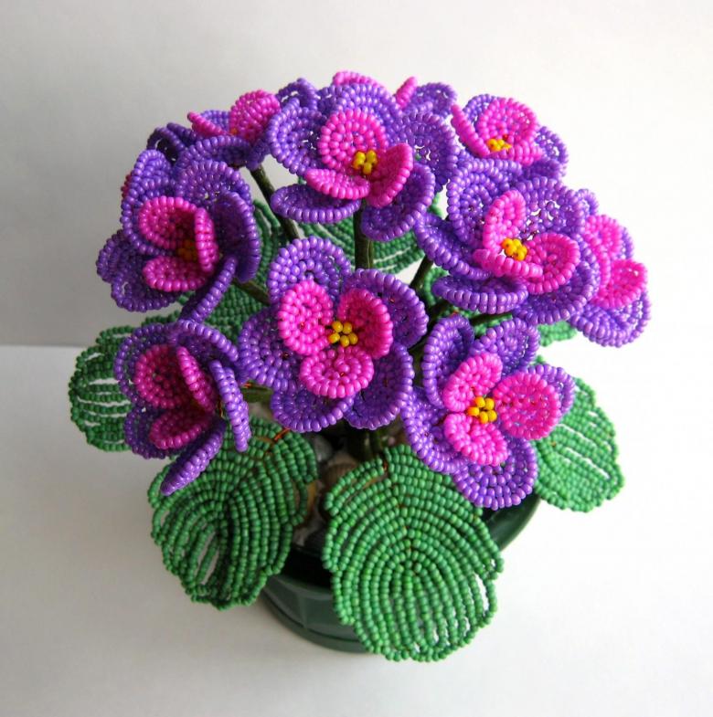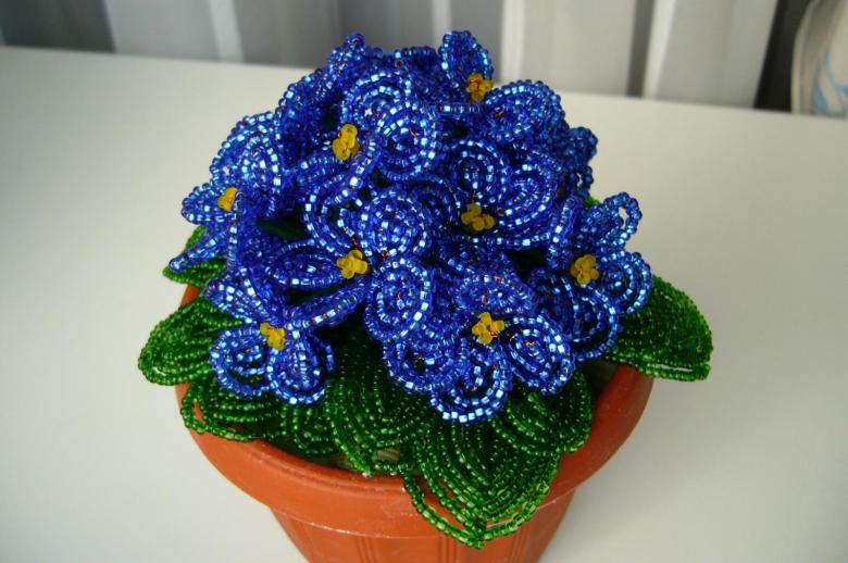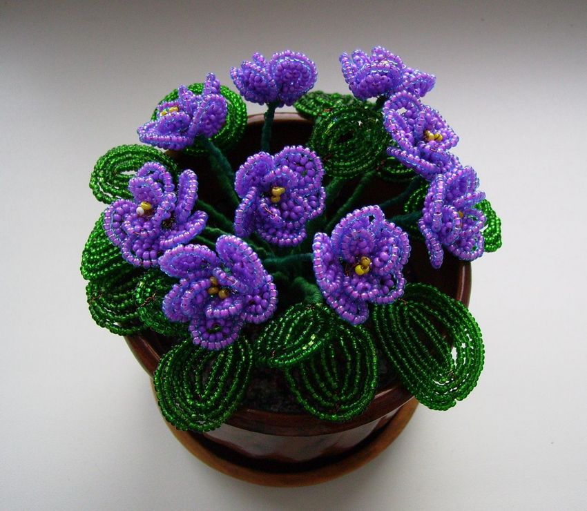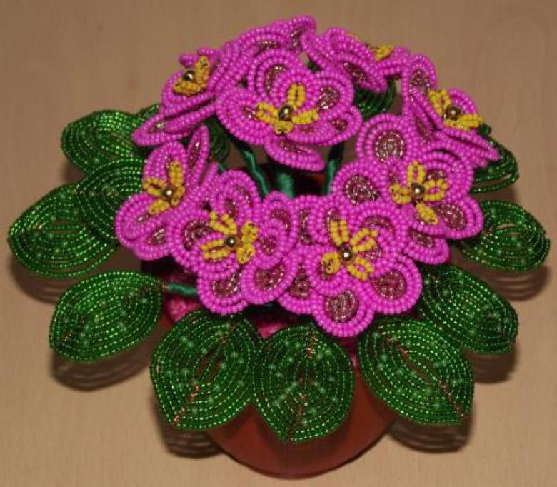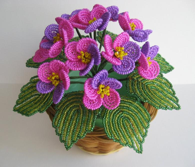 C'est l'une des plantes d'intérieur les plus appréciées. Il n'est pas surprenant que de nombreuses personnes ne voient pas d'inconvénient à avoir une belle plante dans leur appartement tout au long de l'année. La délicate fleur violette peut être façonnée à partir de perles. Ce n'est pas un problème pour le tisserand et c'est facile à faire, même pour les débutants.